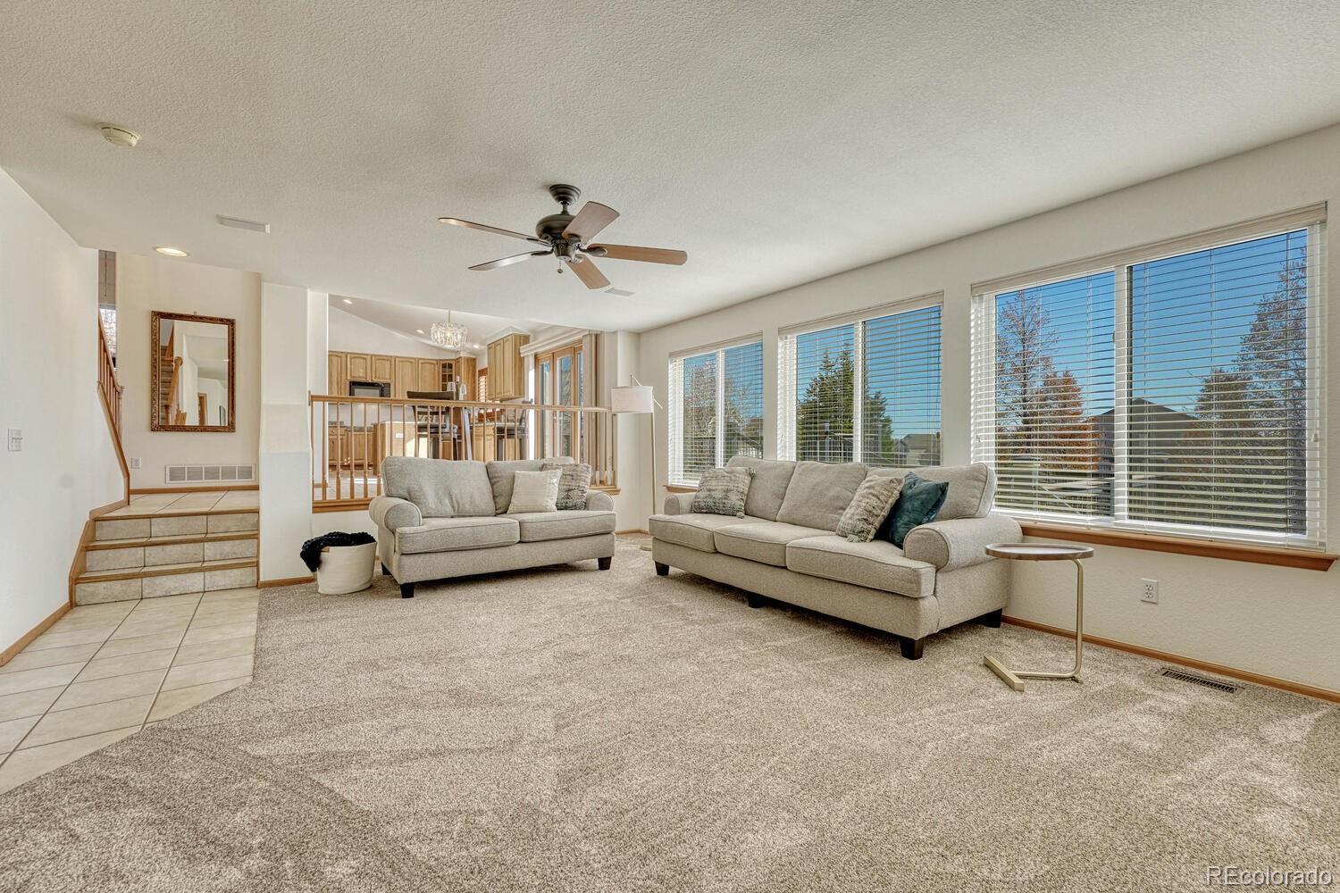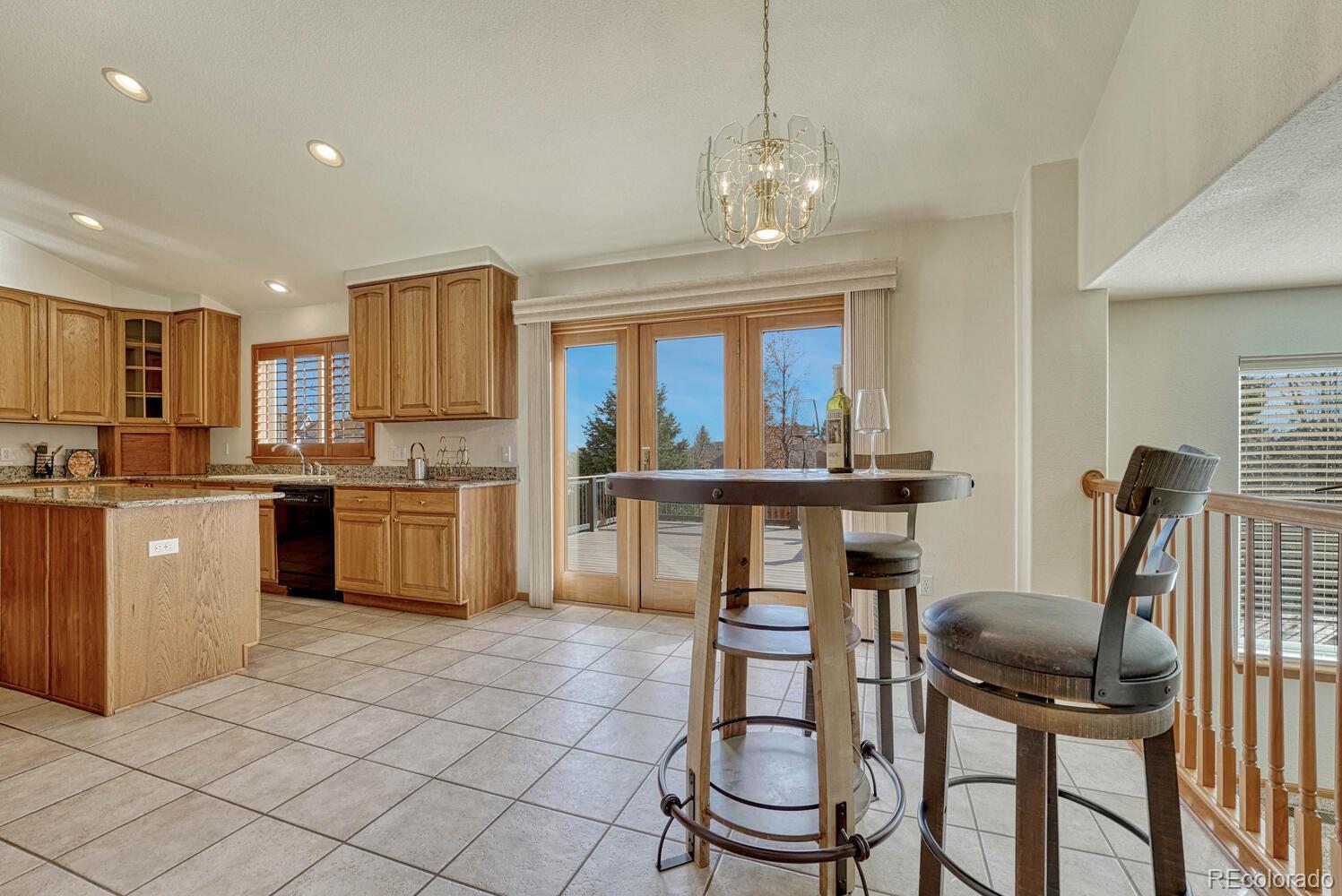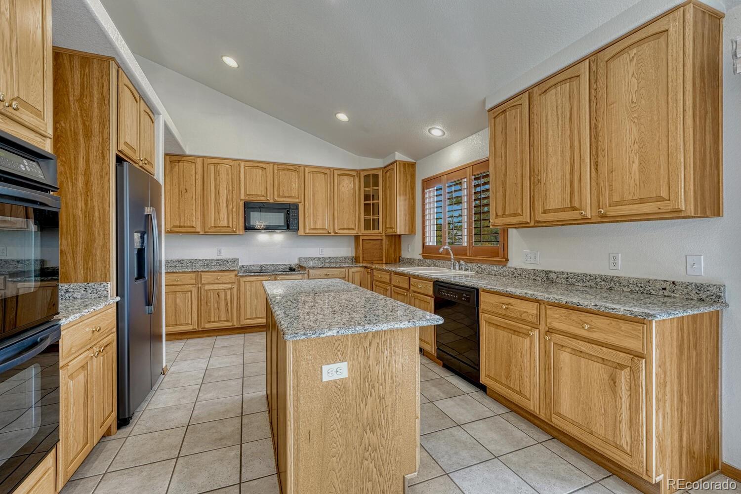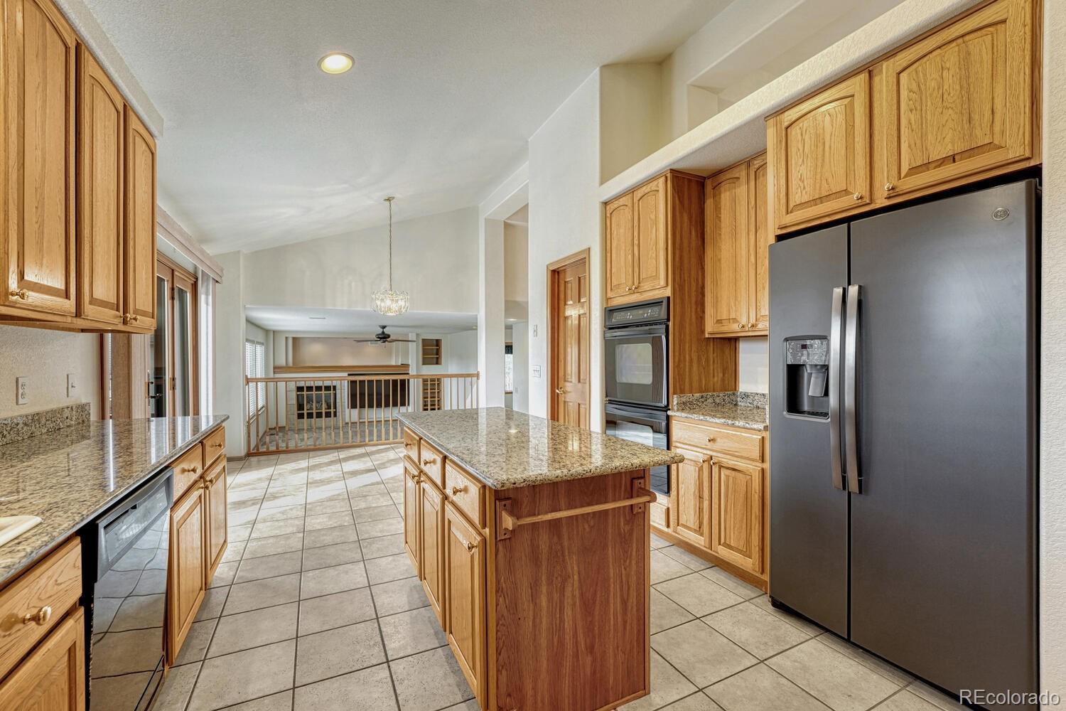 Impeccably maintained and beautifully appointed, this stunning 6-bedroom, 4-bath home offers over 4,100 square feet of elegant living space in a peaceful cul-de-sac location. Adjacent to acres of open space with scenic hiking trails, a creek, and a tranquil pond, as well as tons of restaurants and entertainment, this property perfectly balances nature and convenience. Step inside to soaring vaulted ceilings and an abundance of natural light pouring through upgraded high-end windows installed just four years ago. The open layout flows seamlessly from the formal living and dining areas into a spacious kitchen featuring granite countertops, double ovens, and extensive cabinetry—perfect for entertaining. The kitchen walks out to a sprawling custom deck overlooking pristine landscaping, mature trees, and expansive mountain views. The family room offers warmth and comfort with a cozy fireplace and tons of windows for natural light. Upstairs, the primary suite is a true retreat with breathtaking mountain views, a huge walk-in closet, and a fully remodeled spa-like bathroom showcasing granite counters, dual sinks, a soaking tub, and an oversized glass shower. Downstairs, the fully finished basement is an entertainer’s dream, complete with a 20-foot custom wet bar designed in the style of an English pub—ideal for hosting gatherings or relaxing with friends. Additional highlights include high-end plantation blinds, ample storage in the 5' tall sealed crawlspace, a huge 3-car garage, and a lush backyard oasis that’s both inviting and low-maintenance. From top to bottom, every detail of this home reflects quality, care, and pride of ownership. Enjoy Colorado living at its finest—peaceful views, convenient to shopping and fun, outdoor adventure just steps away, and an exceptional home ready for its next chapter.