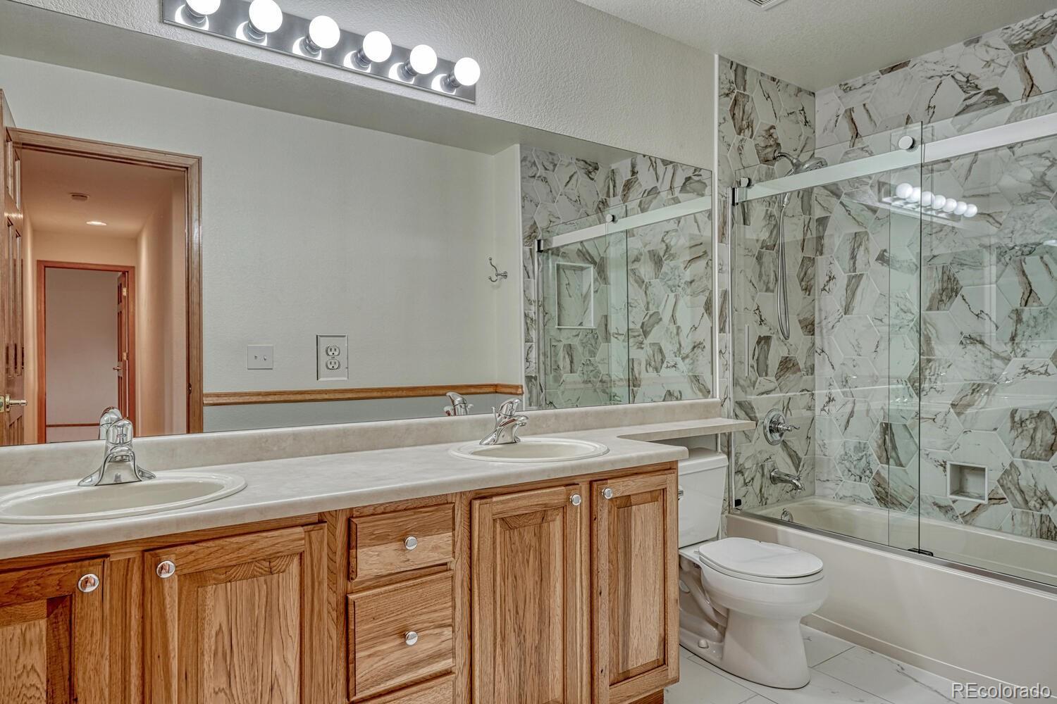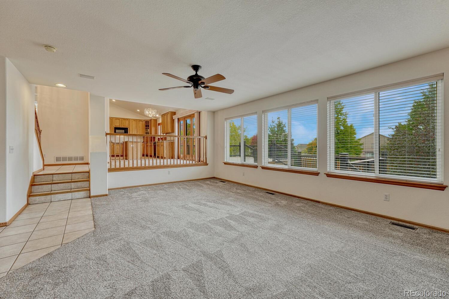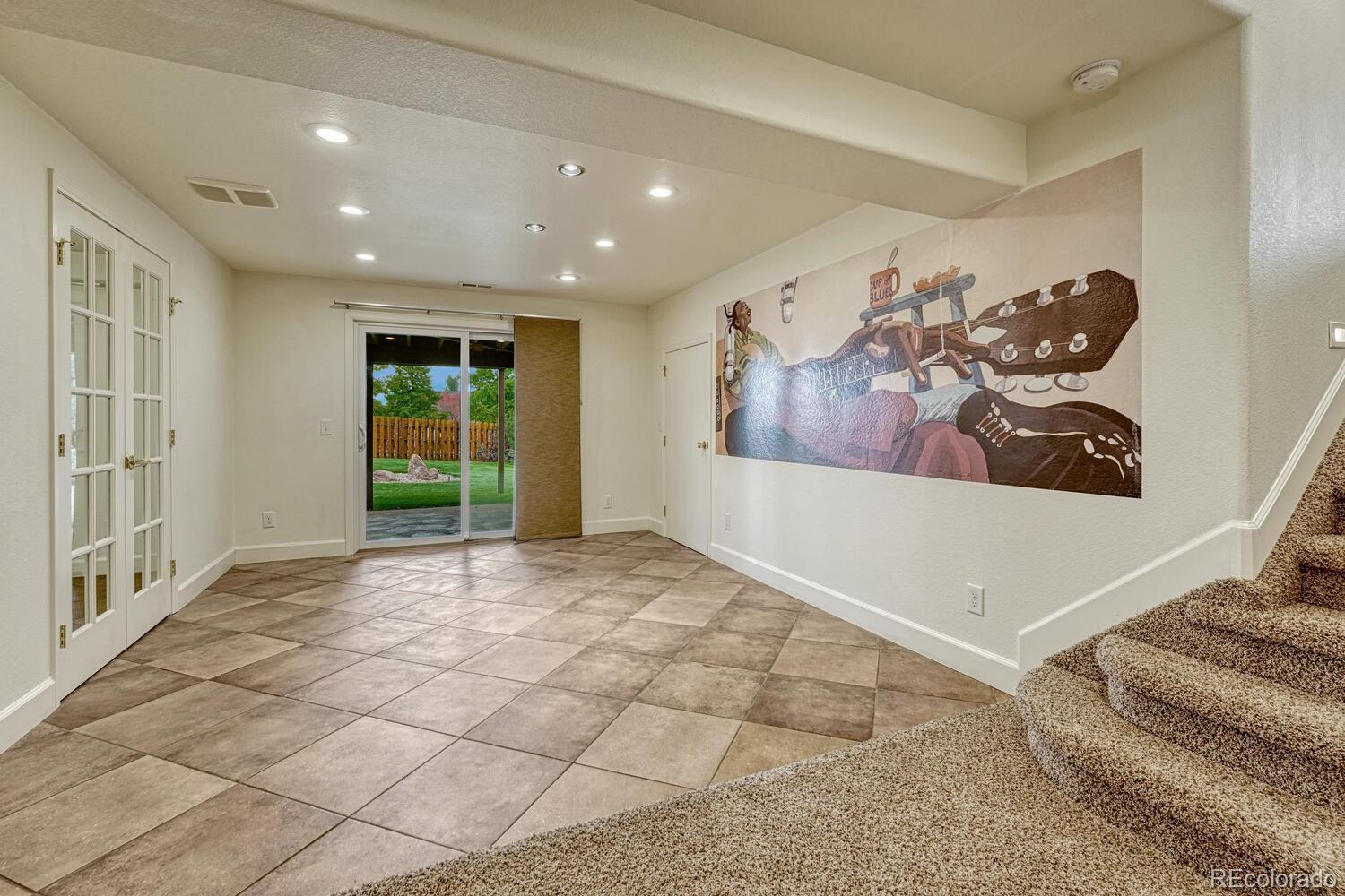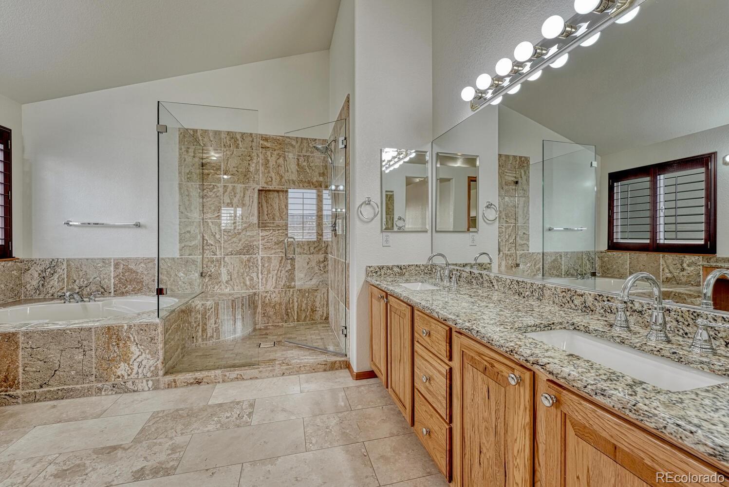 Impeccably maintained and beautifully appointed, this stunning 6-bedroom, 4-bath home offers over 4,100 square feet of elegant living space in a peaceful cul-de-sac location. Adjacent to acres of open space with scenic hiking trails, a creek, and a tranquil pond, as well as tons of restaurants and entertainment, this property perfectly balances nature and convenience. Step inside to soaring vaulted ceilings and an abundance of natural light pouring through upgraded high-end windows installed just four years ago. The open layout flows seamlessly from the formal living and dining areas into a spacious kitchen featuring granite countertops, double ovens, and extensive cabinetry—perfect for entertaining. The kitchen walks out to a sprawling custom deck overlooking pristine landscaping, mature trees, and expansive mountain views. The family room offers warmth and comfort with a cozy fireplace and tons of windows for natural light. Upstairs, the primary suite is a true retreat with breathtaking mountain views, a huge walk-in closet, and a fully remodeled spa-like bathroom showcasing granite counters, dual sinks, a soaking tub, and an oversized glass shower. Downstairs, the fully finished basement is an entertainer’s dream, complete with a 20-foot custom wet bar designed in the style of an English pub—ideal for hosting gatherings or relaxing with friends. Additional highlights include high-end plantation blinds, ample storage in the 5' tall sealed crawlspace, a huge 3-car garage, and a lush backyard oasis that’s both inviting and low-maintenance. From top to bottom, every detail of this home reflects quality, care, and pride of ownership. Enjoy Colorado living at its finest—peaceful views, convenient to shopping and fun, outdoor adventure just steps away, and an exceptional home ready for its next chapter.