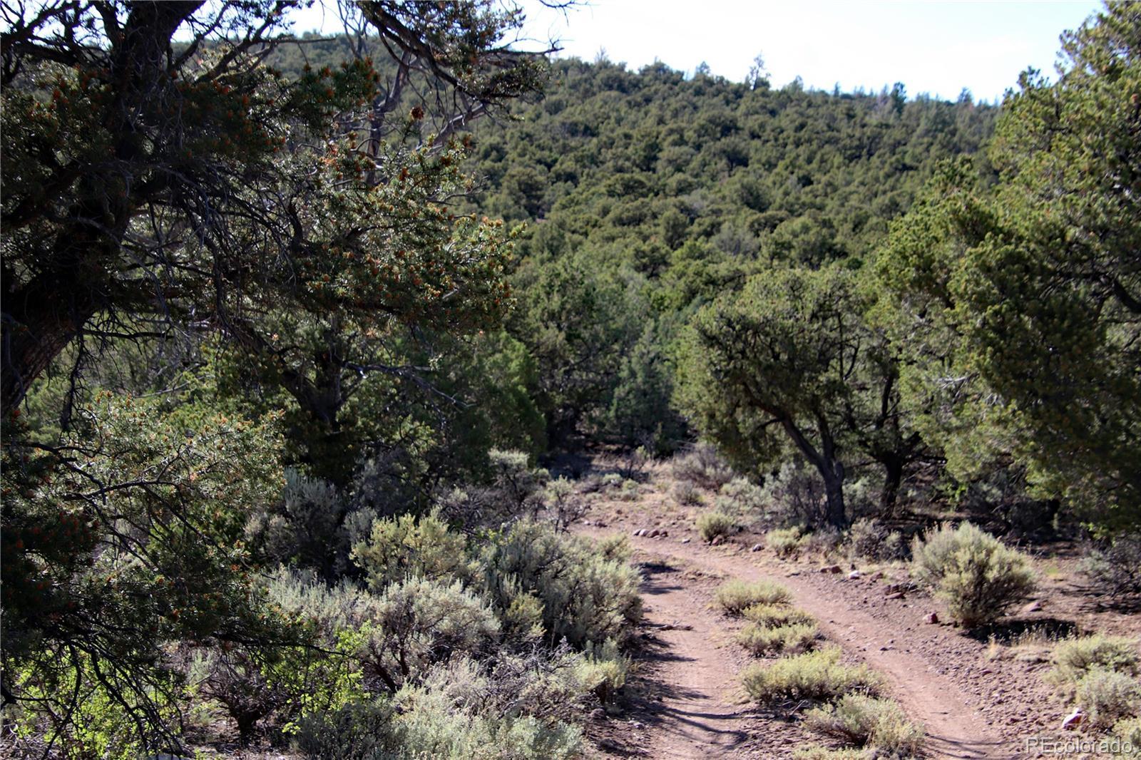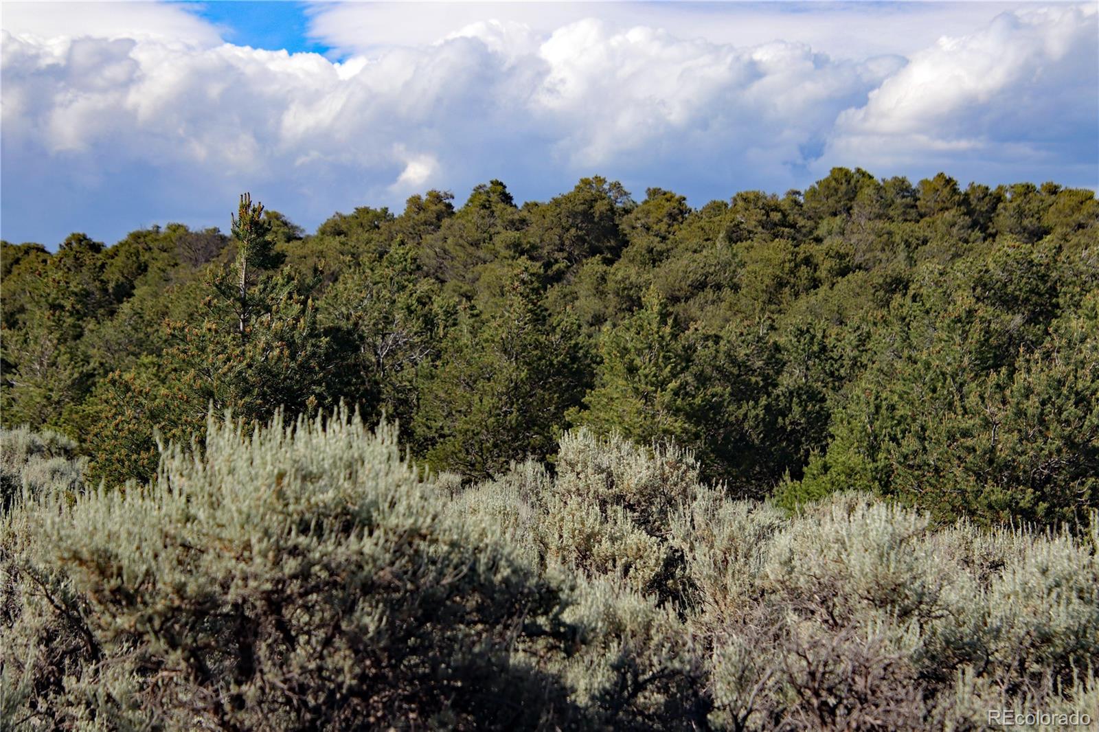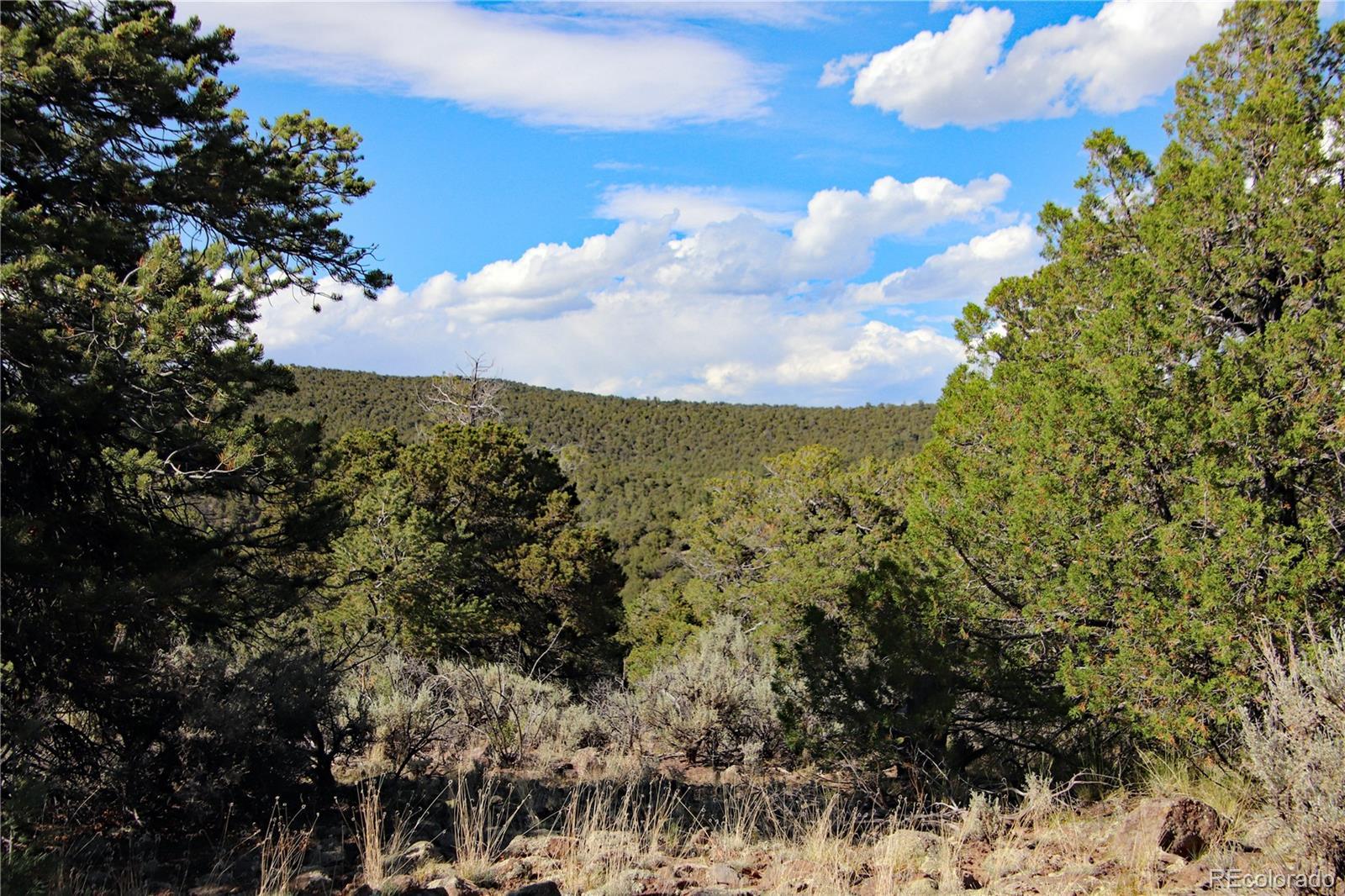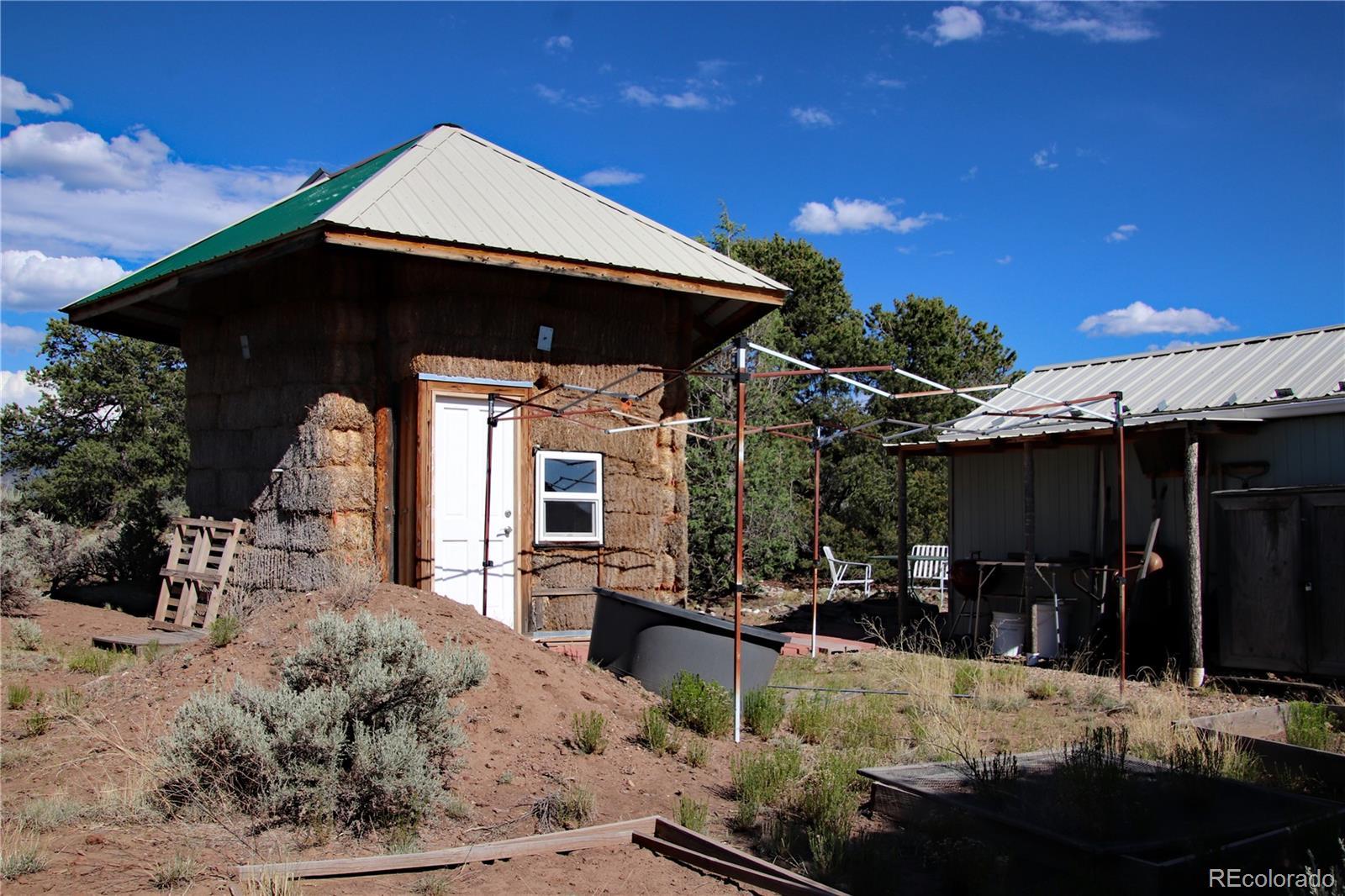 REMOTE, TUCKED AWAY, OFF-THE-GRID and abundant tranquility. This 37 acre property is both a corner lot and on a cul-de-sac! Watch for mule deer on the long meandering driveway. The seller had planned to build from the hilltop, overlooking the Sangre de Cristo mountain range. The area is still pretty much cleared. There are 3 structures on the property. A greenhouse turned into a bunk house, a 1.5 story round strawbale structure at about 8ft wide and a shed. There is an above ground cistern where water can drain from the bunkhouse into the cistern and then is brought into the sink via a bilge pump. The bunkhouse has multiple vents for fresh air and if it should feel too hot, you can just step into the strawbale building and soak up the coolness within. A nice fire circle and several raised garden beds are in place.
