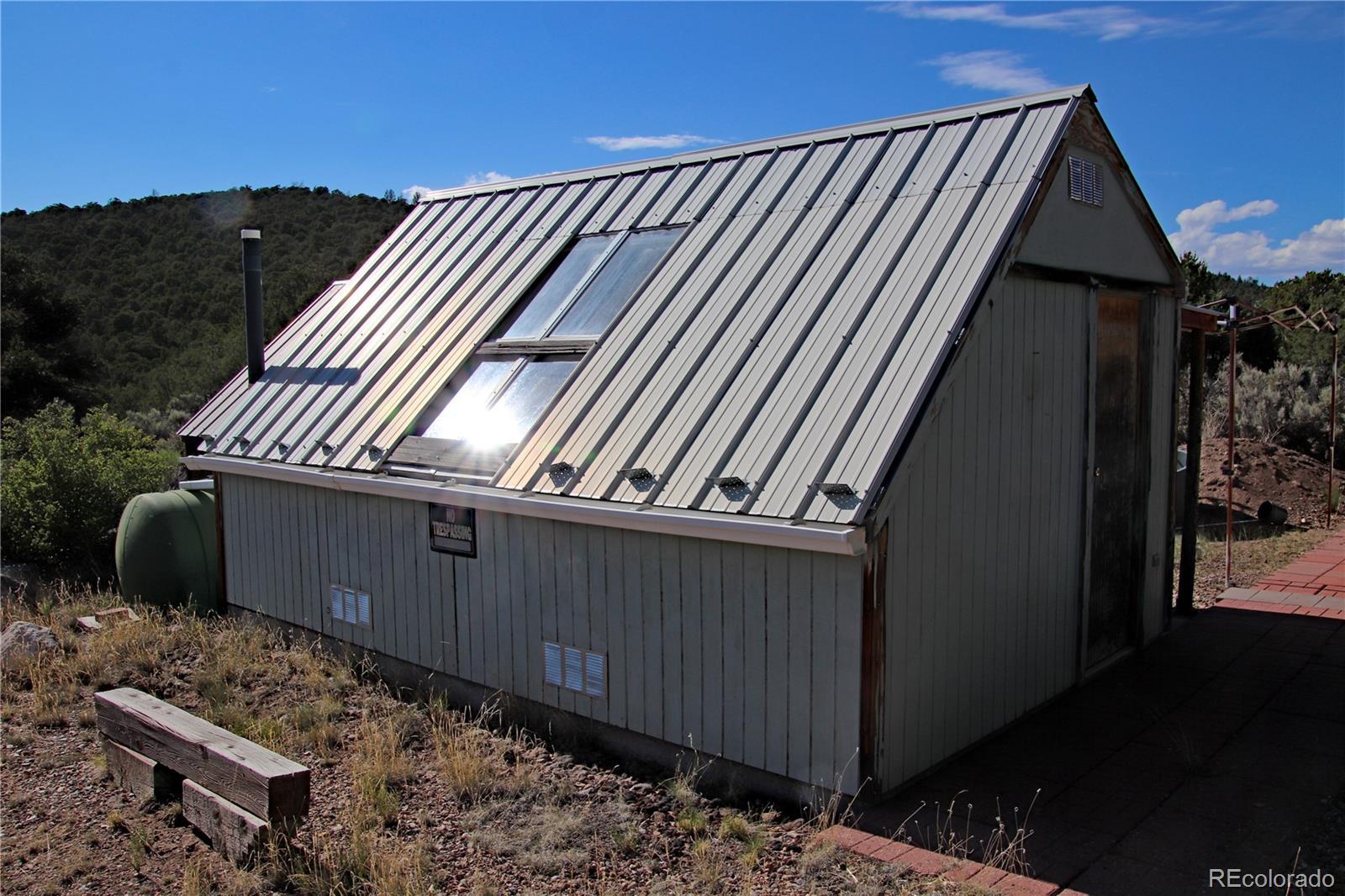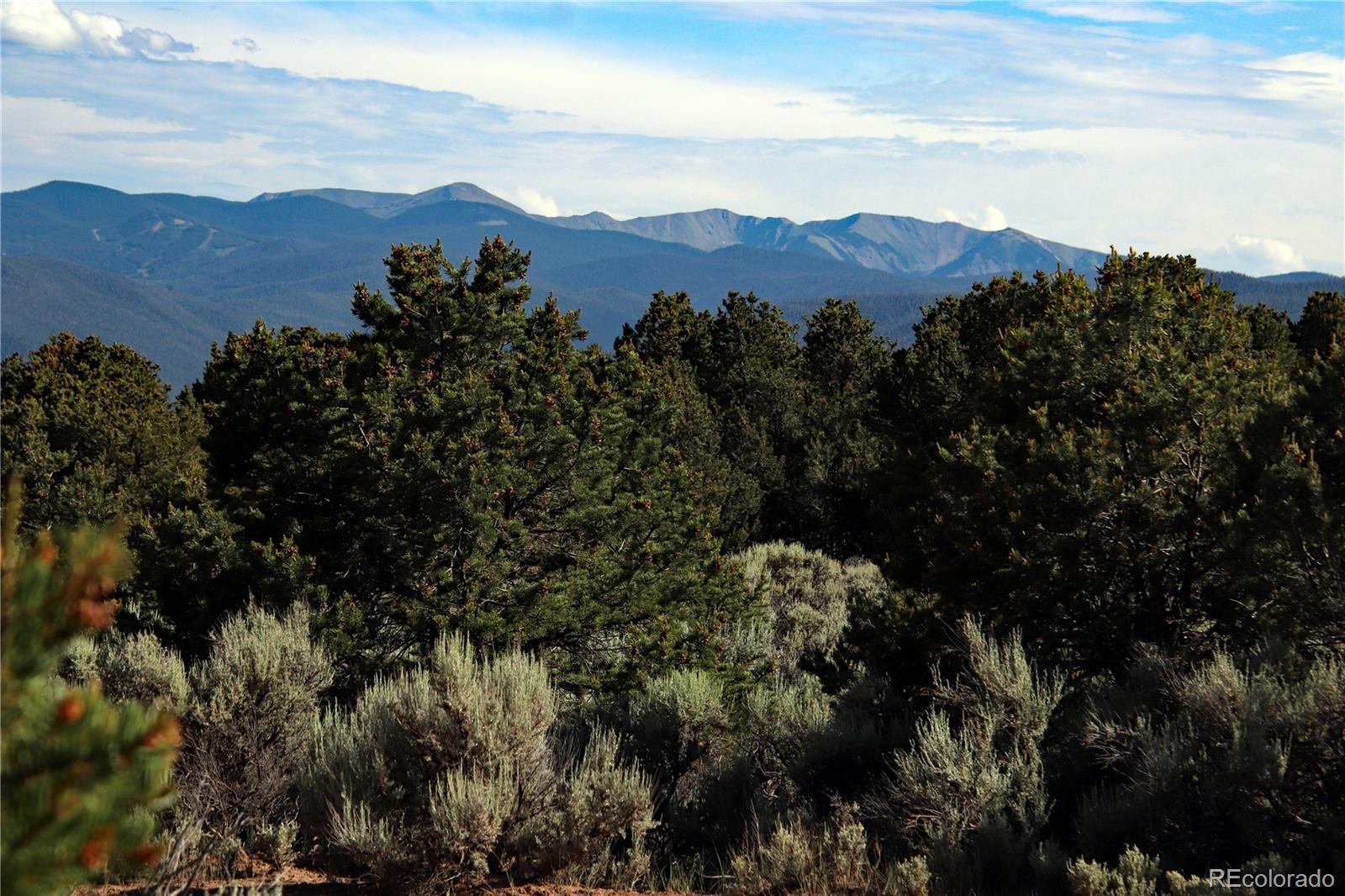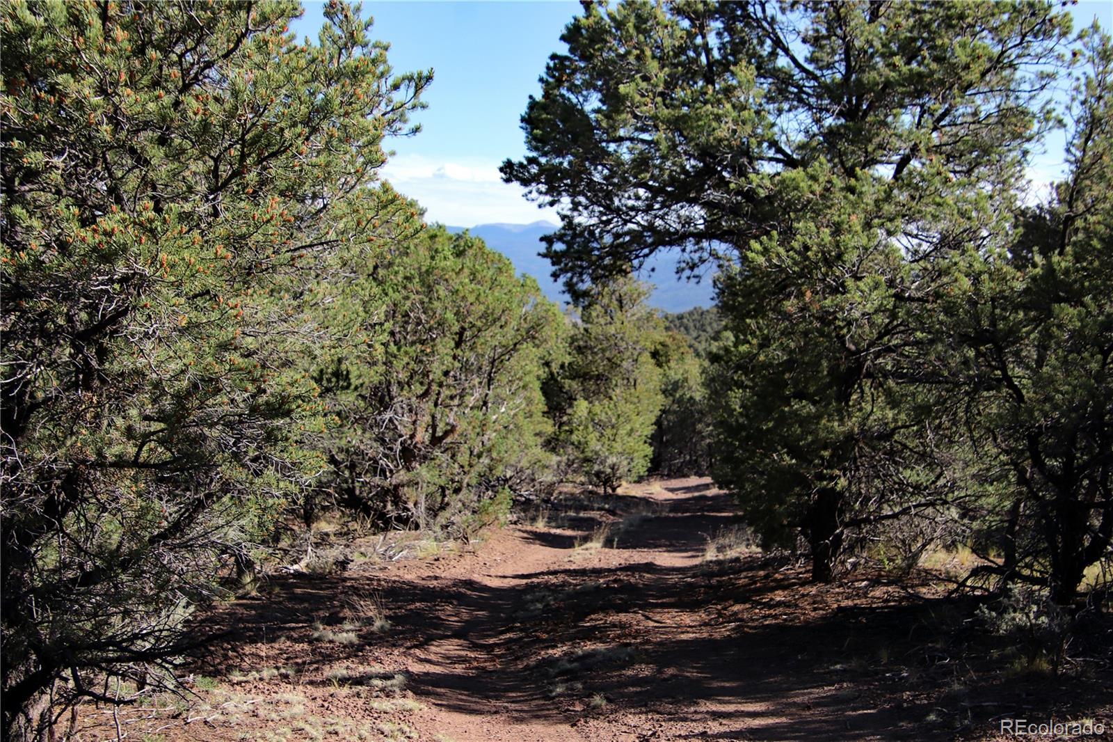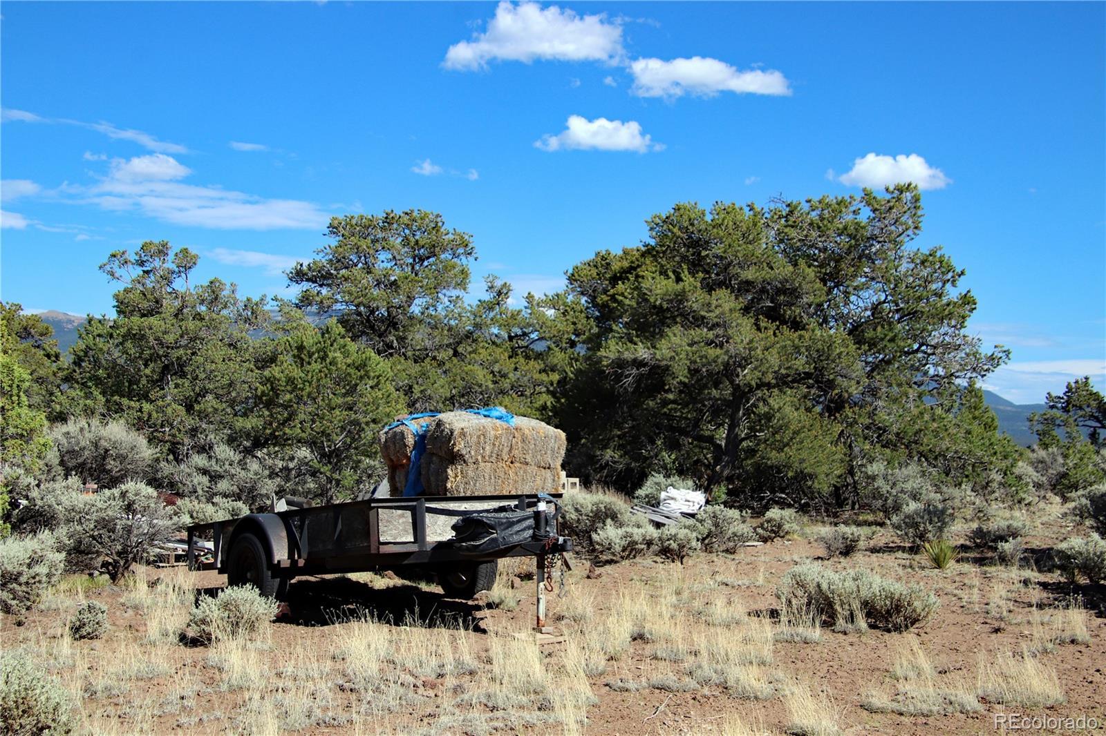 REMOTE, TUCKED AWAY, OFF-THE-GRID and abundant tranquility. This 37 acre property is both a corner lot and on a cul-de-sac! Watch for mule deer on the long meandering driveway. The seller had planned to build from the hilltop, overlooking the Sangre de Cristo mountain range. The area is still pretty much cleared. There are 3 structures on the property. A greenhouse turned into a bunk house, a 1.5 story round strawbale structure at about 8ft wide and a shed. There is an above ground cistern where water can drain from the bunkhouse into the cistern and then is brought into the sink via a bilge pump. The bunkhouse has multiple vents for fresh air and if it should feel too hot, you can just step into the strawbale building and soak up the coolness within. A nice fire circle and several raised garden beds are in place.