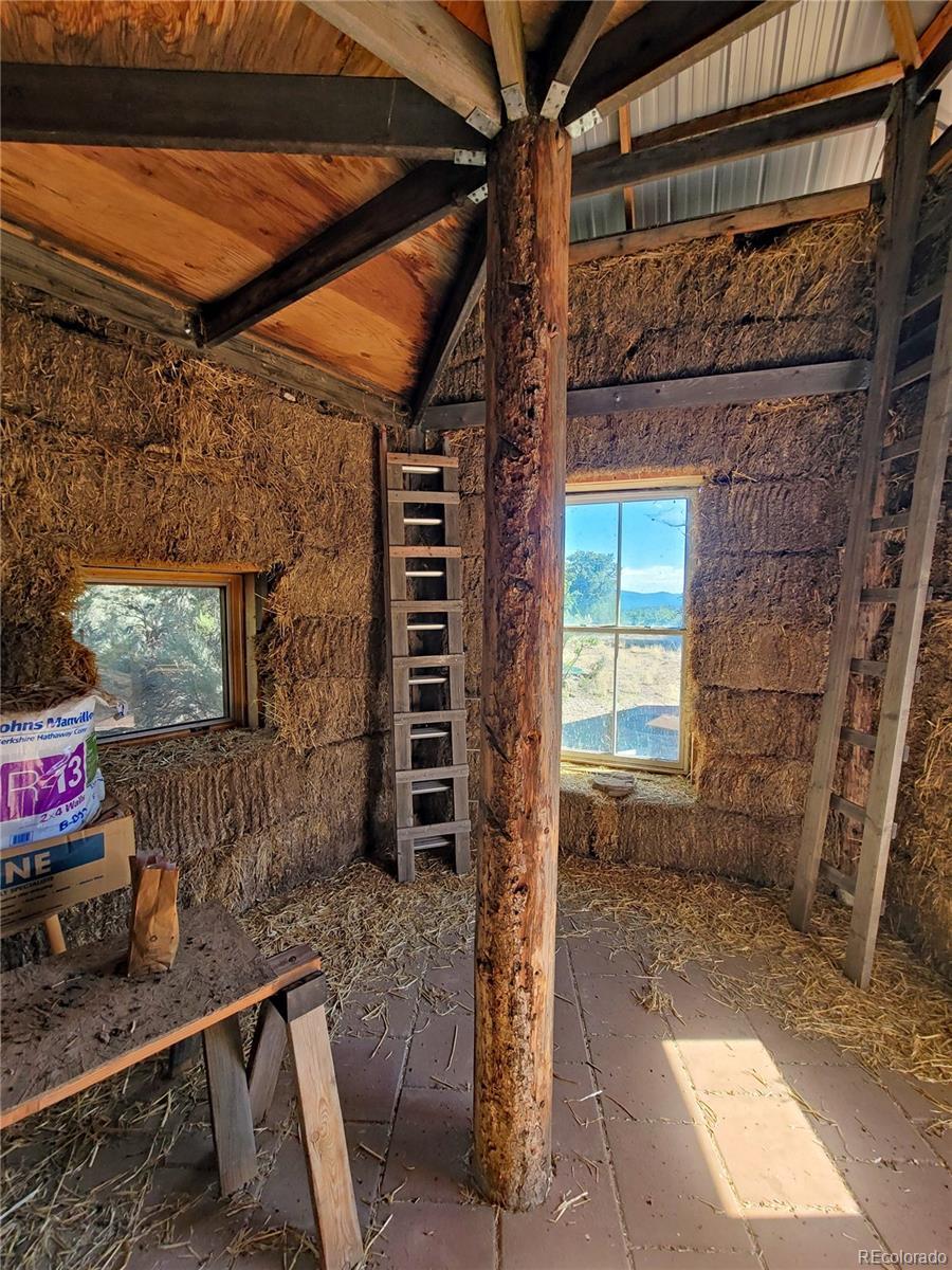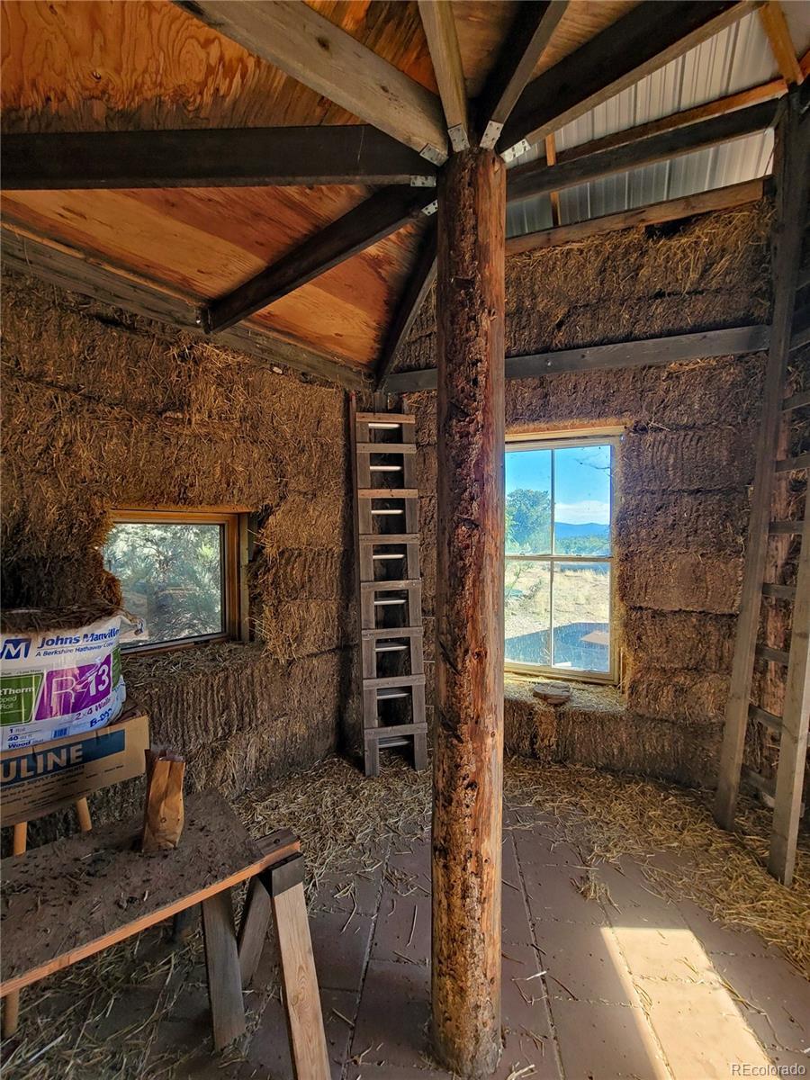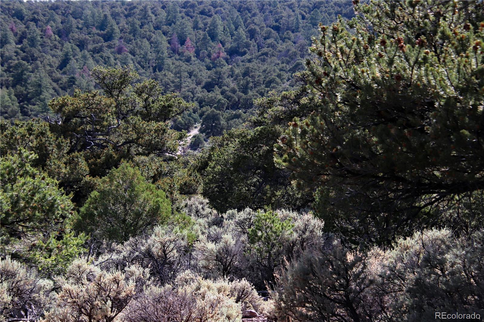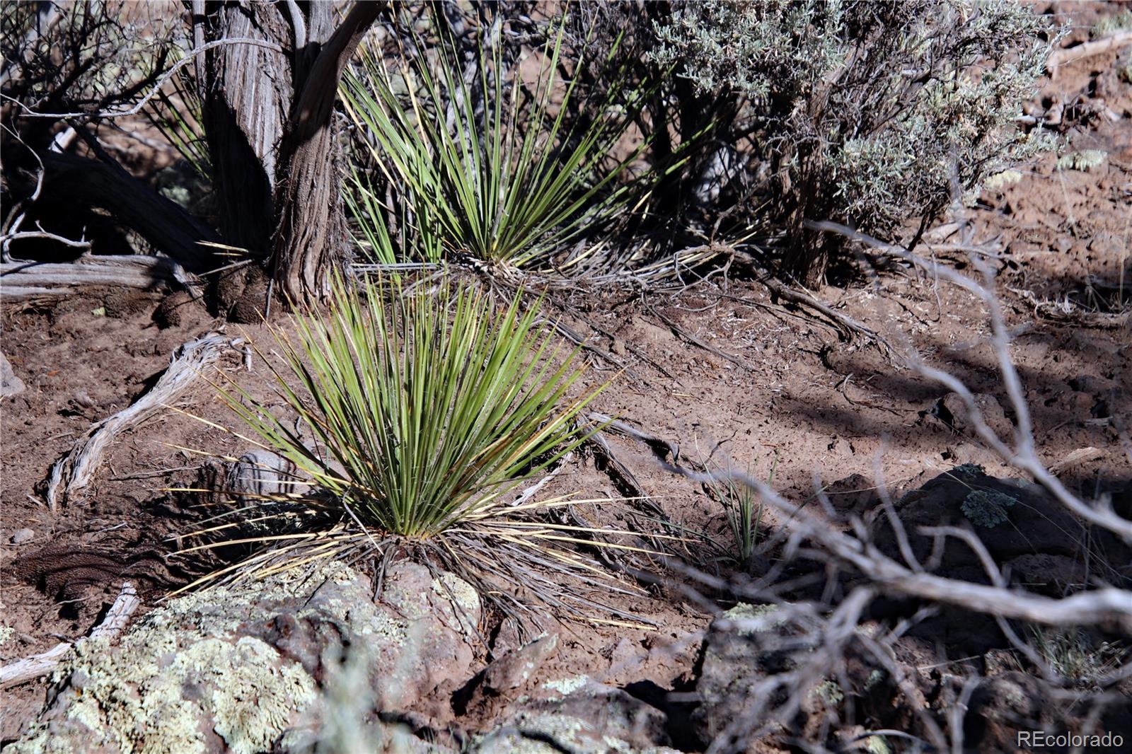 REMOTE, TUCKED AWAY, OFF-THE-GRID and abundant tranquility. This 37 acre property is both a corner lot and on a cul-de-sac! Watch for mule deer on the long meandering driveway. The seller had planned to build from the hilltop, overlooking the Sangre de Cristo mountain range. The area is still pretty much cleared. There are 3 structures on the property. A greenhouse turned into a bunk house, a 1.5 story round strawbale structure at about 8ft wide and a shed. There is an above ground cistern where water can drain from the bunkhouse into the cistern and then is brought into the sink via a bilge pump. The bunkhouse has multiple vents for fresh air and if it should feel too hot, you can just step into the strawbale building and soak up the coolness within. A nice fire circle and several raised garden beds are in place.