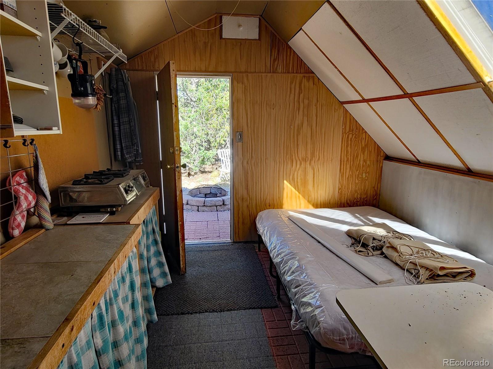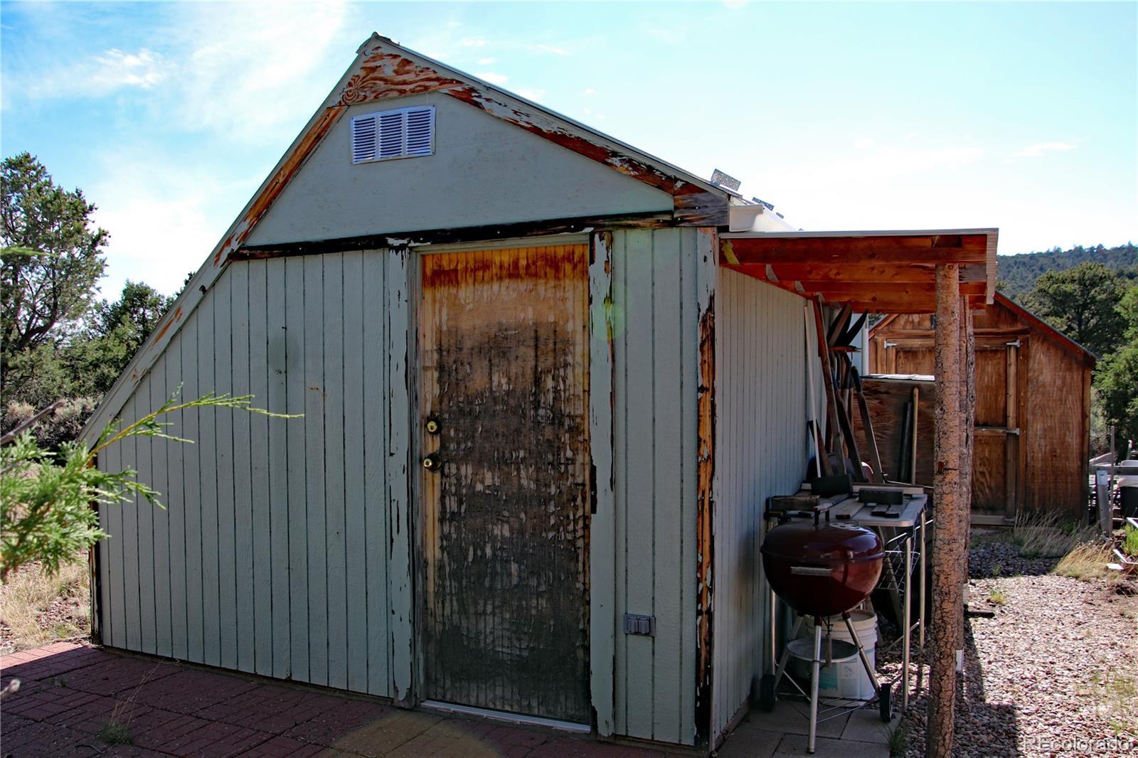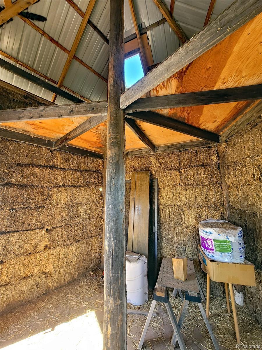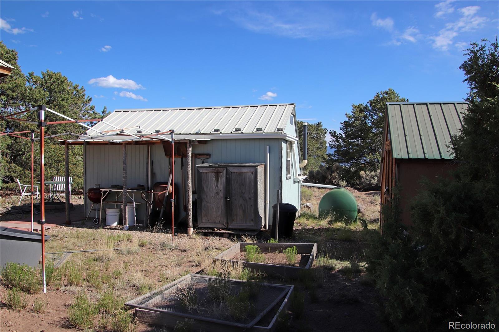 REMOTE, TUCKED AWAY, OFF-THE-GRID and abundant tranquility. This 37 acre property is both a corner lot and on a cul-de-sac! Watch for mule deer on the long meandering driveway. The seller had planned to build from the hilltop, overlooking the Sangre de Cristo mountain range. The area is still pretty much cleared. There are 3 structures on the property. A greenhouse turned into a bunk house, a 1.5 story round strawbale structure at about 8ft wide and a shed. There is an above ground cistern where water can drain from the bunkhouse into the cistern and then is brought into the sink via a bilge pump. The bunkhouse has multiple vents for fresh air and if it should feel too hot, you can just step into the strawbale building and soak up the coolness within. A nice fire circle and several raised garden beds are in place.