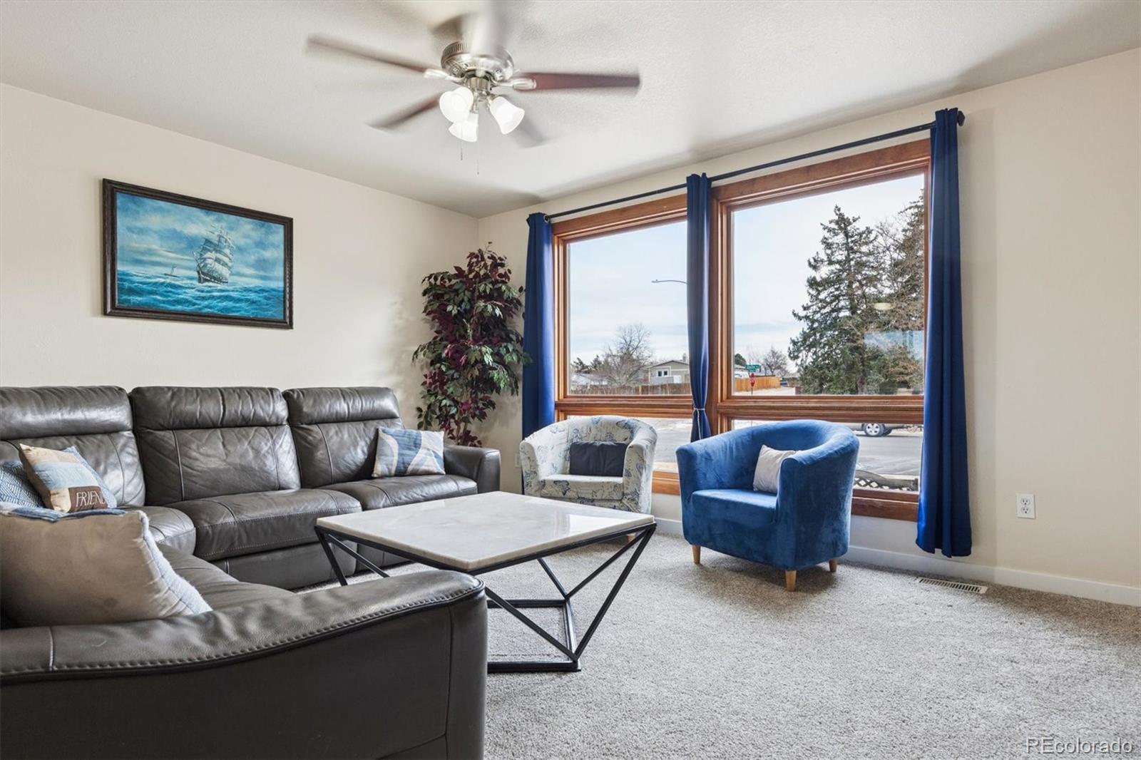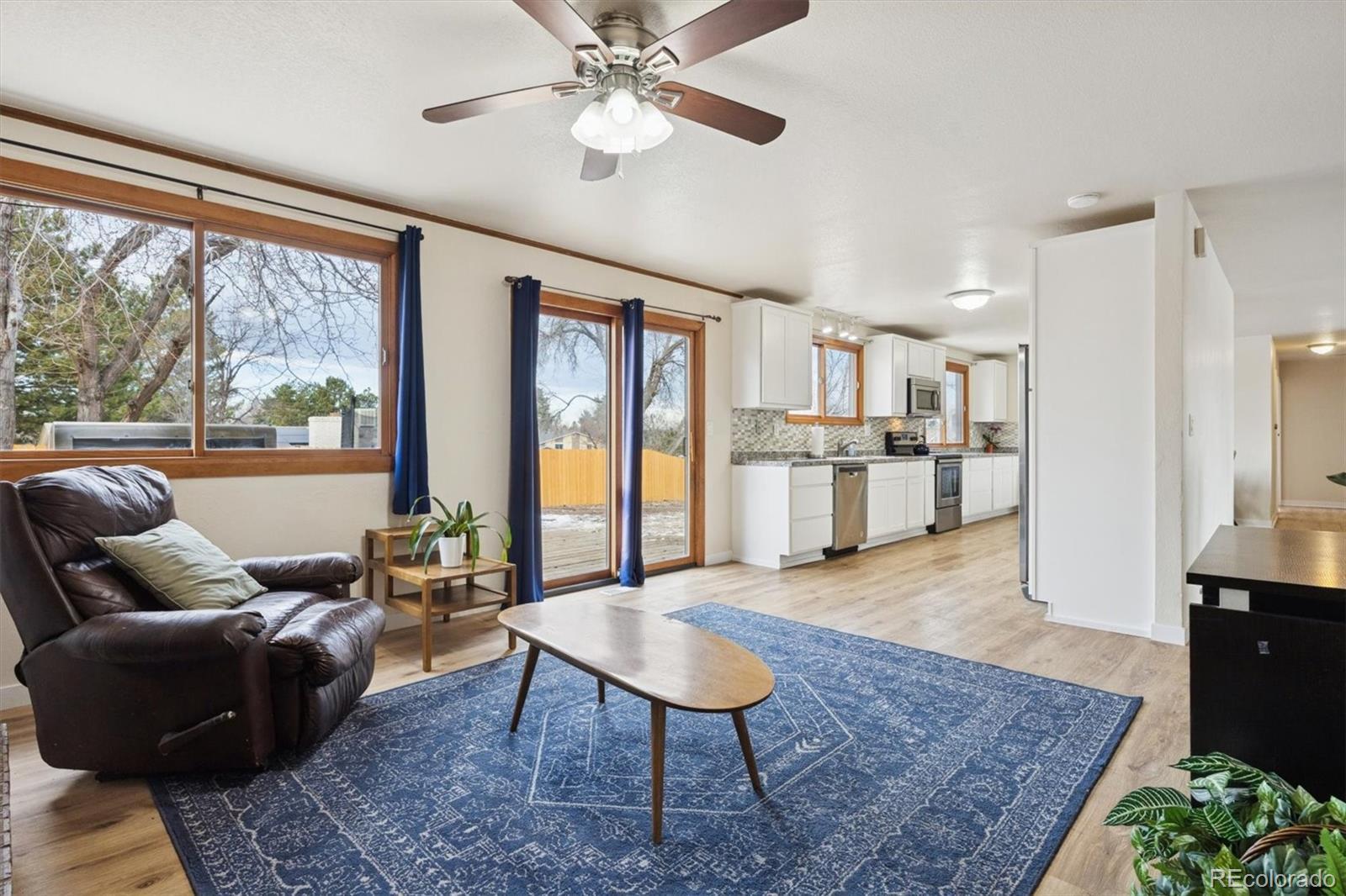 Well-maintained ranch-style home on a spacious corner lot, offering approx. 3,000 sq. ft. of comfortable living space plus room for expansion. The main level features 3 bedrooms, 2 baths, a living room, a family room with a fireplace, a large, open kitchen including all appliances, and a large dining area. The partially finished basement adds incredible versatility with brand-new carpet, a non-forming bedroom, a huge bonus room, a rough-in bath, and abundant storage. The fenced back yard (new) provides privacy, room to play, area for storage, garden, and the like. You can enjoy our beautiful Colorado days and nights on the back deck and the freedom to make the space your own. Located in a friendly neighborhood close to parks, trails, schools, a rec center, and shopping, this home blends comfort, convenience, and value all in one! Attic fan, NO HOA, solar to keep your electric bills down- Please note there are 11+ years left on the solar lease that needs to be assumed. There are Lilac and Rose bushes, as well as Crabapple and apple trees. This wonderful home is waiting for you.