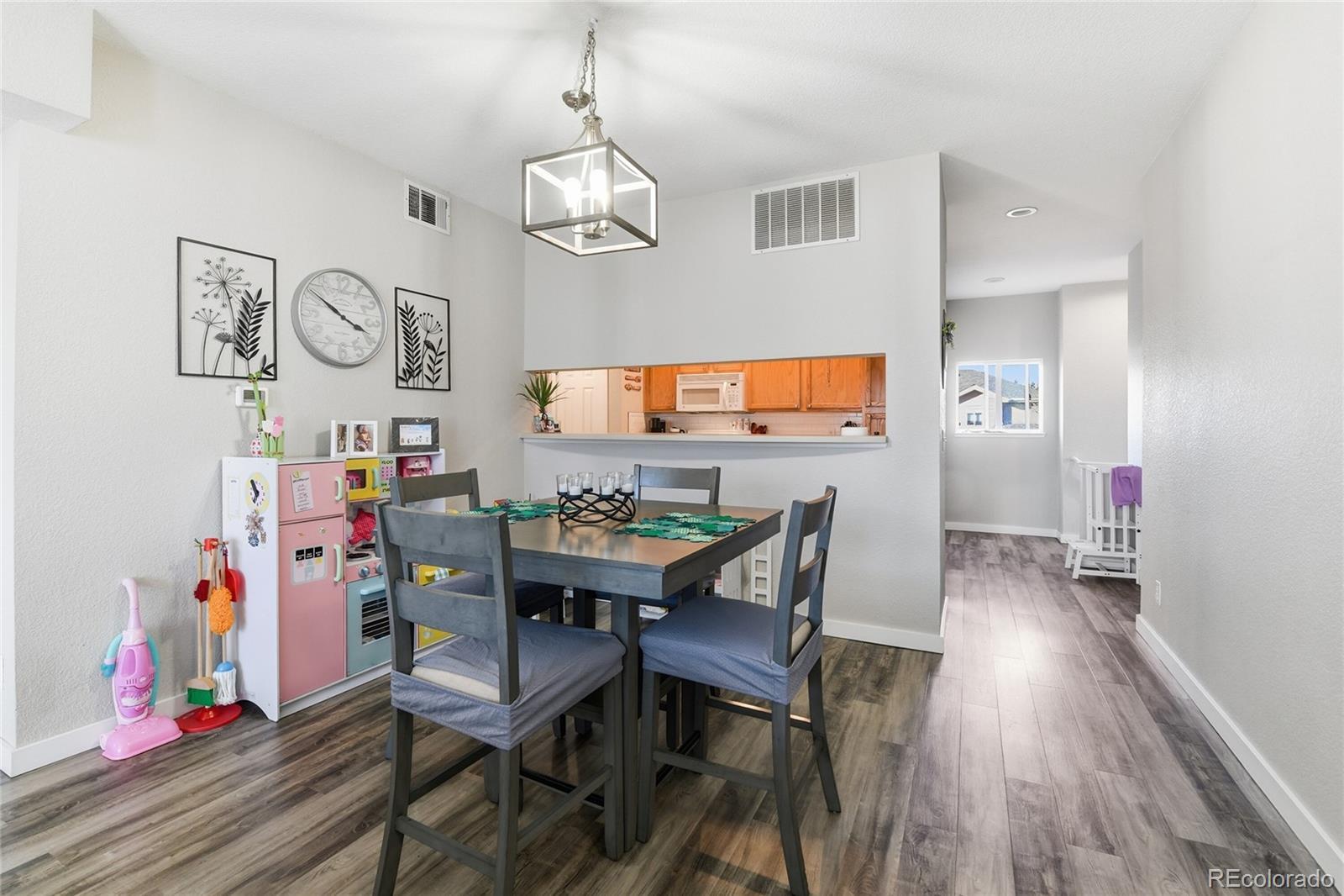 Welcome to the highly desirable Ranch Creek Villas community in Westminster. This light and bright home offers 3 bedrooms and 2 bathrooms all on one level. The home has been modernized with luxury vinyl plank flooring, new baseboards and paint throughout. All light fixtures have been updated adding to the contemporary feel of the home. The open floor plan allows for many options in the living area, from enjoying cozy evenings around the fireplace to entertaining and hosting dinner parties . The kitchen has been updated with a tile backsplash and new hardware. The separate pantry is perfect for added storage. The large primary bedroom features an en-suite bath, walk-in closet and balcony overlooking the park-like grounds of the community. The secondary bedrooms are generously sized with large closets and they share a full bathroom. For convenience, the laundry is located off the kitchen featuring a new washer and dryer that stay with the home. This home feels very quiet and private, with the added benefit that it does not face any major road. For security, there is a one car garage with direct access to the home. Ranch Creek Villas are perfectly situated for easy access to all amenities including major commuting routes, great schools, restaurants, shopping and grocery stores.