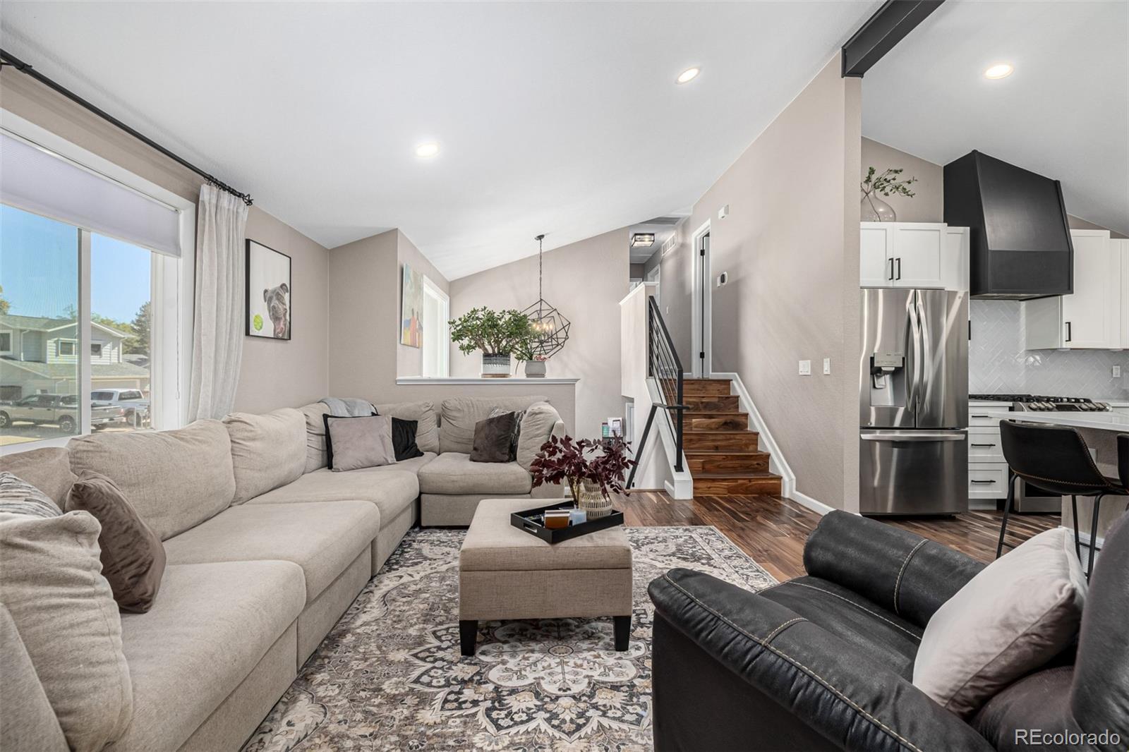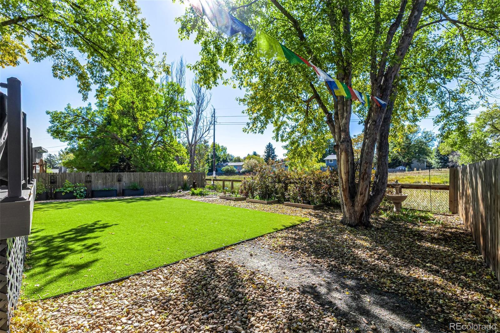 **Modern Comfort Meets Natural Serenity in Lafayette** Beautifully updated home backing to open space and paths, with a private backyard and large Trex deck overlooking green space, just a short stroll to Waneka Lake and one mile to Old Town Lafayette. The remodeled chef’s kitchen features a gourmet quartz island with pendant lighting, abundant cabinetry, double ovens, stainless steel appliances, vaulted ceilings, a gas range, built-in wine cabinet, can lighting throughout, and a smart thermostat, while the sun-facing formal dining room includes a wet bar, wine cooler, custom shelving, and skylights that fill the space with natural light. The main level offers hardwood floors, a wood-burning fireplace for cozy nights, newer hardware, new interior paint, and an updated front porch. The front yard is xeriscaped and the backyard features turf, a drip system, and a relaxing water feature for low-maintenance outdoor living. Upstairs features three bedrooms with ceiling fans, including a spacious primary suite with walk-in closet and an updated bath with double sinks, subway tile, and a barn-style glass shower door, plus a beautifully remodeled secondary full bathroom with a jetted tub. The home also includes a whole house fan, air conditioning, and a radon mitigation system for comfort and peace of mind. The lower level has been remodeled as well, offering a bright garden-level bedroom, full bath, and a versatile space perfect as a family room, workout area, office, or bonus room. Additional highlights include a laundry room with abundant cabinetry, roof replaced in 2019, many new windows, fresh carpet, leaf guard, and a storage shed; parking includes a 2-car attached garage, dedicated RV parking, and two additional off-street spaces. Stylish, bright, and truly move-in ready, this home offers comfort and convenience in the coveted Lafayette school district and close to everything this vibrant community provides. Buyer to verify square feet