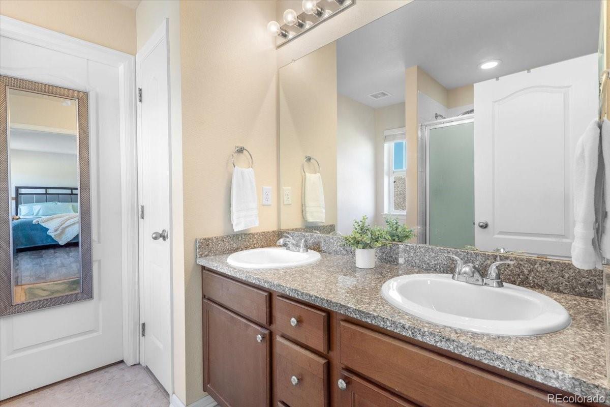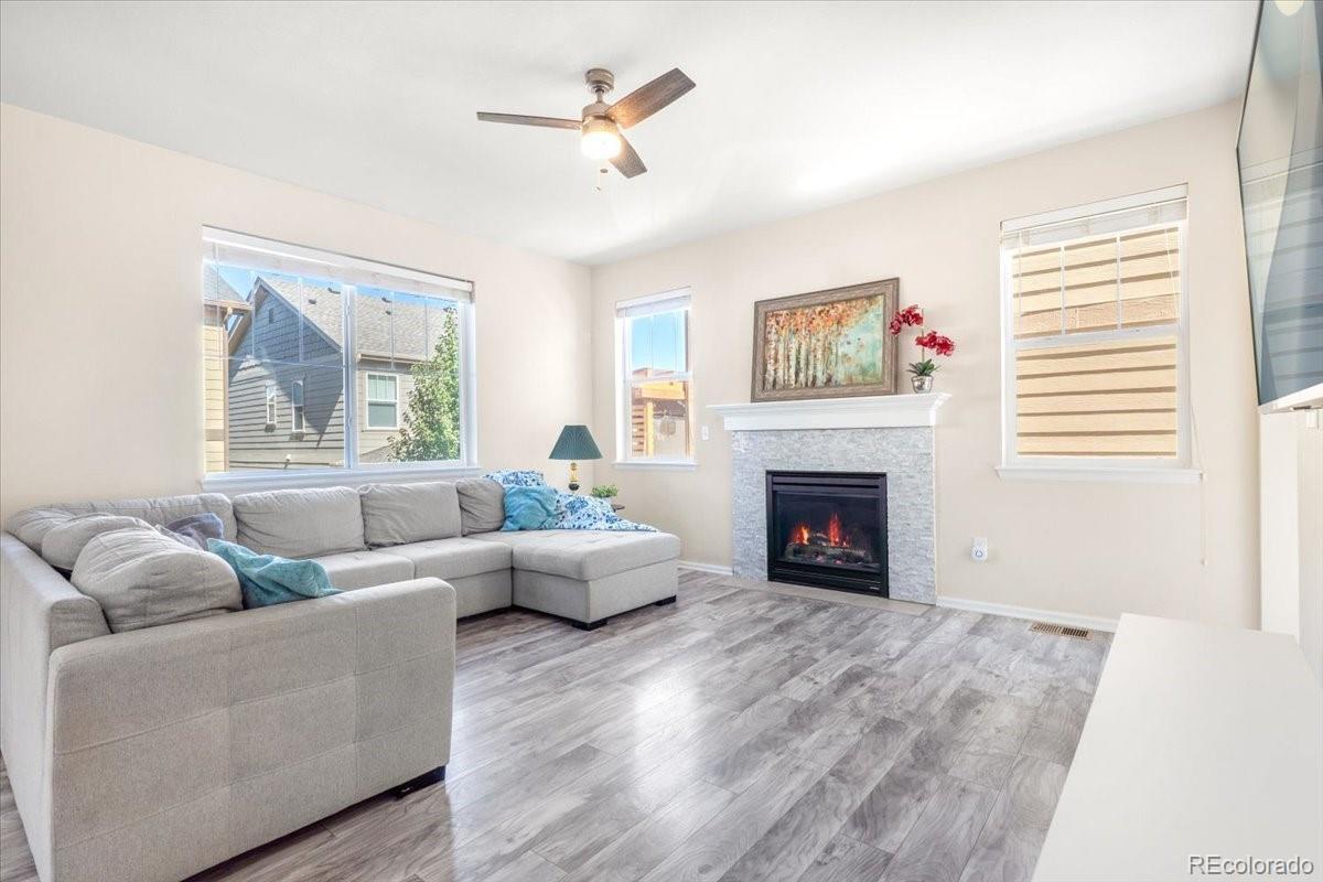 This move-in ready Aurora home in the sought-after Copperleaf community offers a perfect blend of comfort, function, and convenience. The open-concept layout is filled with natural light and features a kitchen island, granite countertops, stainless steel appliances, newer water-resistant laminate flooring, and beautiful hardwood floors in the kitchen. A stylish custom barn door separates the living room and kitchen area from the hallway to the garage, adding both charm and privacy to the main level. The living room also features a cozy fireplace, creating a warm and inviting centerpiece for gatherings and relaxation. Upstairs, you’ll find a spacious primary suite with a large walk-in closet, a 2nd bedroom with its own walk-in, a 3rd bedroom, an upstairs laundry, and a large loft that can be used as an office, playroom, gym, or additional living space. The fully finished basement provides incredible versatility with a kitchenette setup that includes cabinets, a sink, microwave, and dishwasher, along with laundry hook-ups. Complete with it's own living space, a space to use as a kitchen, laundry hook ups, a bedroom, and a full bathroom, it’s ideal for a mother-in-law suite or a rental unit—just add a fridge and cooktop! Recent updates include a new roof (2024), exterior paint (2023), upstairs carpet (2024), new washer (2024), new carpet in the basement (2025), a whole-house fan, and a new deck with pergola (2023). The deck offers added privacy with blinds and is a perfect spot to relax or entertain. Copperleaf is a wonderful community with a clubhouse, pool, baskeball court, and parks. It’s conveniently located within the Cherry Creek School District, close to Southlands shopping and dining, Quincy Reservoir, and several parks & trails. Commuting is easy with quick access to E-470, just 20 minutes to DTC or DIA and about 30 mins to Downtown Denver. *THIS PROPERTY QUALIFIES FOR A FREE 1 YEAR 1% BUYDOWN THROUGH PREFERRED LENDER. CONTACT AGENT FOR DETAILS*