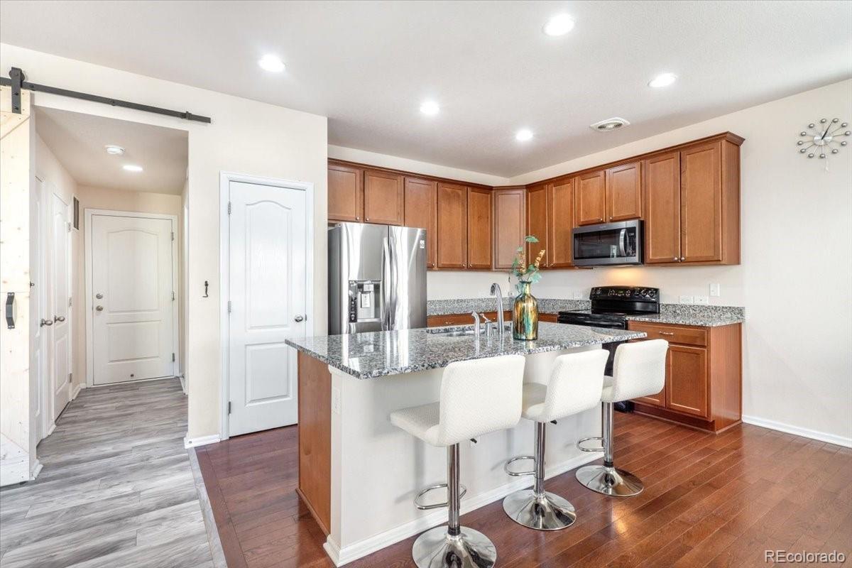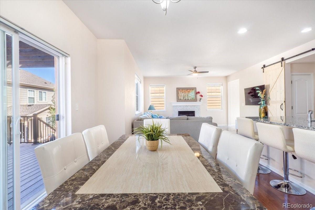 This beautiful Aurora home in the sought-after Copperleaf community offers a perfect blend of comfort, function, and convenience. The open-concept layout is filled with natural light and features a kitchen island, granite countertops, stainless steel appliances, newer water-resistant laminate flooring, and beautiful hardwood floors in the kitchen. A stylish custom barn door separates the living room and kitchen area from the hallway to the garage, adding both charm and privacy to the main level. The living room also features a cozy fireplace, creating a warm and inviting centerpiece for gatherings and relaxation. Upstairs, you’ll find a spacious primary suite with a large walk-in closet, a 2nd bedroom with its own walk-in, a 3rd bedroom, an upstairs laundry, and a large loft that can be used as an office, playroom, gym, or additional living space. The fully finished basement provides incredible versatility with a kitchenette setup that includes cabinets, a sink, microwave, and dishwasher, along with laundry hook-ups. Complete with it's own living space, a space to use as a kitchen, laundry hook ups, a bedroom, and a full bathroom, it’s ideal for a mother-in-law suite or a rental unit—just add a fridge and cooktop! Recent updates include a new roof (2024), exterior paint (2023), upstairs carpet (2024), new washer (2024), new carpet in the basement (2025), a whole-house fan, and a new deck with pergola built in 2023. The deck offers added privacy with blinds and is a perfect spot to relax or entertain. Copperleaf is a wonderful community with a clubhouse, pool, baskeball court, and parks. It’s conveniently located within the Cherry Creek School District, close to Southlands shopping and dining, Quincy Reservoir, and several parks & trails. Commuting is easy with quick access to E-470, just 20 minutes to DTC or DIA and about 30 mins to Downtown Denver. *THIS PROPERTY QUALIFIES FOR A FREE 1 YEAR 1% BUYDOWN THROUGH PREFERRED LENDER. CONTACT AGENT FOR DETAILS*