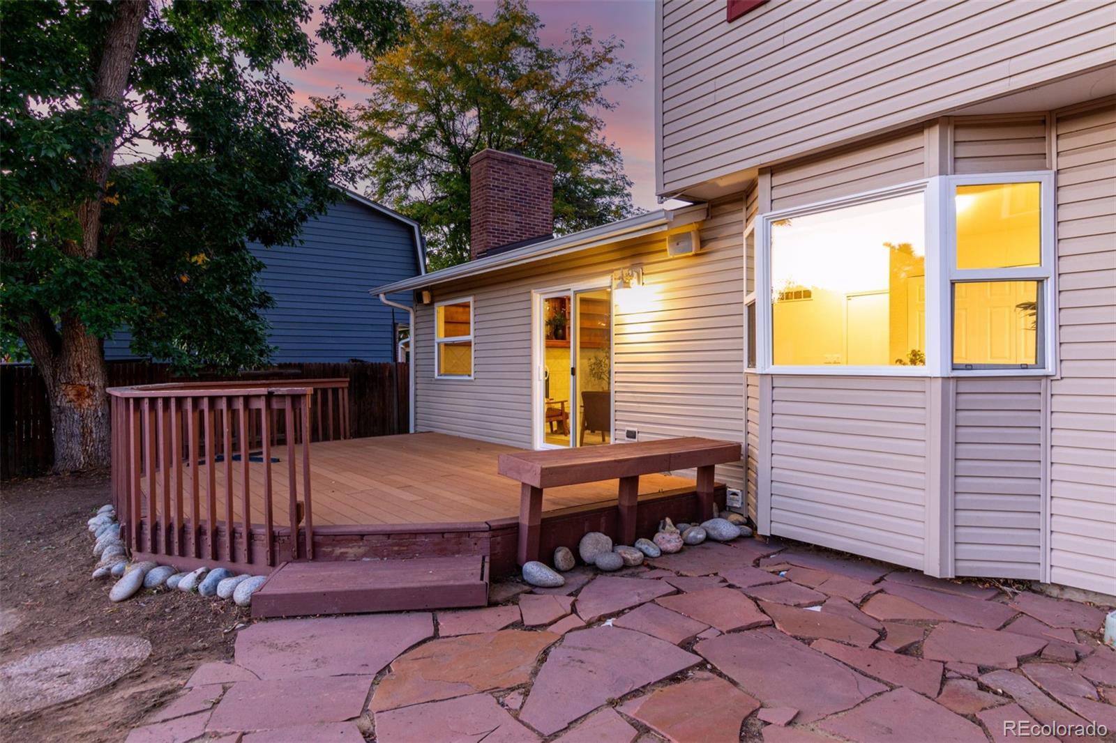 Welcome to your new home in Smoky Hill! This cheerful two-story sits on a quiet cul-de-sac right next to Big Sandy Park, giving you plenty of room to play and explore. Inside, you’ll love the fresh paint, updated laminate wood floors, and open layout that makes everyday living easy. The living room flows into the dining area, a great spot for family dinners or holiday gatherings. The kitchen is bright and practical, with granite counters, stainless steel appliances, and lots of cabinet space. Gather in the cozy family room around the fireplace on chilly evenings, or step outside to enjoy the spacious backyard from your composite deck. There’s even a storage shed for all your gear and garden tools. Upstairs, the primary suite has two closets and its own bathroom for extra convenience. The finished basement gives you even more flexibility with a large hangout space, plus a private bedroom and bath that work perfectly for guests, in-laws, or teens. Big updates like a new roof, HVAC, and fencing in 2023 mean you can move right in and enjoy. With neighborhood amenities including a pool, clubhouse, and tennis courts just minutes away, this home is ready for your family’s next chapter.