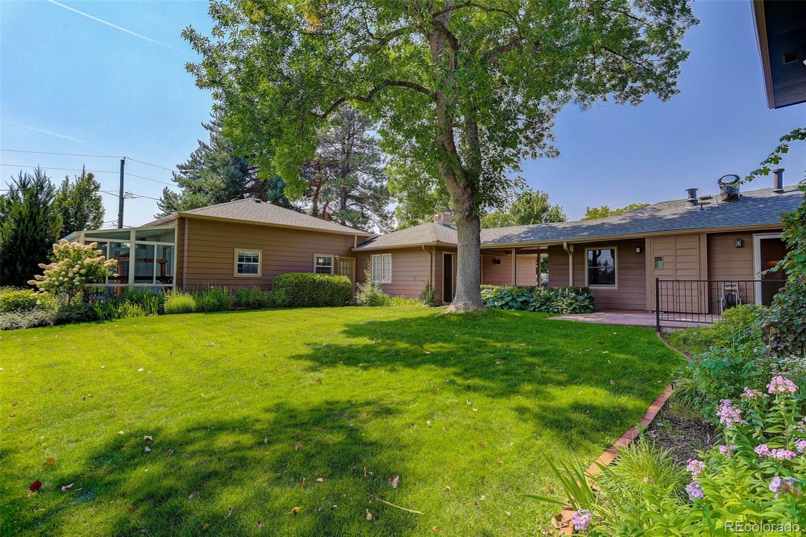 Get ready to fall in love with this wonderful home on a gorgeous lot in Cherry Hills. The land value alone makes the purchase price worth it whether you are planning to live in the move-in ready house or redevelop and build your dream home. Fantastic tilework and gleaming hardwood floors greet you as you enter. Ample windows provide views of the stunning landscaping that surrounds the house. Cook up gourmet meals on your Viking range while prepping on quartz counters. Enjoy fresh vegetables grown in the detached solarium. Your guests will relax in style in the spacious family room complete with wet bar. Your BBQs will be memorable when you entertain in the big yard surrounded by mature trees and beautiful flowering bushes. Cozy up with the family by the fireplace on those chilly nights. The large finished basement is the perfect place to create your lady lounge, man cave, home theater or play place for the kids. Relax away the stress of the day when you retreat to your huge primary suite located upstairs for ultimate privacy. You'll never tire of gazing at the mountain views from your bedroom window. The garages are connected by a breezeway to keep you out of the elements and features a workshop/office flex space. The larger barn style garage is massive with plenty of room for all your yard toys. Just minutes to world-class shopping and dining in the Denver Tech Center and The Streets At Southglenn. Close to Fiddler's Green, parks and trails as well! Welcome Home!