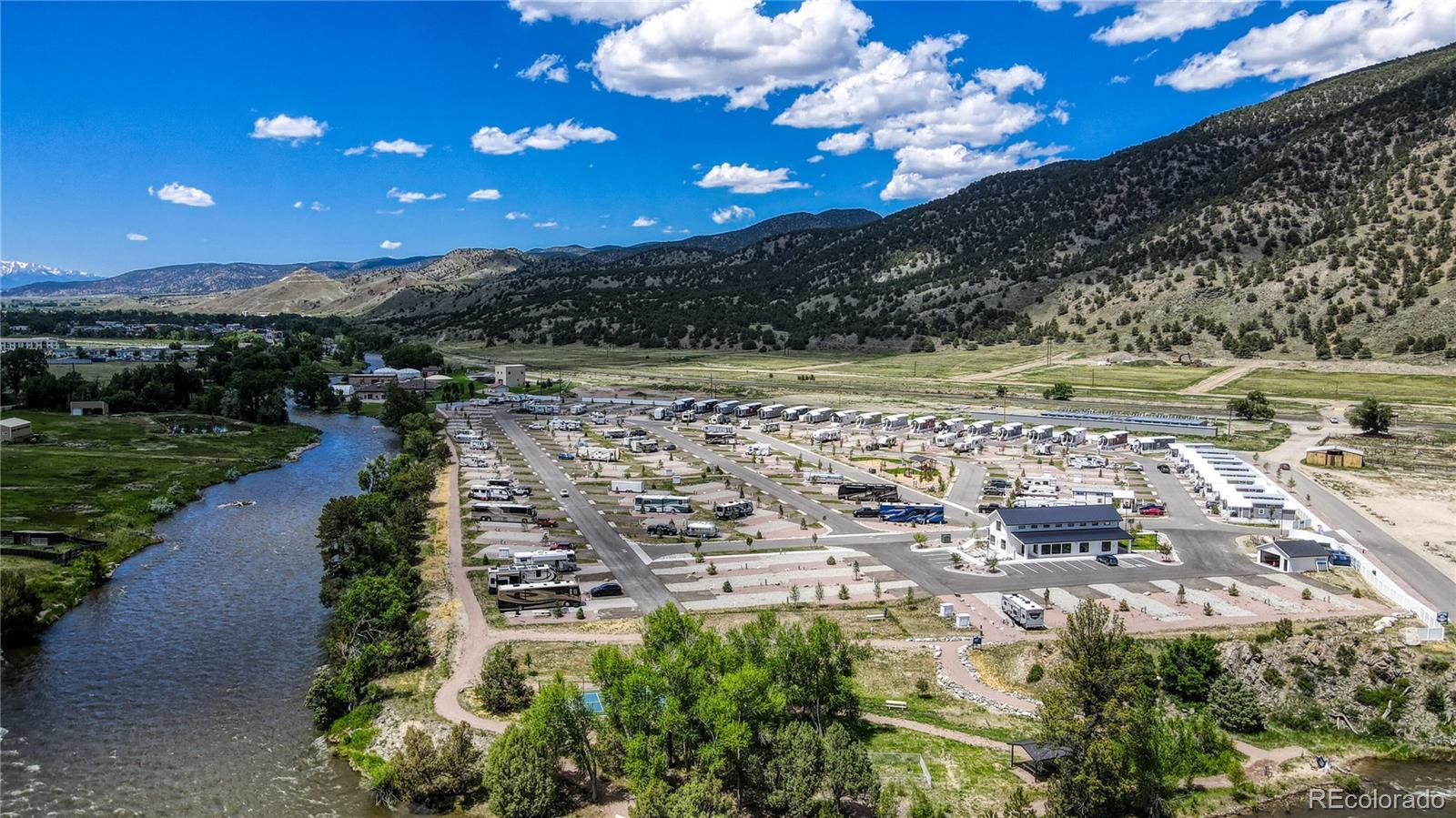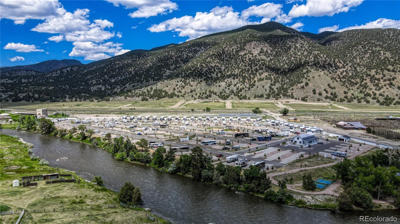Ideally located in the Salida RV Resort across from the Clubhouse and steps from the Arkansas River, Riverfront Park and Pickleball Court. This Champion Homes New Park Model Home has an oversize loft and a galley style kitchen featuring an eat-in bar height counter. Fully electric 399sf, 1 bed/1 bath Park Model with in-unit laundry, ample storage, open floor plan, eat-in kitchen, private bedroom and low-ceiling lofted area. Efficient floor plan offers living area with designated wiring for entertainment system; kitchen farm sink; three-quarter bath off kitchen; private bedroom nestled at the back of the unit with closets and built-in dresser. Park model is skirted with front steps and 6' covered front porch. Two off-street parking spaces, 10'x6' storage shed and basic landscaping are included. With over 1600 feet of Arkansas River frontage, Salida RV Resort offers big mountain views of the Collegiate Peaks to the west, playground area, a riverside park, picnic area, pickle ball court and dog run. Resort Clubhouse offers communal space, coin-op laundry, locker rooms, conference room, and a workout room. High speed internet is available. Monthly lot rent is $648 and includes clubhouse amenities, water, sewer, trash, snow removal and landscaping maintenance. Designed with eye to affordable luxury and a desire to build community, the Salida RV Resort is a brand new 4-season park with brand new amenities situated in the heart of the Arkansas River Valley. Excellent proximity to a full spectrum of outdoor activities and just 2.5 miles from Salida's vibrant Downtown Historic District. Listing Agent is not Seller; Seller is a licensed Realtor in the State of Colorado. Not eligible for short term rentals