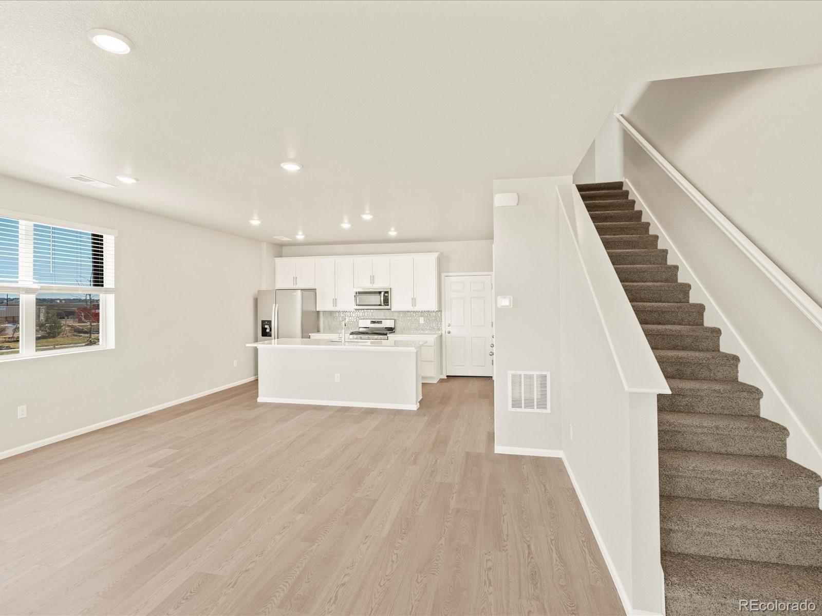 Welcome to the Meritage homes Woodland plan. This modern 2-story townhome features 3 bedrooms and 2.5 bathrooms. As you step inside to the welcoming open-concept layout seamlessly connects the kitchen, dining area, and great room, creating an inviting space for entertaining friends and family. The upper level conveniently has the laundry, making chores a breeze. The primary suite provides a cozy retreat after a long day and spacious walk-in closet. And that’s not all! The Woodland boasts a large loft upstairs—for an additional place to hang out and relax. Photos are representative only and are not of the actual home. Actual finishes, elevation, and features may vary.