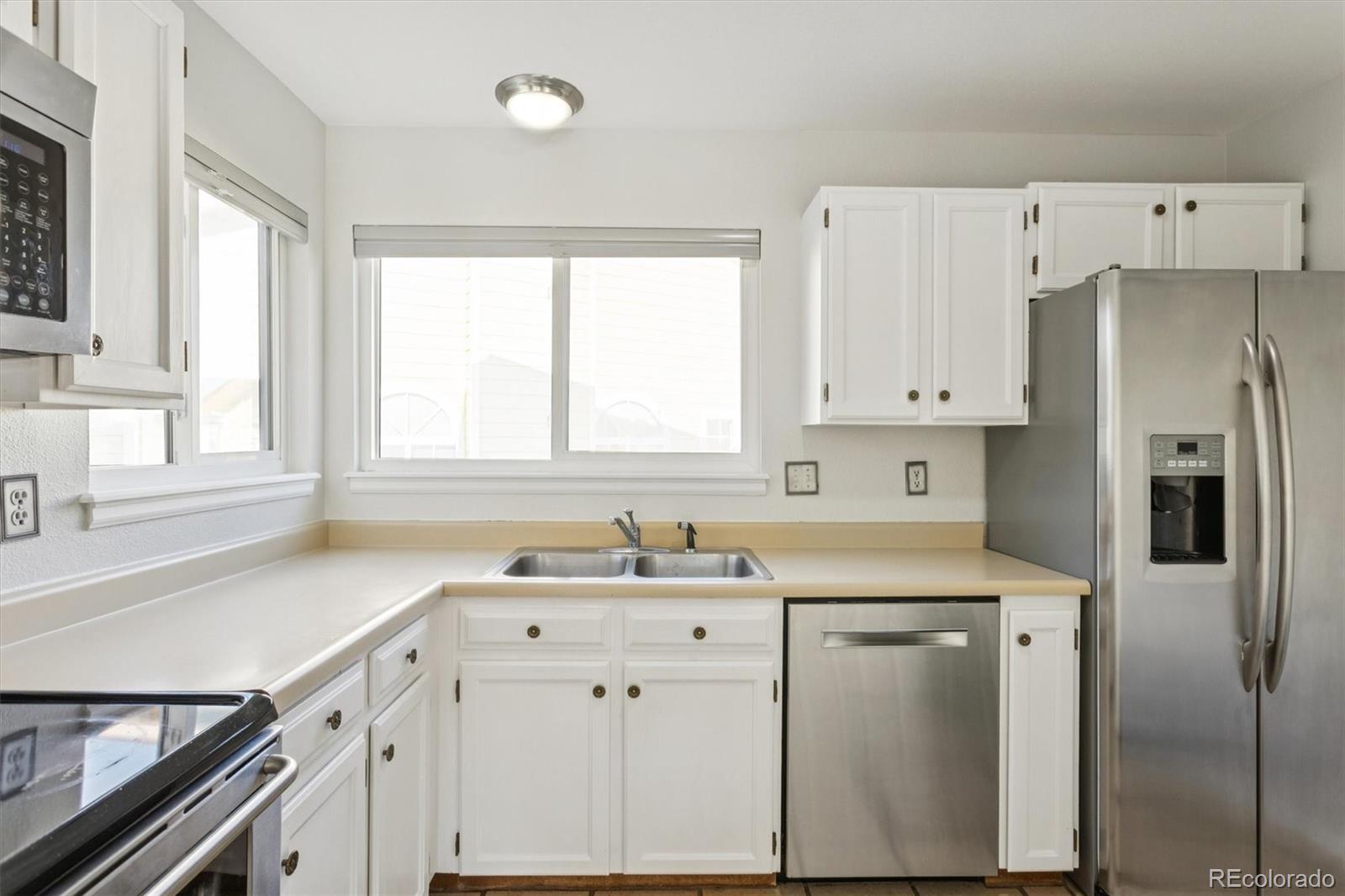 Check out this well-maintained Littleton townhome that has thoughtful updates throughout! Upon entry, you are greeted by impressive, vaulted ceilings that include a pair of newer, energy efficient skylights that flood the room with natural light. The collection of large, energy efficient Pella windows add to the natural light and open feel throughout the home. The kitchen includes stainless steel appliances with a high-end Bosch dishwasher. Enjoy a mountain view from the spacious primary bedroom that includes a bathroom that has been updated with a soaker tub, shower, high efficiency toilet and dramatic tile that adds character. The basement is fully finished with durable porcelain tile floors and offers another living option with a bedroom and three-quarter bath – there is also a large bonus space that can be used as a game room, workout/gym space or home office option. The private back patio and small fenced yard are perfect for enjoying some outdoor time. The one car attached garage has a newer door, track, and lift master opener that is Wi-Fi equipped – it also offers ample storage options including overhead built ins. The home has a new roof/gutters (2024) and new exterior paint/siding repair (2025). There’s a wide range of activities that you can take on with hiking/biking trails close by and Red Rocks/downtown Morrison, Chatfield state park, and downtown Littleton are all 15 minutes away.