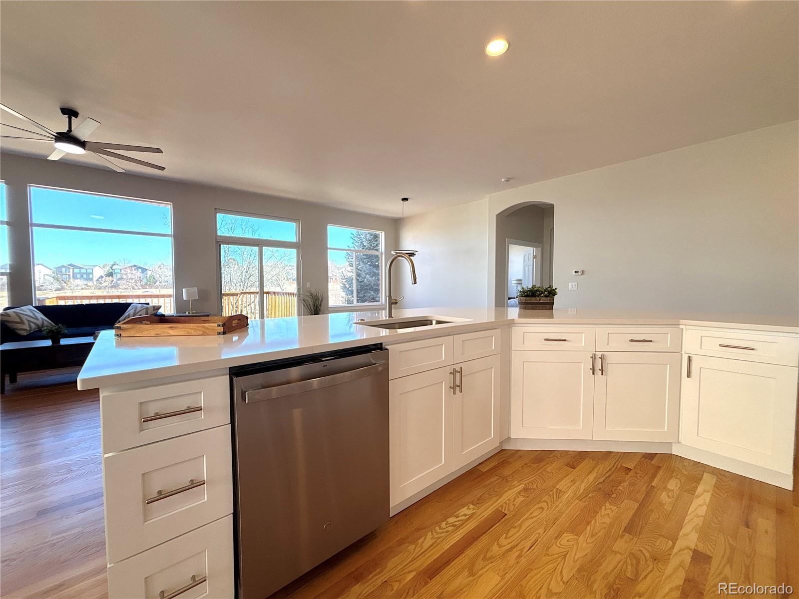 Ceiling Fan(s), High Ceilings, Kitchen Island, Quartz Counters