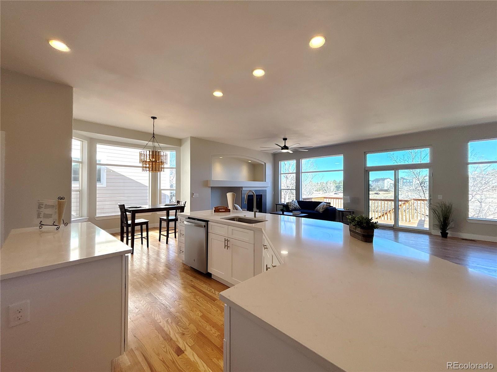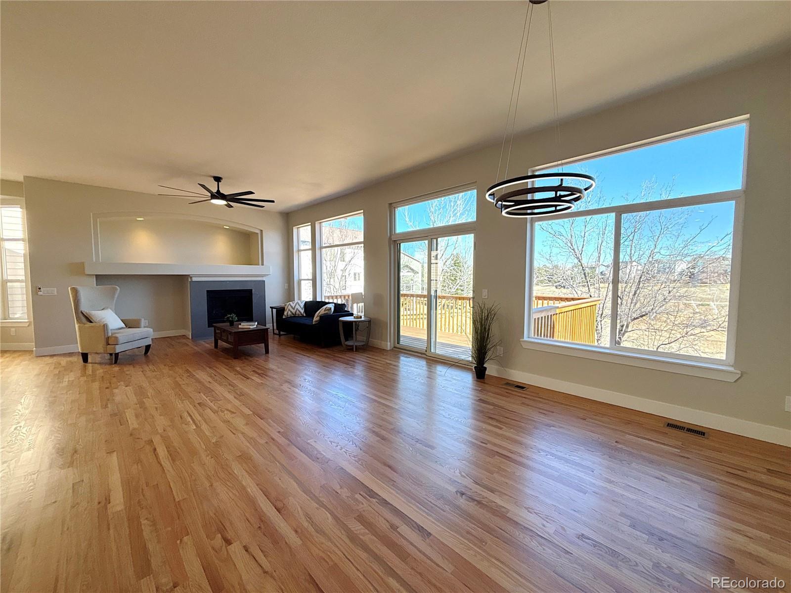 Welcome to this charming single-family home in Highlands Ranch. This updated 4-bedroom, 3-bathroom home offers the perfect blend of modern elegance and comfort. Featuring fresh, vibrant paint and upgraded lighting throughout, this home creates a welcoming atmosphere from the moment you step inside. The gorgeous hardwood flooring flows seamlessly through the main level, while brand-new carpet adds a cozy touch to the Basement. The kitchen is a true highlight with beautiful wood cabinetry, luxurious quartz countertops, and stainless-steel appliances. – perfect for cooking and entertaining. The bathrooms have been meticulously updated with stylish designer tile. Beautiful deck overlooking open space! Located in a fantastic neighborhood. This home is ready for you to move in and start making memories. Don’t miss your chance to see this amazing home – it’s waiting for you!
