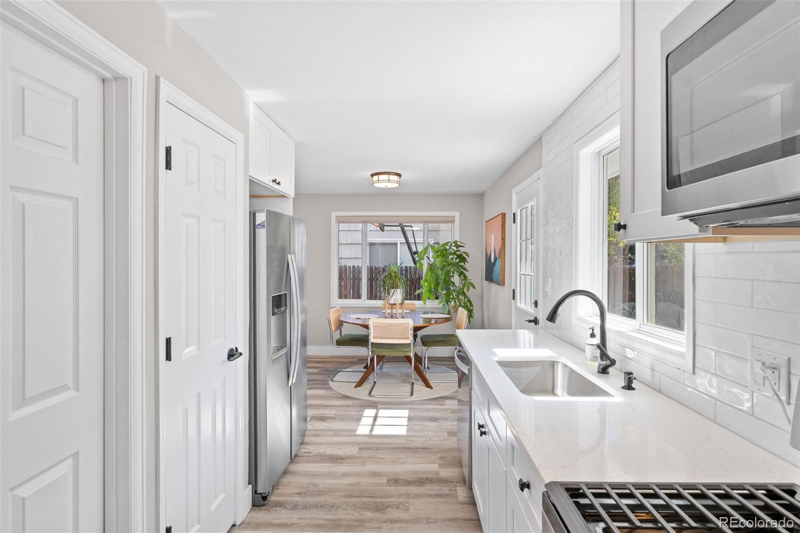 Beautifully updated throughout, this 3 bedroom, 1 bathroom home in Denver’s Athmar Park blends modern comfort with everyday functionality. Fully renovated in 2022, the home features an open floor plan filled with natural light from large windows, showcasing quartz countertops, matching Whirlpool stainless-steel appliances, and Kohler finishes. The kitchen includes a gas range, counter-depth refrigerator, oversized sink, and an expansive walk-in pantry/laundry room with built-in shelving and cabinets and matching LG washer and dryer. Recent upgrades include custom shades throughout including blackout shades in the primary bedroom and a Nest smart thermostat. The shades in the primary bedroom and living room are remote-controlled for optimal convenience. The spacious backyard is a true highlight —- perfect for entertaining, enjoying beautiful Colorado sunsets, or letting pets play while you relax on the concrete patio. With amazing views of downtown, alley access, an outdoor storage shed, and plenty of room to grow, this home combines thoughtful design and outdoor lifestyle. Located just six blocks from RTD Alameda Station and minutes from Wash Park, downtown Denver, and neighborhood favorites like Pho 555 and The Molecule Effect, this Athmar Park gem offers modern updates, community charm, and unbeatable convenience. The crown jewel of the neighborhood is Huston Lake Park which consists of a 1-mile loop around Huston Lake, athletic fields, tennis and pickleball courts, and a playground. Walkthrough video: https://frontrangemedia.aryeo.com/videos/0199c99a-2451-71bb-a4dd-9a8c8689ffa8.