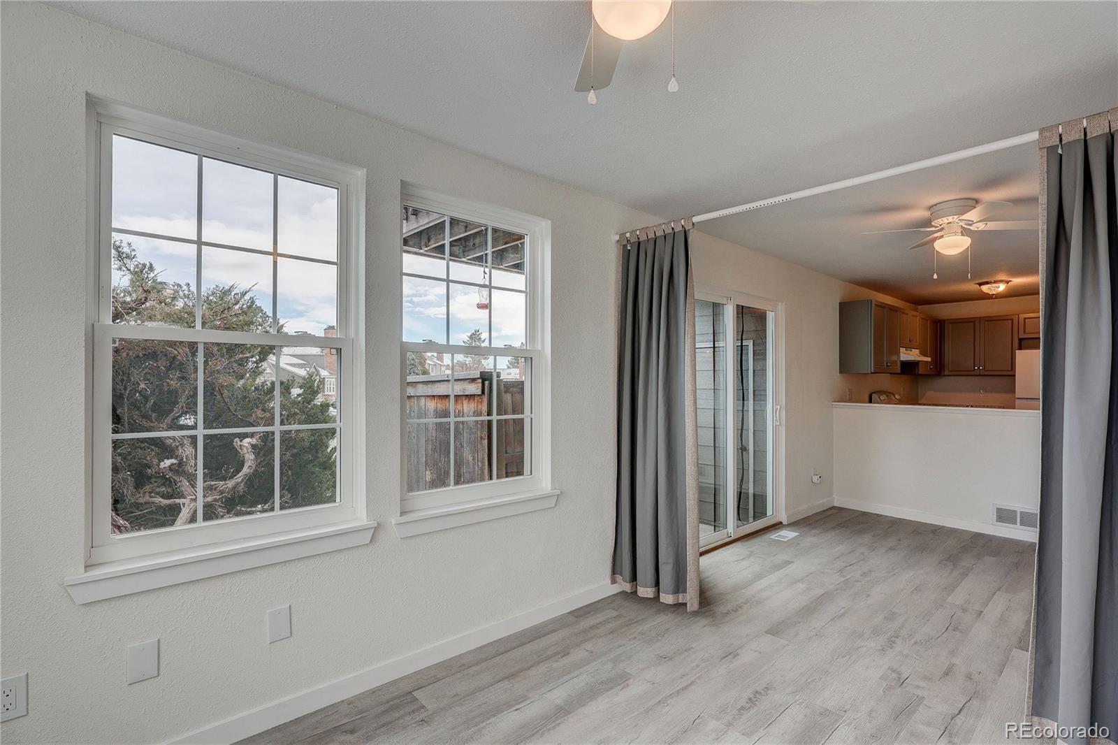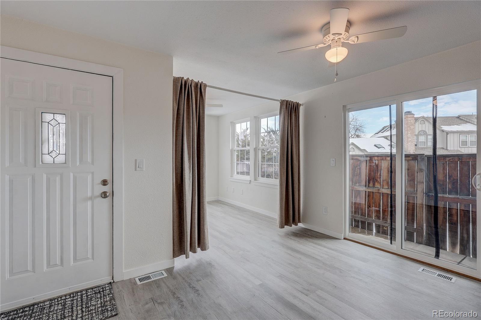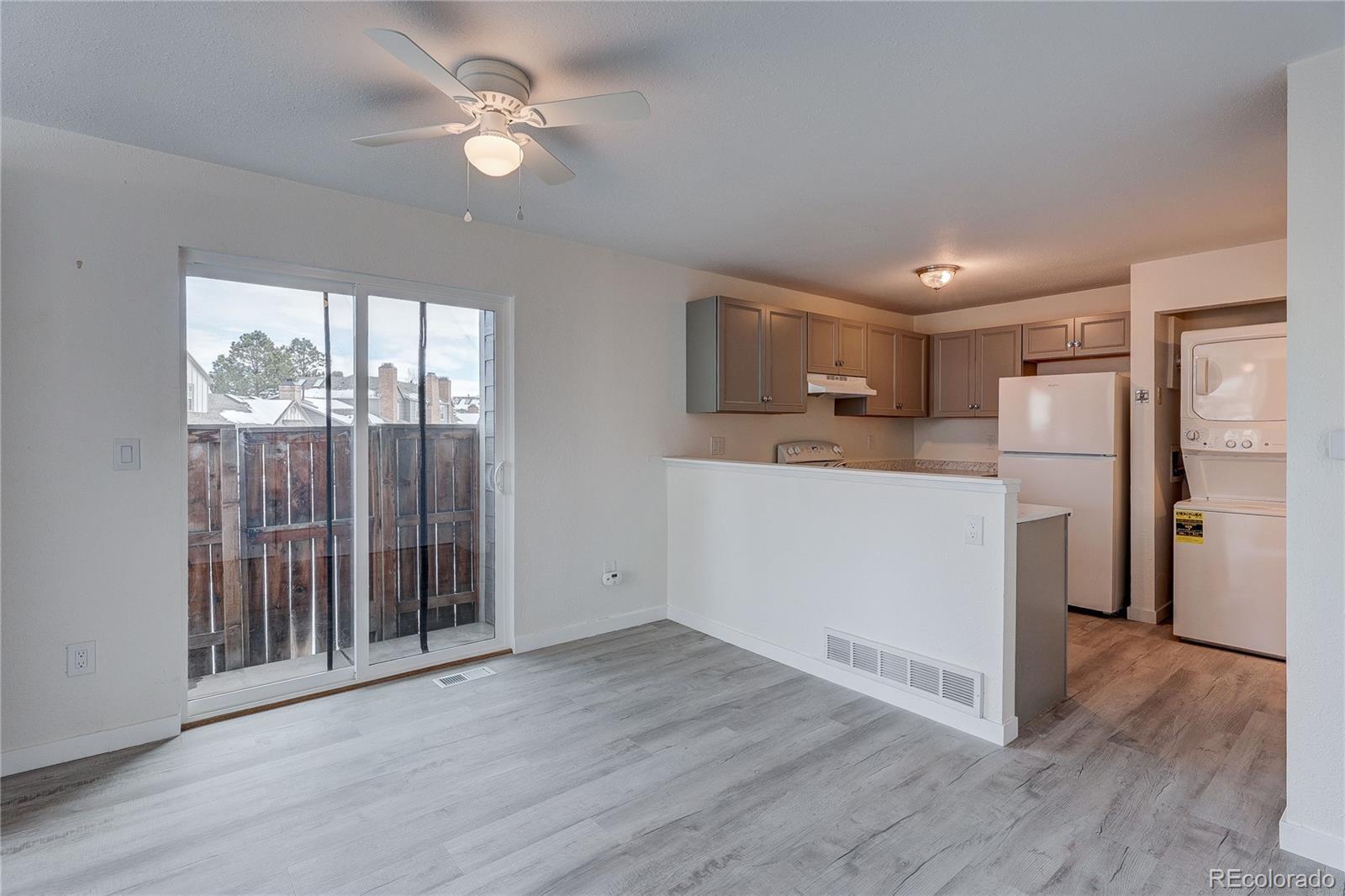 This beautifully updated 1-bedroom, 1-bath studio-style condo offers a fresh and modern living space with thoughtful details throughout. Spanning 446 square feet, the home has been completely renovated—featuring brand-new windows, a new sliding glass door, and stylish laminate flooring. The kitchen stands out with its sleek new cabinetry, modern appliances, and open layout that connects effortlessly to the living and dining areas. Step outside to your own private patio and fenced yard, perfect for enjoying quiet mornings or relaxing evenings outdoors. Additional highlights include a new in-unit washer and dryer, making laundry day a breeze. New window AC unit in the closet ready to be installed by the new buyer. The HOA fees are among the lowest you’ll find, offering an outstanding value for this sought-after area. Located in Discovery at Smoky Hill, residents enjoy easy access to local conveniences like shopping, dining, and entertainment are just minutes away. Outdoor enthusiasts will love being close to Cherry Creek State Park, a hotspot for biking, hiking, and water recreation. With quick connections to E-470 and I-225 and Denver International Airport, commuting anywhere in the metro area is simple. Ideal for first-time buyers, downsizers, or anyone in search of a low-maintenance lifestyle. >>>>>The complex is fully FHA approved!<<<<< Virtual Staging used in some of the listing media