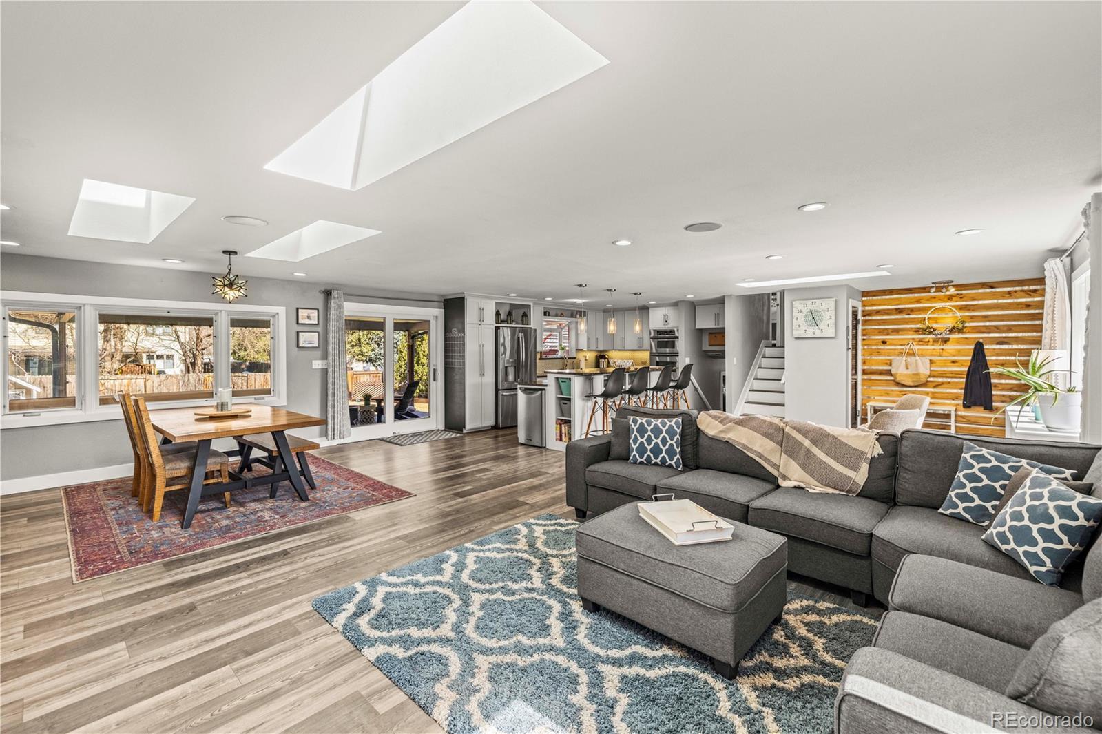 Bright, open, and designed for real life. This Wellshire East home offers the kind of square footage and flexibility that quietly supports how you actually live. You walk in and immediately feel the scale. The main level great room is expansive, framed by skylights that pour in natural light and glass sliding doors that open to the backyard. It feels airy yet comfortable. Large enough to host a crowd. Inviting enough for a quiet night in. The floorplan unfolds across multiple levels, creating natural separation without disconnecting the home. A large secondary den, just below the great room, offers a perfect retreat for work, movies, or a separate hangout space. Along with an additional bedroom and bath, this floor features built-in storage everywhere, maximizing functionality. The lower level provides even more adaptable square footage, ready to evolve with your needs over time. Updates throughout bring a cohesive, polished feel. The kitchen and overall living spaces have been thoughtfully refreshed, and the primary suite offers a generous walk in closet along with a private raised deck that feels tucked away and peaceful. The home feels elevated without trying too hard. Out back, a large covered patio extends your living space outdoors, while the oversized yard offers room to gather, play, or simply enjoy some breathing room. An oversized two car garage adds the practical element that makes everyday life easier. The location adds even more convenience, with close proximity to light rail, Cherry Creek, and an abundance of nearby dining options. Multiple grocery stores are just minutes away, including Whole Foods, making everyday errands simple and accessible. With 4 bedrooms, 3 bathrooms, and 2,875 square feet, this is a home that balances openness with warmth. Spacious without feeling overwhelming. Comfortable without sacrificing scale. A place that adapts with you, in a neighborhood that continues to be one of Denver’s most sought after.