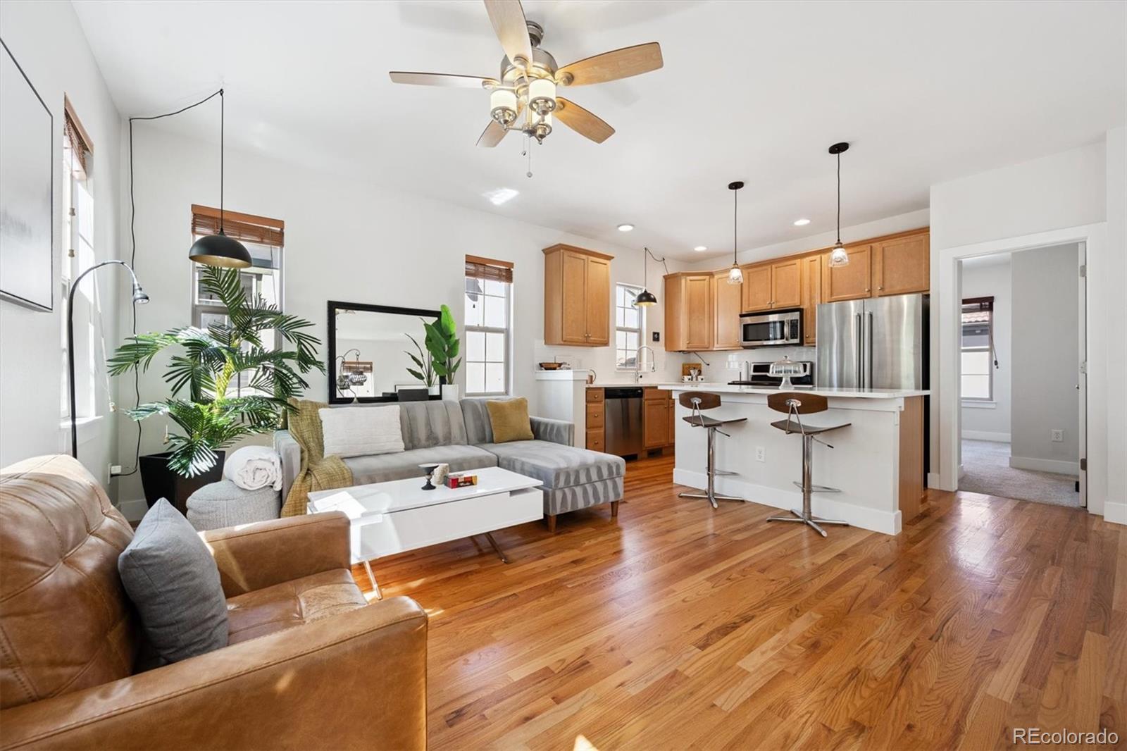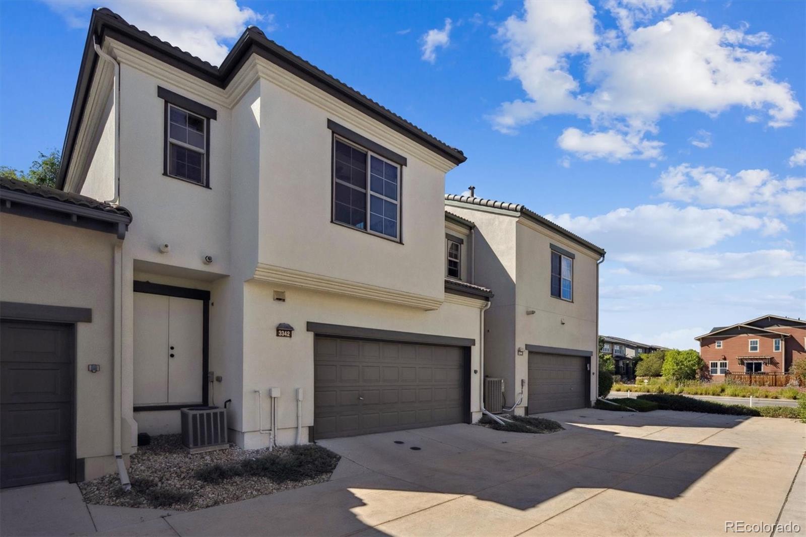 Welcome to 3342 Central Park Boulevard, a distinctive Mission-style casita nestled in the heart of Denver, Colorado. This property offers a unique blend of comfort and convenience, embodying the essence of a single-family detached home while sharing minimal wall space via the garage. It really feels and lives like a Single Family Home. With 959 square feet of thoughtfully designed living space, this home features two bedrooms and two bathrooms, perfect for first time home owners, investors, and those looking to downsize and seeking a cozy, lock-and-leave lifestyle. Upon entering, you'll be greeted by arched front doors and a quaint courtyard that exudes charm and tranquility. The Spanish roof tiles add a touch of elegance to the exterior, complementing the home's architectural style. Inside, the great room and kitchen are situated on the top floor, providing a serene, treehouse-like ambiance that is both private and inviting. Located just one block from the expansive 80-acre Central Park, this property offers easy access to miles of trails, ideal for outdoor enthusiasts. The proximity to the light rail station and A-line ensures seamless connectivity to downtown Denver and the airport, making commuting a breeze. Nearby amenities include FlyteCo Brewing, Sprouts Farmers Market, Natural Grocers, Panda Coffee House, and Quebec Square, home to establishments like Crumbl Cookies, Runners Roost, Home Depot, Panera, and Sam's Club. This home is designed for those who appreciate the convenience of no yard work, allowing you to focus on enjoying the vibrant surroundings. Whether you're exploring the local shops or taking a leisurely stroll through the park, 3342 Central Park Boulevard provides the perfect balance of urban living and natural beauty. This property is now available for sale, offering a rare opportunity to live in Central Park, a well-planned community with top ranked schools. Experience the charm and convenience of this one-of-a-kind home today.