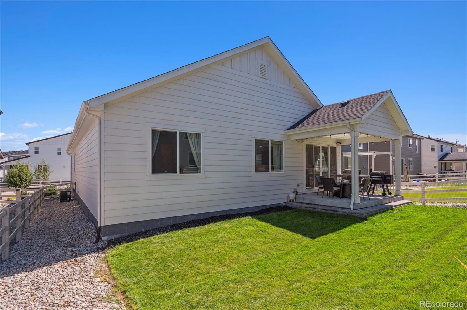 Welcome to 4845 Gray Wolf Lane—a place where comfort, style, and Colorado living come together. Tucked into the heart of Castle Rock, this 3-bedroom, 2-bathroom home offers 2098 square feet of inviting space designed for everyday living and easy entertaining. There is also a dedicated office so you can keep your bedrooms as bedrooms for yourself/friends/family. Step inside and you’ll feel the flow right away—the open layout makes everything feel connected, whether you’re gathered around the island in the kitchen or relaxing in the living room bathed in natural light. The kitchen has everything you need (and want): plenty of cabinets, sleek counters, and slate no fingerprint appliances ready for quiet mornings or big dinners with friends. The living area is warm and welcoming, with easy access to the covered patio. Out here, you can sip your morning coffee, grill on summer nights, or simply enjoy the Colorado air—rain or shine. The family room has a 5-1 surround sound speakers, 2 Speakers on back porch and 2 in the garage for your entertainment Set on a nearly 6,000 square foot lot, the yard gives you room to play, garden, or just unwind, while the attached garage with custom shelving adds the convenience every household needs. This home is more than a floor plan—it’s the backdrop for your next chapter. Whether you’re looking for a fresh start, a place to grow, or simply a retreat to call your own, 4845 Gray Wolf Lane is ready to welcome you home.