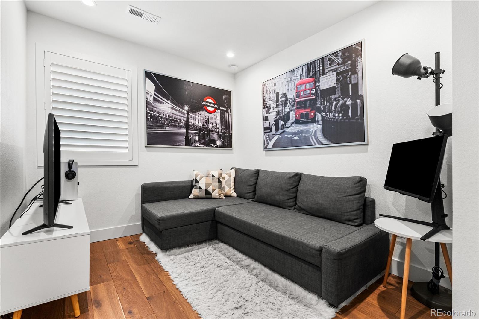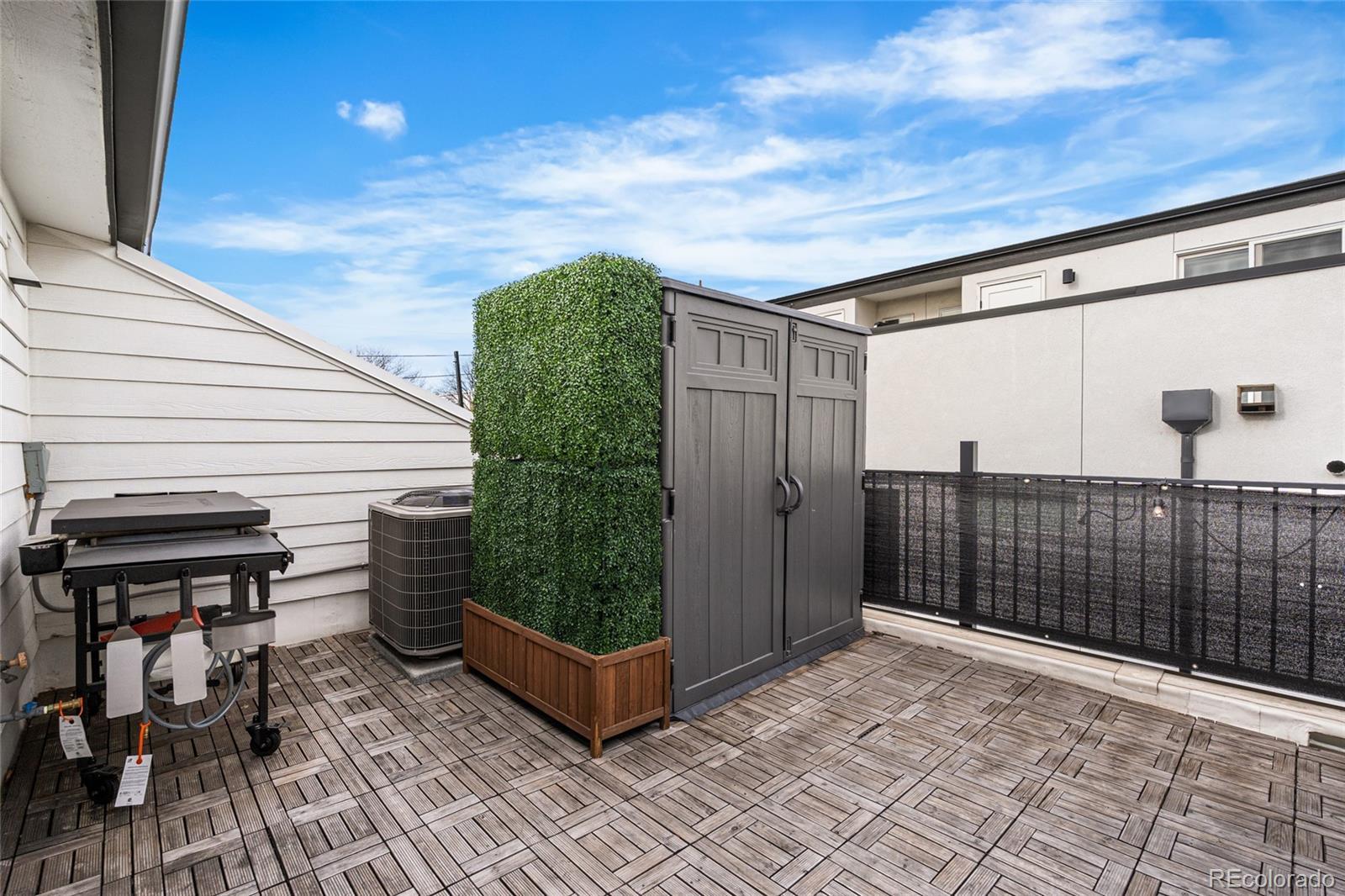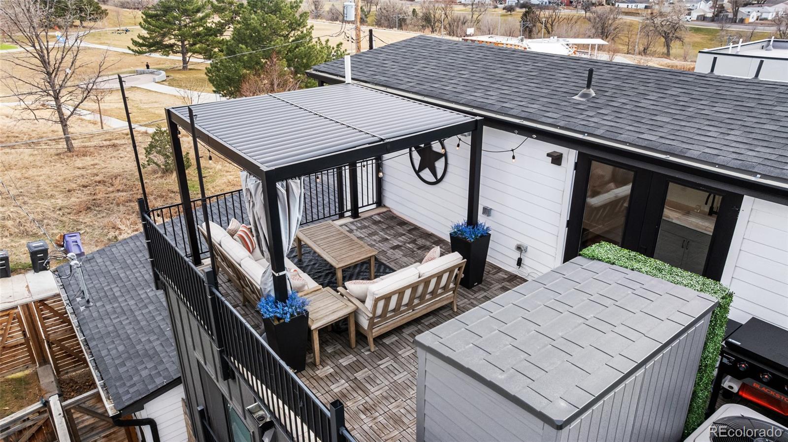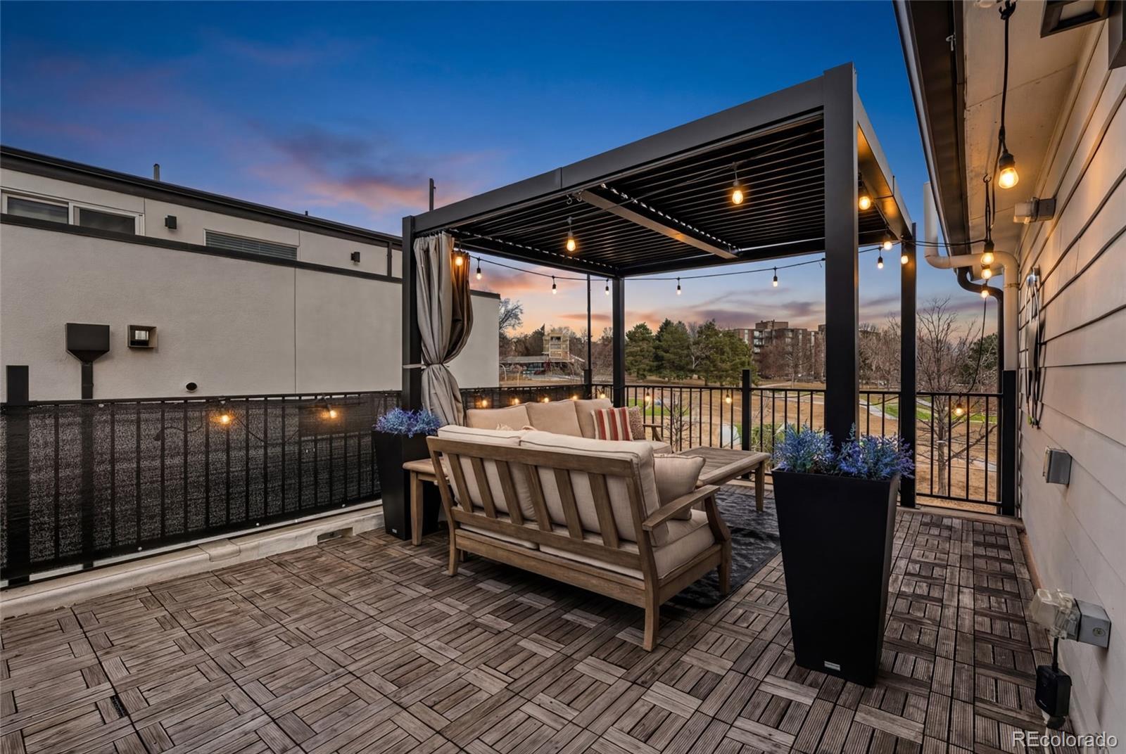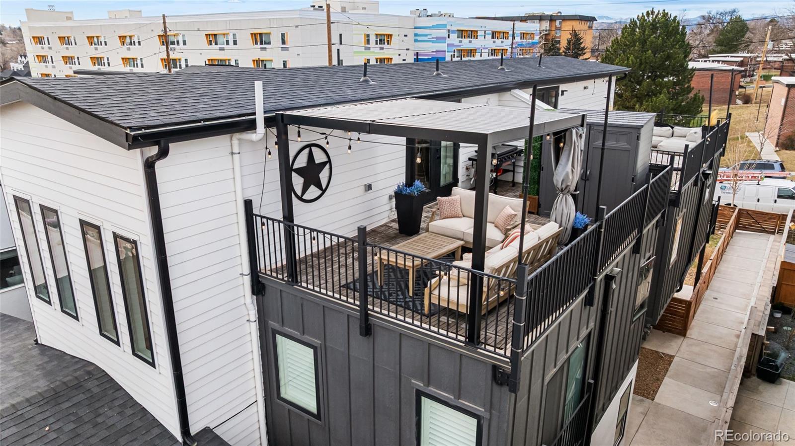 Welcome to a truly rare opportunity to own a newer-construction townhome in the heart of vibrant West Colfax. This residence stands apart with features that are increasingly hard to find in this area: a fully fenced private main-level patio, 1-car garage, and an expansive rooftop deck with park views. Inside, elevated finishes and intentional design create a warm, sophisticated feel throughout. Weathered brushed-grain hardwood floors throughout anchor the home, complemented by designer wall treatments, statement lighting, and high-end tile selections. The kitchen is both functional and stylish, featuring custom millwork and an easy layout that sets the tone for entertaining. The third-floor bonus level offers flexible living space, perfect for a home office, and includes a built-in wet bar with beverage center for effortless hosting. The rooftop deck spans over 375 square feet, offering a private outdoor escape overlooking the beautiful Paco Sánchez Skatepark. Engineered to accommodate a cozy hot tub, this space is ideal for sunset dinners, morning coffee, or weekend gatherings. Equally rare for townhomes in West Colfax is the private, fenced main-level patio, providing secure outdoor space for pets, gardening, or relaxed everyday living. With a party wall agreement in place, there is no HOA; allowing for greater flexibility and lower monthly ownership costs. The location is unbeatable. You are just minutes to Sloan’s Lake dining and recreation and the Knox Light Rail Station is just across the street for easy downtown access. Quick connections to major highways make commuting to the city or the mountains seamless. To add even more value, the seller is offering a 1% buyer credit (based on purchase price) to be used toward an interest-rate buydown or closing costs. This is urban living done right: lower maintenance, exceptional outdoor space, and a location that truly delivers.