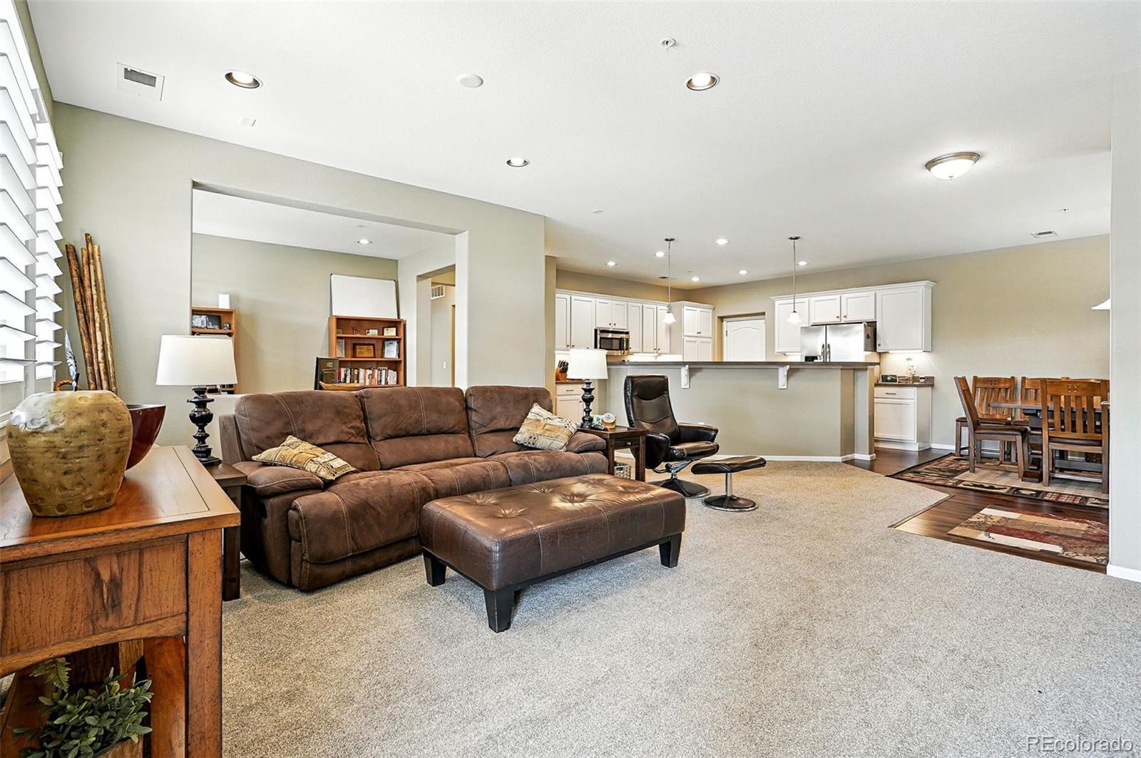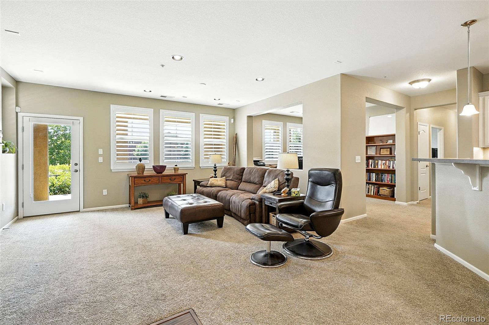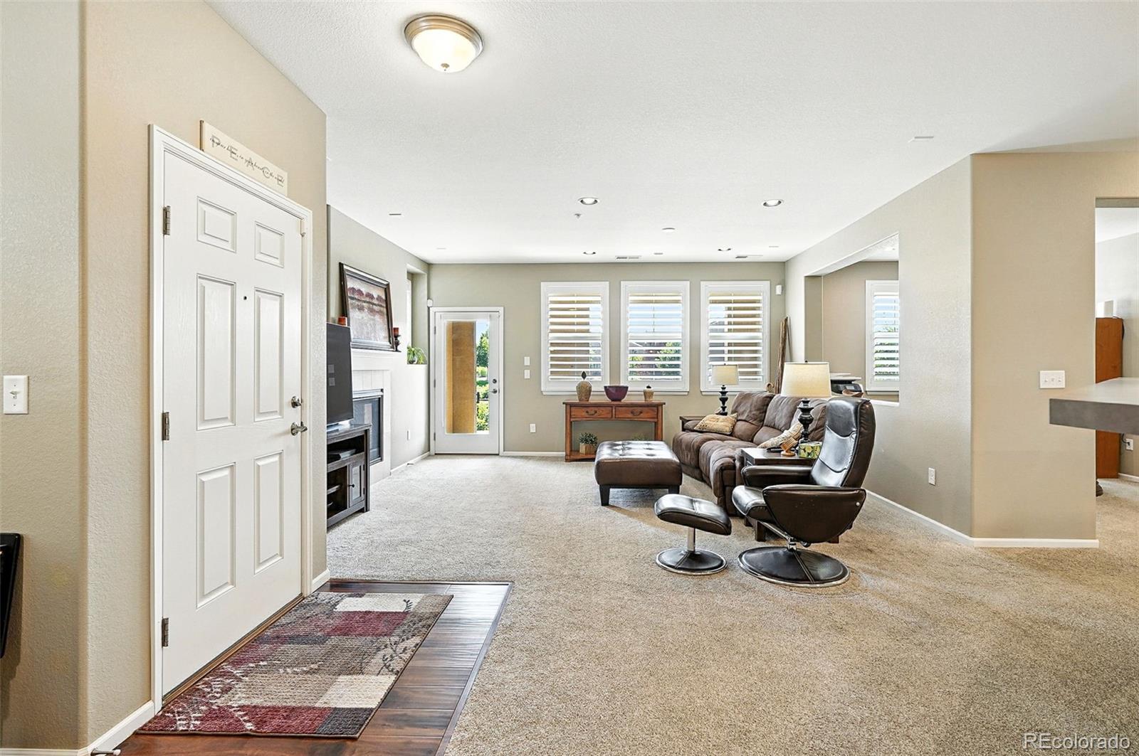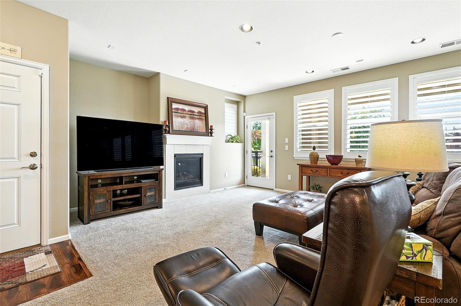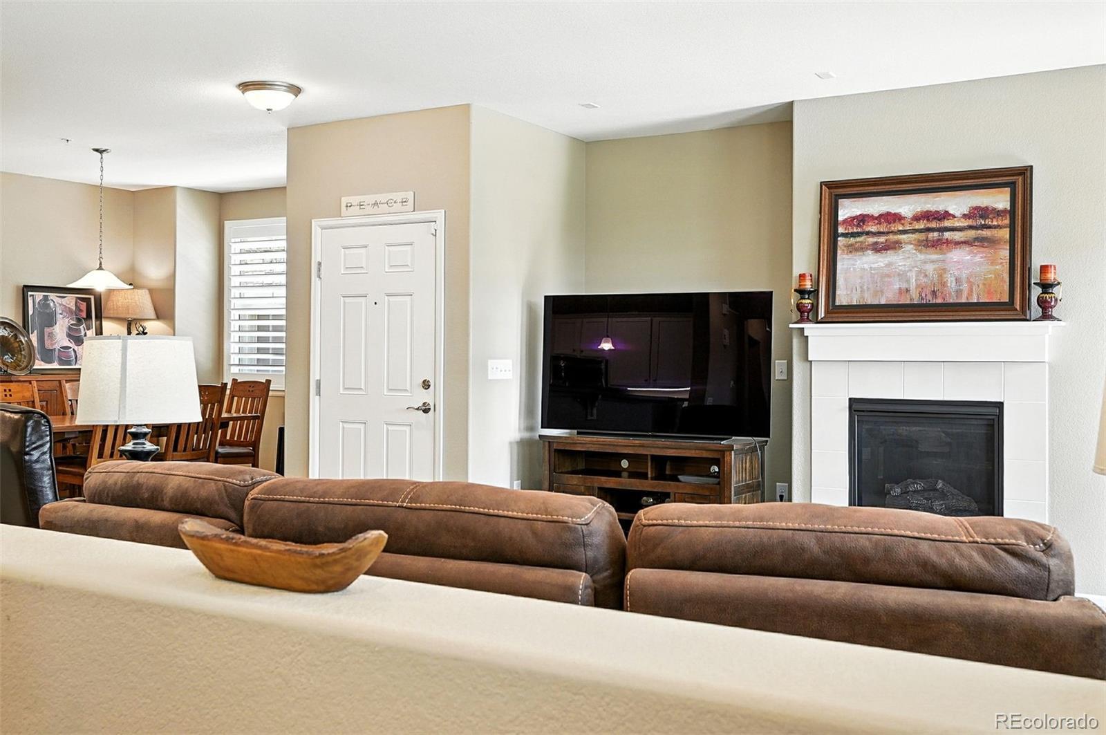Welcome to Tresana, one of Highlands Ranch’s most desirable communities! This rare main-floor end unit offers effortless living with no stairs, an attached two-car garage, and a private west-facing patio with mountain views and stunning Colorado sunsets. Inside, the open floor plan features wood floors, custom louvered shutters, and a cozy gas fireplace. The kitchen combines style and function with stainless steel appliances, induction cooktop, under cabinet lighting, soft-close cabinets, and a central island perfect for gatherings. A versatile flex space works well as a home office, hobby room, or potential third bedroom. Plus, ALL of the furniture is negotiable!! The spacious primary suite is a retreat with vaulted ceilings, a walk-in closet with built-ins, and an ensuite bath with double sinks, granite counters, soaking tub, and walk-in shower. A comfortable second bedroom and full guest bath provide flexibility, while the laundry closet (washer & dryer included) adds convenience. Tresana delivers a true lock-and-leave lifestyle with HOA covering exterior maintenance and snow removal, plus resort-style amenities: a pool overlooking the greenbelt, community piazza with social events, and access to all four Highlands Ranch rec centers with tennis, pickleball, fitness, and trails. Walk to Starbucks, King Soopers, shops, and dining—or hop on C-470 for an easy commute or weekend mountain getaway. Don’t miss this opportunity to own a home in a vibrant community where every day feels like Colorado living at its best!