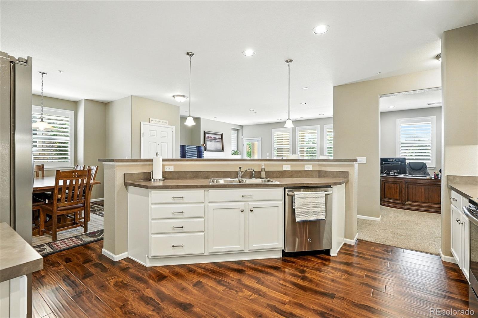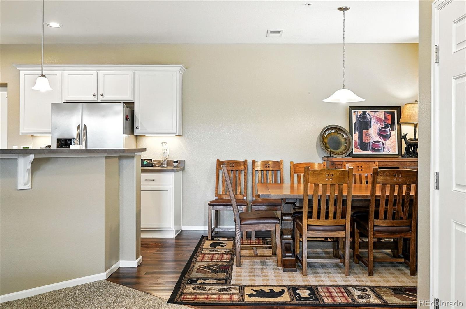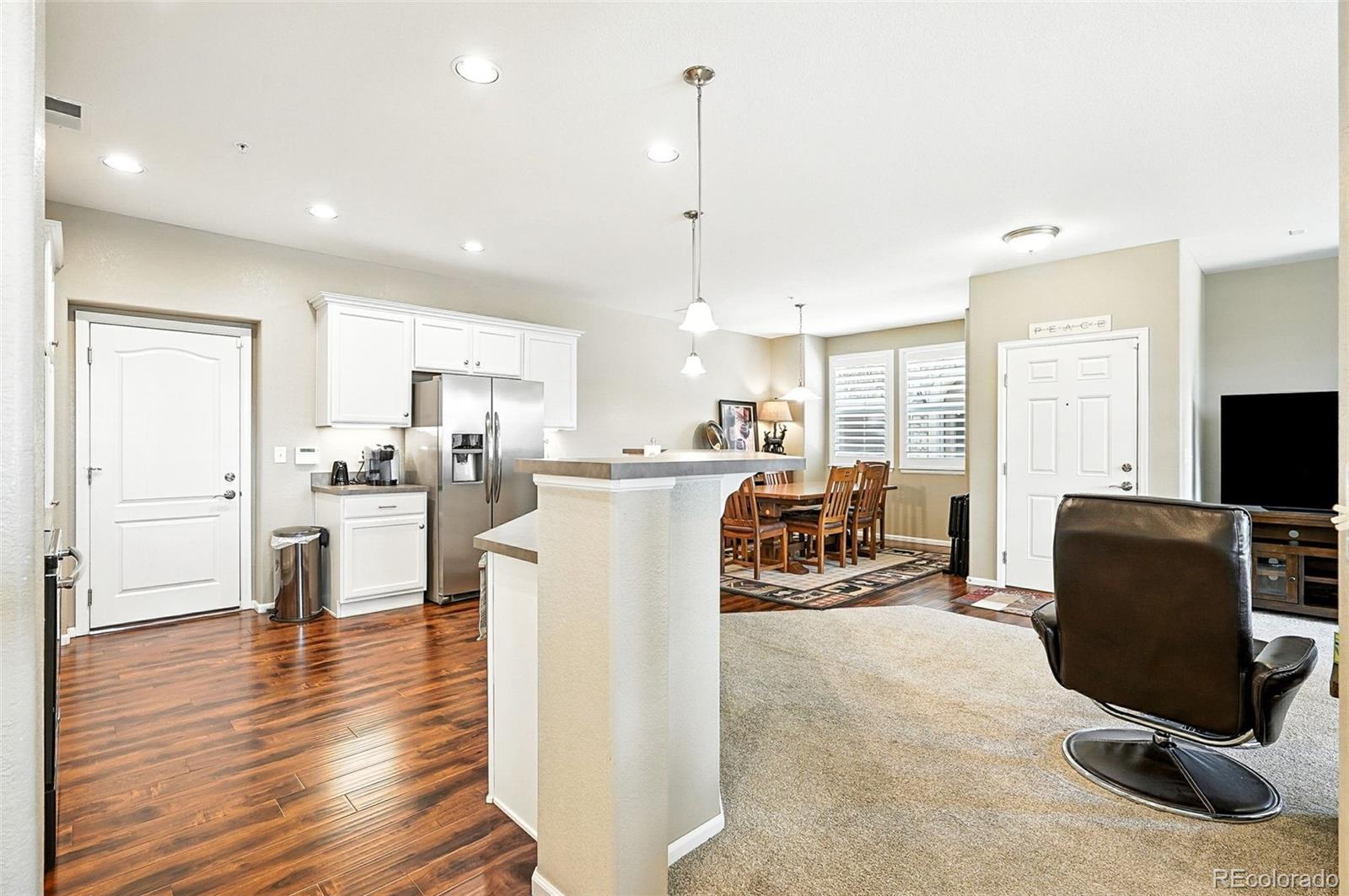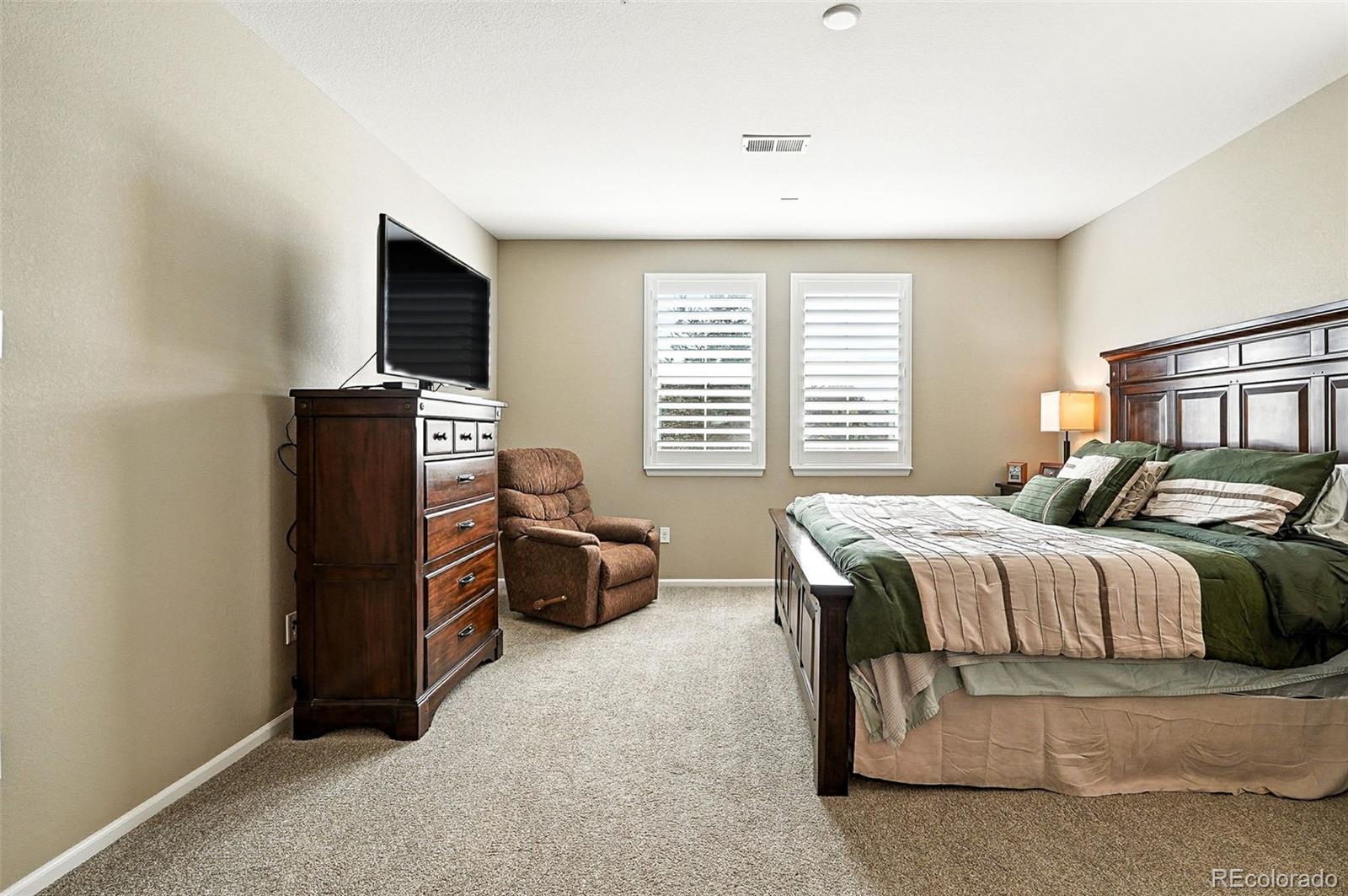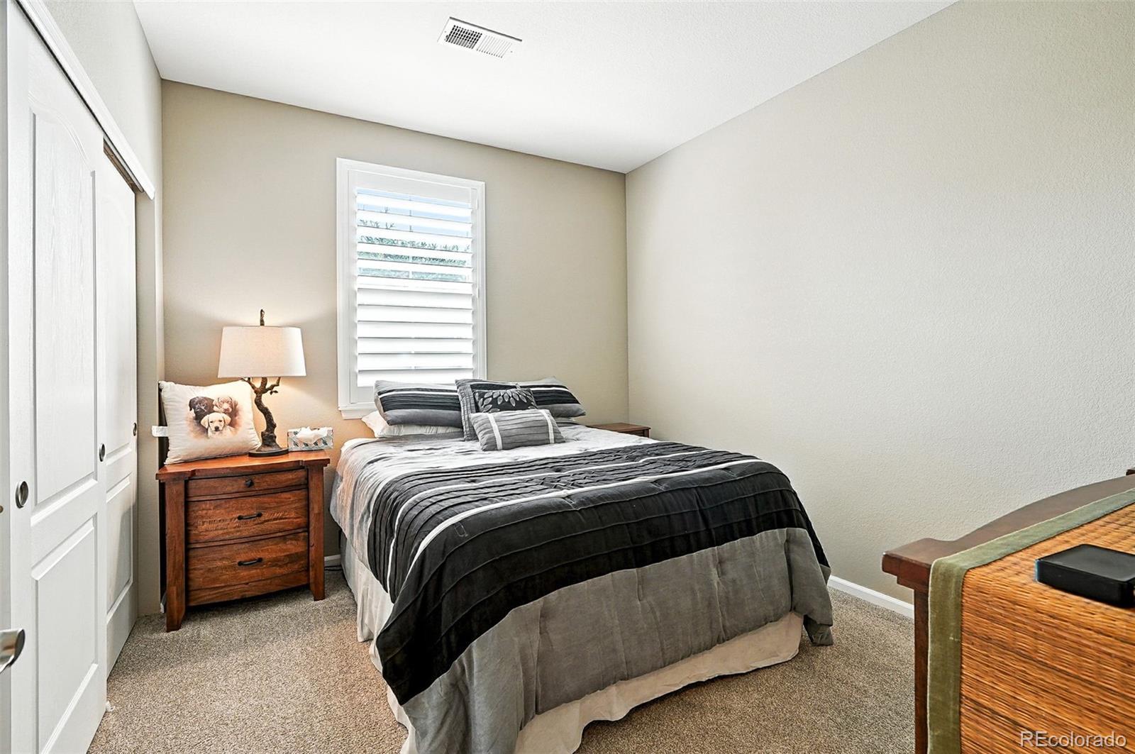 Welcome to Tresana, one of Highlands Ranch’s most desirable communities! This rare main-floor end unit offers effortless living with no stairs, an attached two-car garage, and a private west-facing patio with mountain views and stunning Colorado sunsets. Inside, the open floor plan features wood floors, custom louvered shutters, and a cozy gas fireplace. The kitchen combines style and function with stainless steel appliances, induction cooktop, under cabinet lighting, soft-close cabinets, and a central island perfect for gatherings. A versatile flex space works well as a home office, hobby room, or potential third bedroom. Plus, ALL of the furniture is negotiable!! The spacious primary suite is a retreat with vaulted ceilings, a walk-in closet with built-ins, and an ensuite bath with double sinks, granite counters, soaking tub, and walk-in shower. A comfortable second bedroom and full guest bath provide flexibility, while the laundry closet (washer & dryer included) adds convenience. Tresana delivers a true lock-and-leave lifestyle with HOA covering exterior maintenance and snow removal, plus resort-style amenities: a pool overlooking the greenbelt, community piazza with social events, and access to all four Highlands Ranch rec centers with tennis, pickleball, fitness, and trails. Walk to Starbucks, King Soopers, shops, and dining—or hop on C-470 for an easy commute or weekend mountain getaway. Don’t miss this opportunity to own a home in a vibrant community where every day feels like Colorado living at its best!