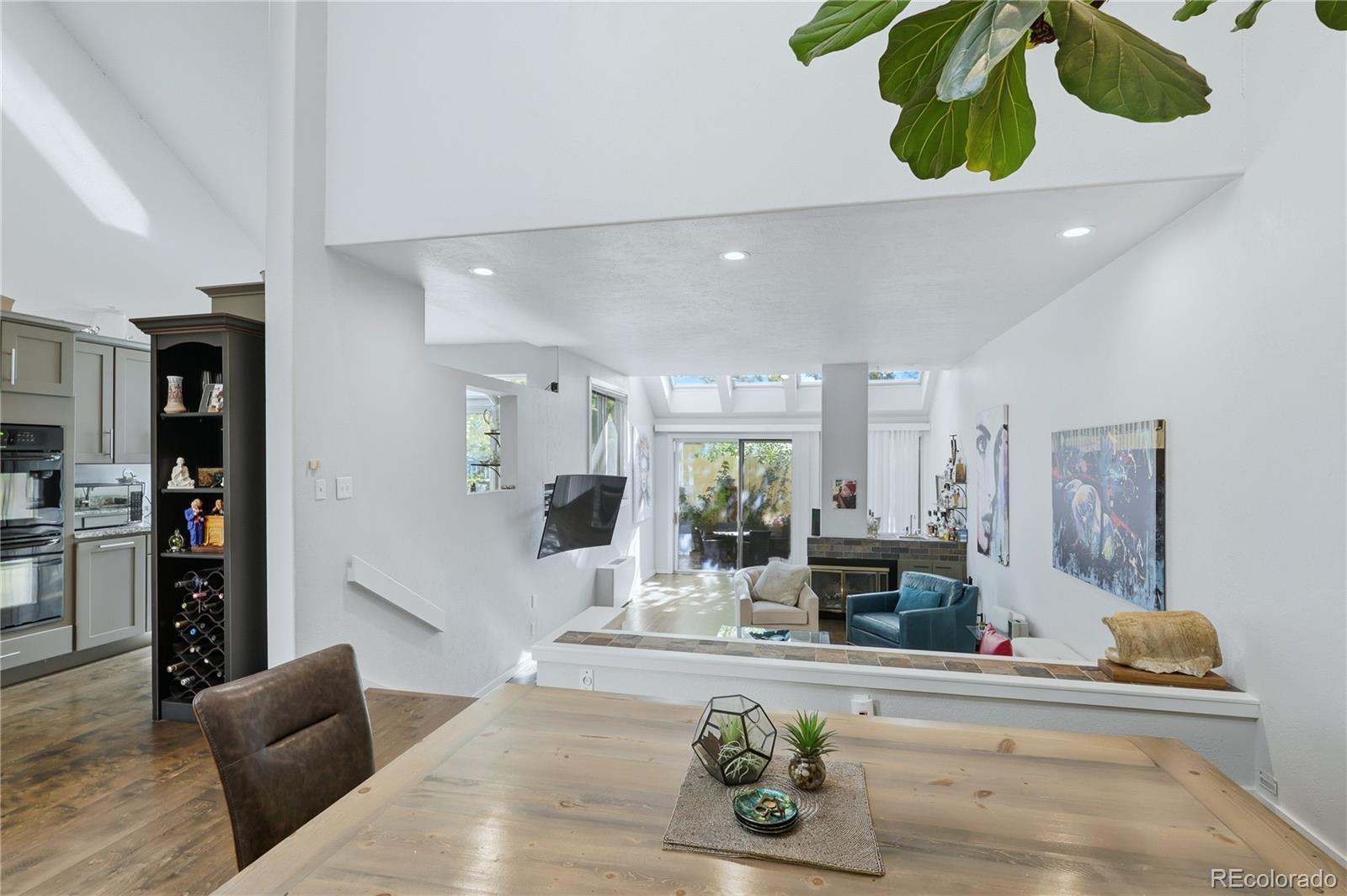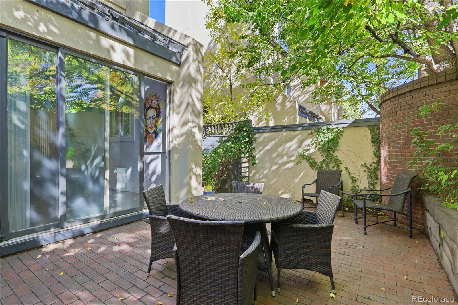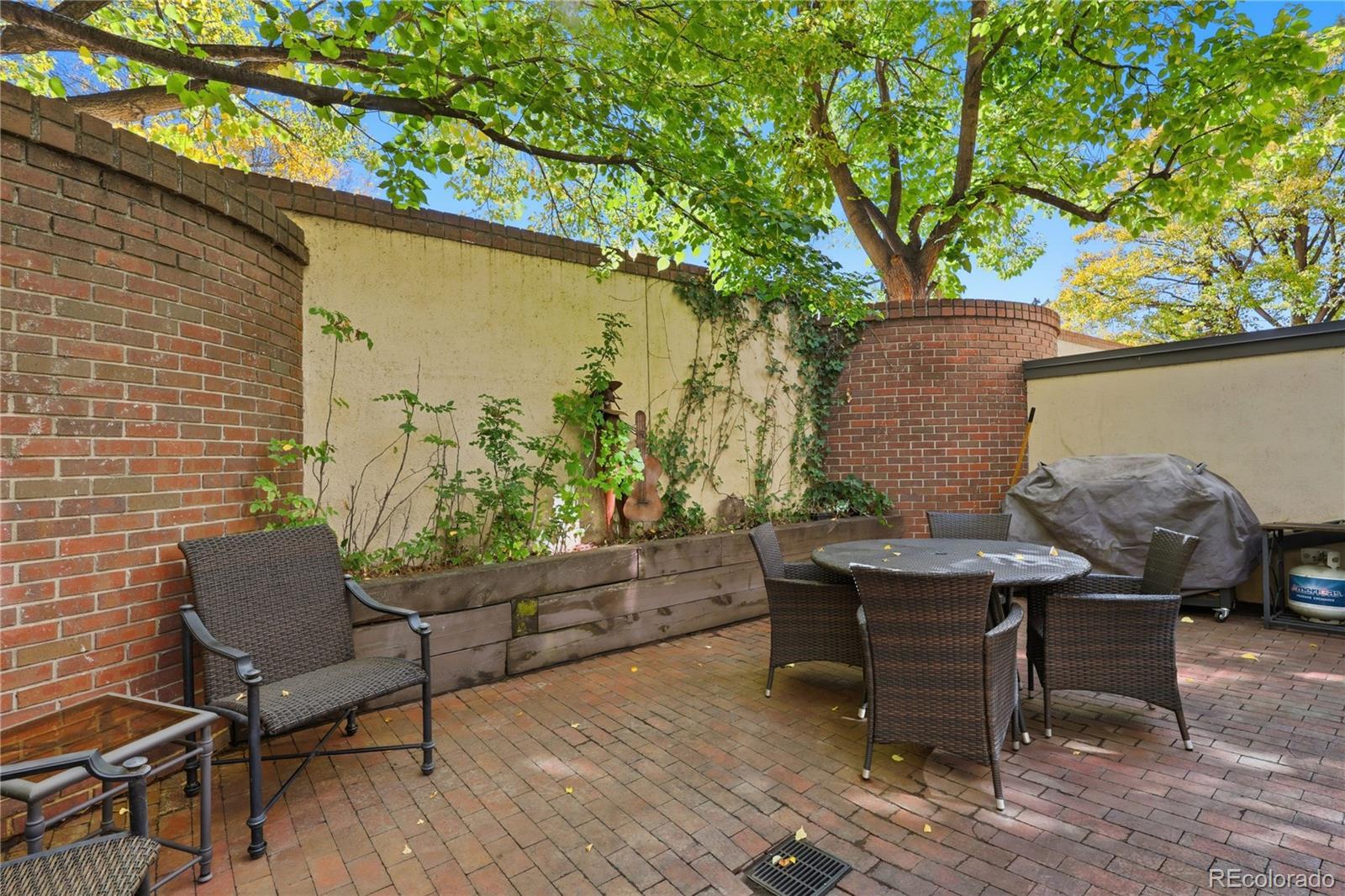 Discover this exceptional townhome in an exclusive, tranquil enclave of just six residences—a rare gem that seldom comes to market. Enter through your private first-floor entrance into this stunning, fully renovated three-level home featuring dramatic 22-foot vaulted ceilings, multiple skylights, and a spectacular open-concept living space. The thoughtfully designed floor plan maximizes every square foot while creating an impressive sense of grandeur and seamless flow throughout. Rich architectural details and sophisticated design elements transform each room into a luxurious retreat, offering the perfect balance of serene privacy and convenient access to Denver's finest amenities. The home features its own private outdoor space, with front and rear patios ideal for outdoor cooking and dining. The property includes one garage space and one private reserved parking space, with additional community parking available on a first-come, first-served basis. The primary suite is on its own side of the home, giving it good privacy. The primary bedroom serves as your personal haven, bathed in abundant natural light and warmed by its own romantic fireplace. The spa-like ensuite bathroom features a luxurious soaking tub, creating the perfect space to unwind and rejuvenate after a long day. The two additional bedrooms have large windows with garden views and get good natural light. There's potential to earn substantial rental income from the two lower-level bedrooms. The home is less than half a mile from DU.