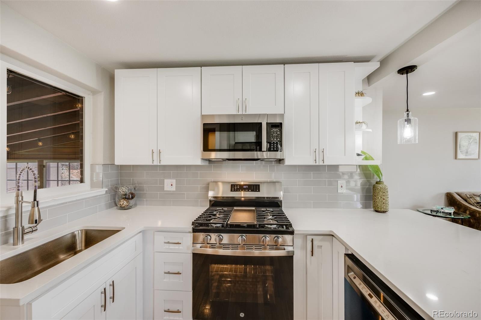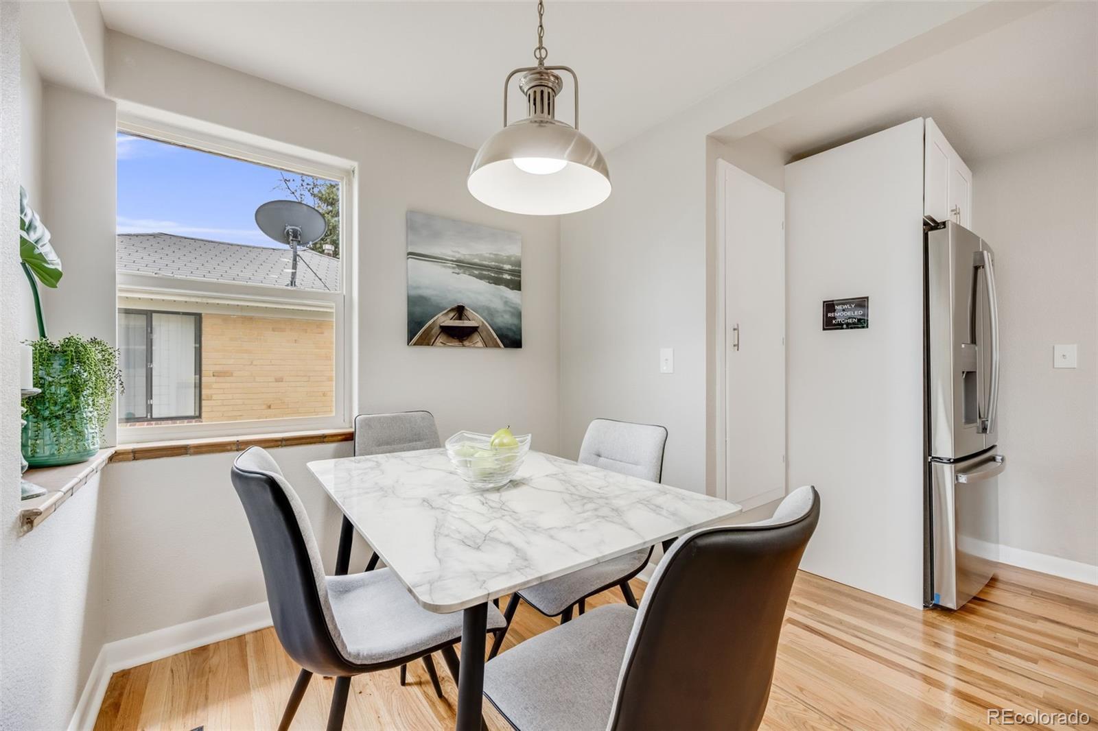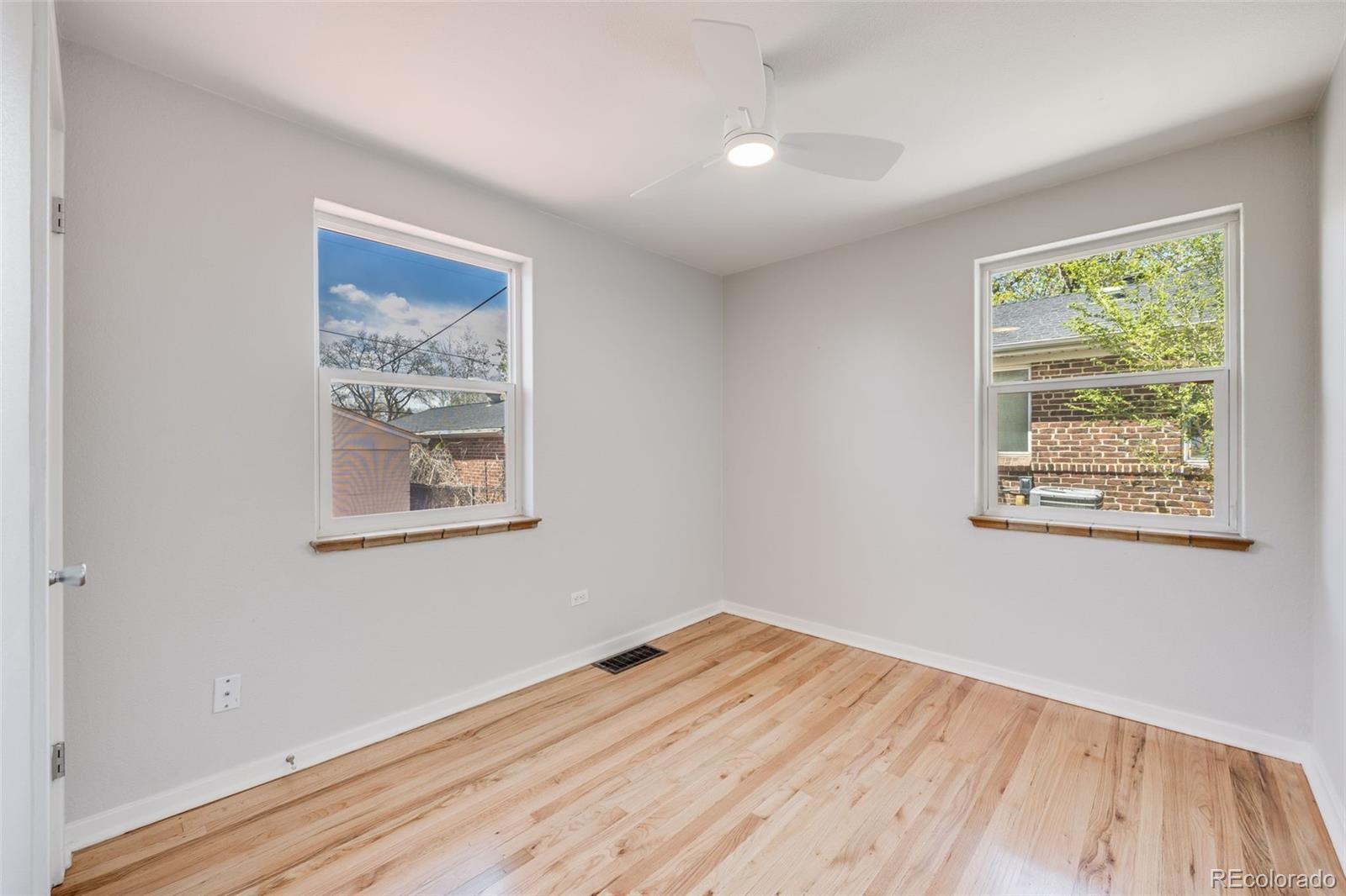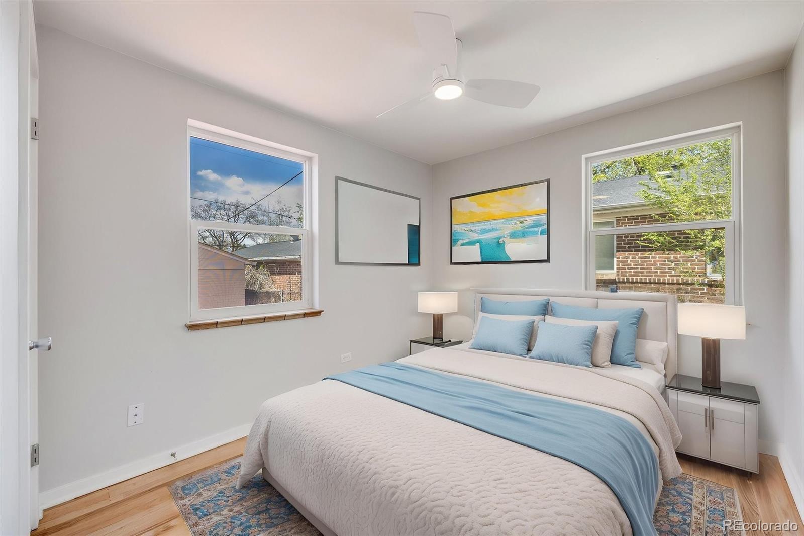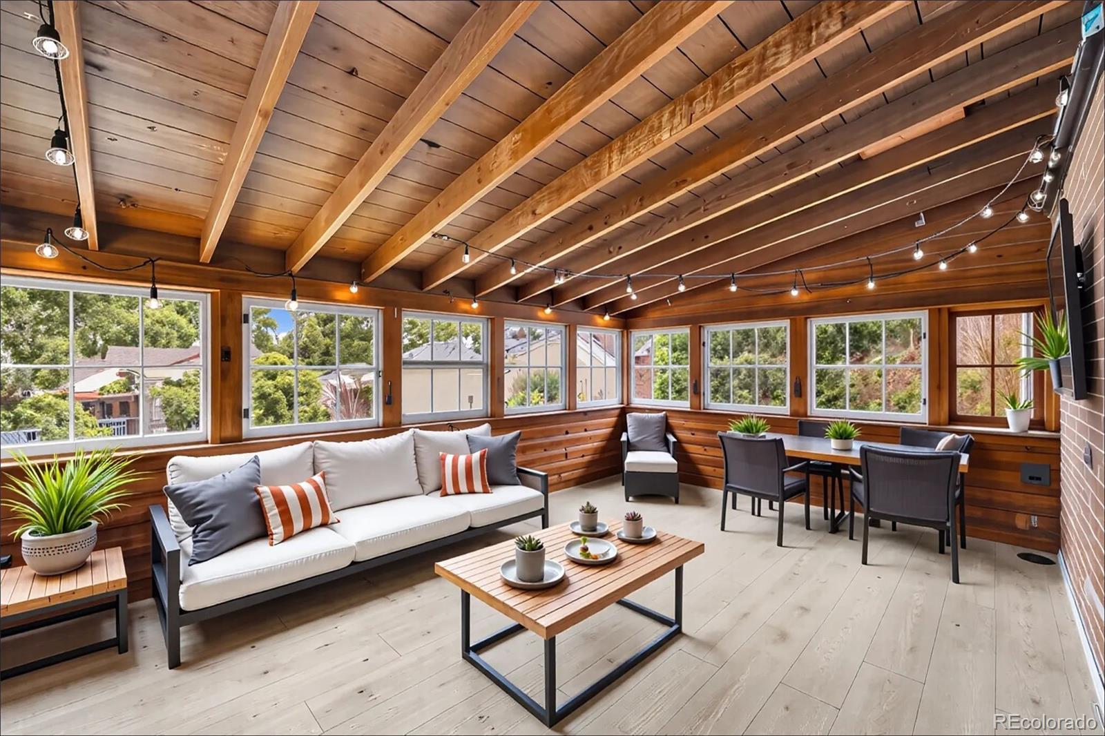 Welcome to 903 Poplar St, a beautifully updated 3-bedroom, 2-bath ranch in one of Denver’s most desirable neighborhoods. Minutes from Lowry, Central Park, and the amenities at 9th & Colorado, this home blends classic charm with a prime location. Inside you’ll find freshly refinished hardwood floors, new paint, and a bright layout designed for everyday comfort. The remodeled kitchen features quartz countertops, stainless steel appliances, and crisp white cabinetry, flowing seamlessly into the dining area and inviting living room. A standout space is the expansive sunroom, wrapped in windows with exposed beams and rich paneling that create a warm, airy feel year-round—perfect for morning coffee, entertaining, or simply unwinding. The spacious basement adds versatility with a brand-new bathroom and an upgraded bedroom featuring a newly installed egress window for safety and natural light. The second basement space offers endless options for a workshop, art studio, playroom, or storage. Major updates include a new roof, baseboard heater, water heater, newer furnace, WiFi-enabled sprinkler system, and in 2025, the replacement of the copper water line from the city to the home, sewer line, new landscaping, and kitchen appliances. Outside, the fully fenced backyard offers mature trees, a comfortable patio for grilling, and plenty of room to relax or play. A detached garage provides added storage and convenience. With easy access to trails, parks, shopping, restaurants, and major roadways, this home is move-in ready and a rare find that combines comfort, style, and location. Come check it out today!