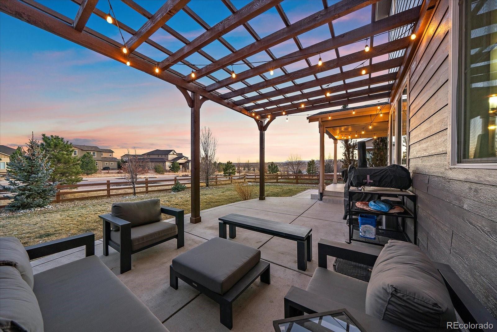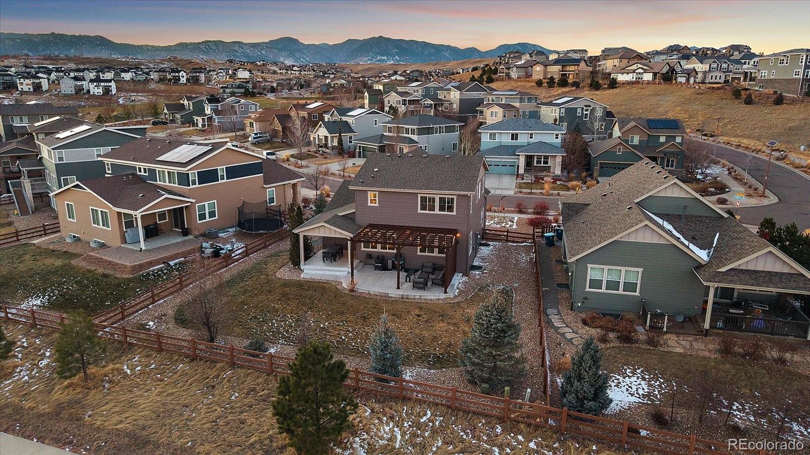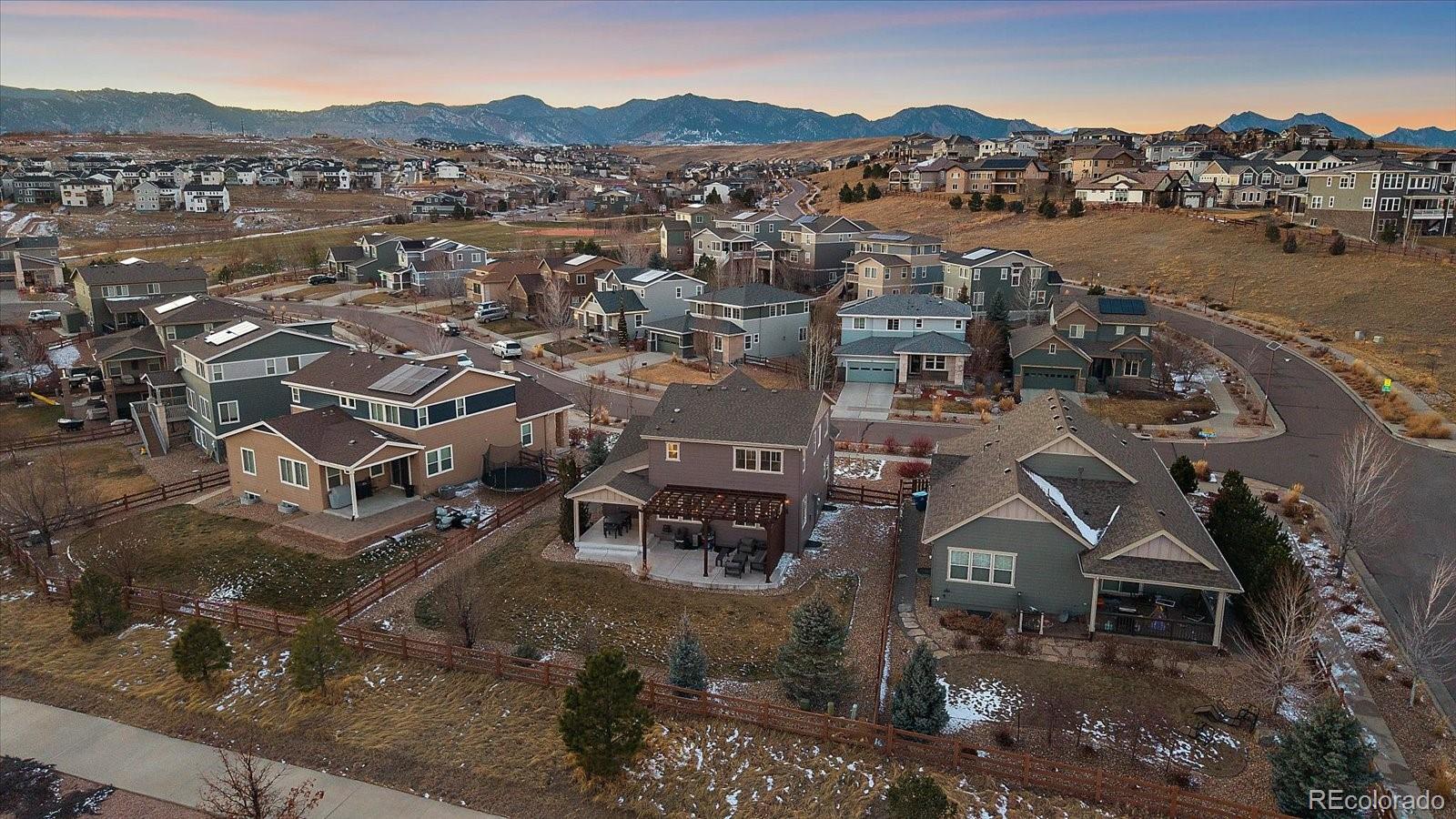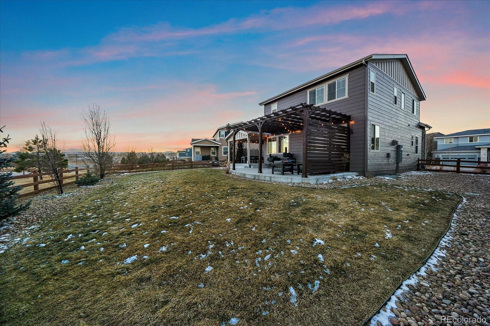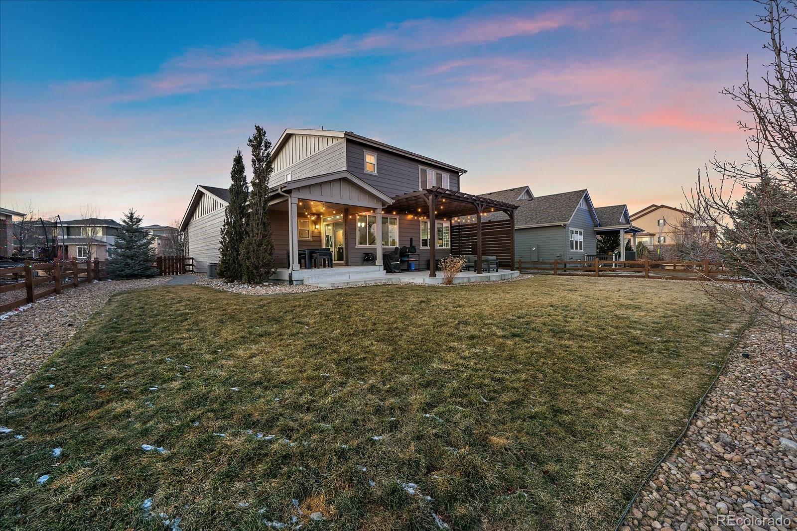 Welcome to your dream home in the picturesque Candelas community, where refined design meets effortless living. This beautifully appointed and newly painted two-story residence offers a thoughtful balance of modern luxury and everyday comfort, featuring three bedrooms, three bathrooms, and a host of well-curated spaces. Upon entry, you are greeted by a sophisticated main-level office—ideal for today’s work-from-home lifestyle. The open-concept floor plan unfolds into a warm and inviting living area that flows seamlessly into the well-designed kitchen. Here, a generous center island anchors the space, perfect for entertaining, casual dining, and meal preparation, while the walk-in pantry provides exceptional storage. Upstairs, you will find three spacious bedrooms. The secondary bedrooms are served by a full hall bath, while the primary suite offers a serene retreat. This private haven features a spa-inspired ensuite with an oversized shower and a large walk-in closet, creating a true sense of relaxation and comfort. The unfinished basement, complete with high ceilings, presents endless possibilities—whether you envision additional living space, a home gym, or a media room tailored to your needs. An oversized two-car garage with newly installed upgraded garage door that ensures ample room for parking and storage. Step outside to an expansive backyard designed for both entertaining and unwinding. Enjoy the covered patio and extended outdoor living area with a charming pergola—perfect for al fresco dining, hosting guests, or savoring a quiet morning coffee. Ideally located just steps from a park, pool, and fitness center, this home offers abundant recreational opportunities. Three Creeks School, shopping, and dining are conveniently nearby, and easy access to major highways makes commuting and weekend adventures effortless. This exceptional home truly captures the best of Candelas living.