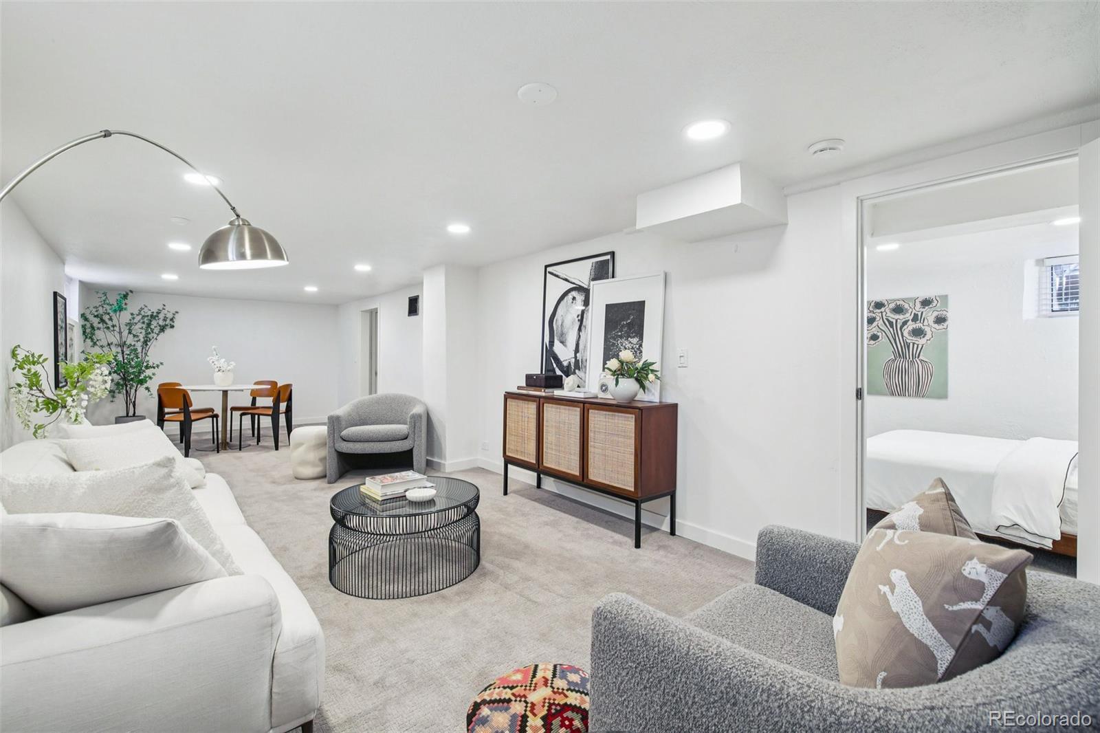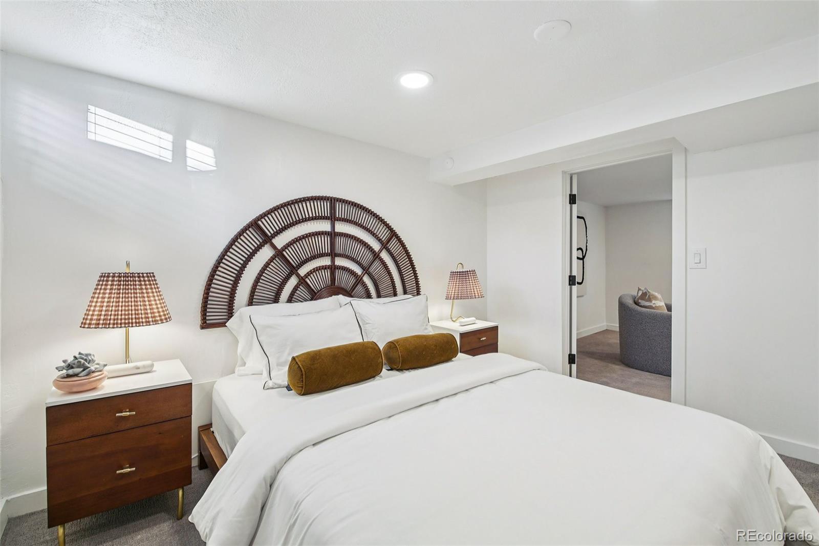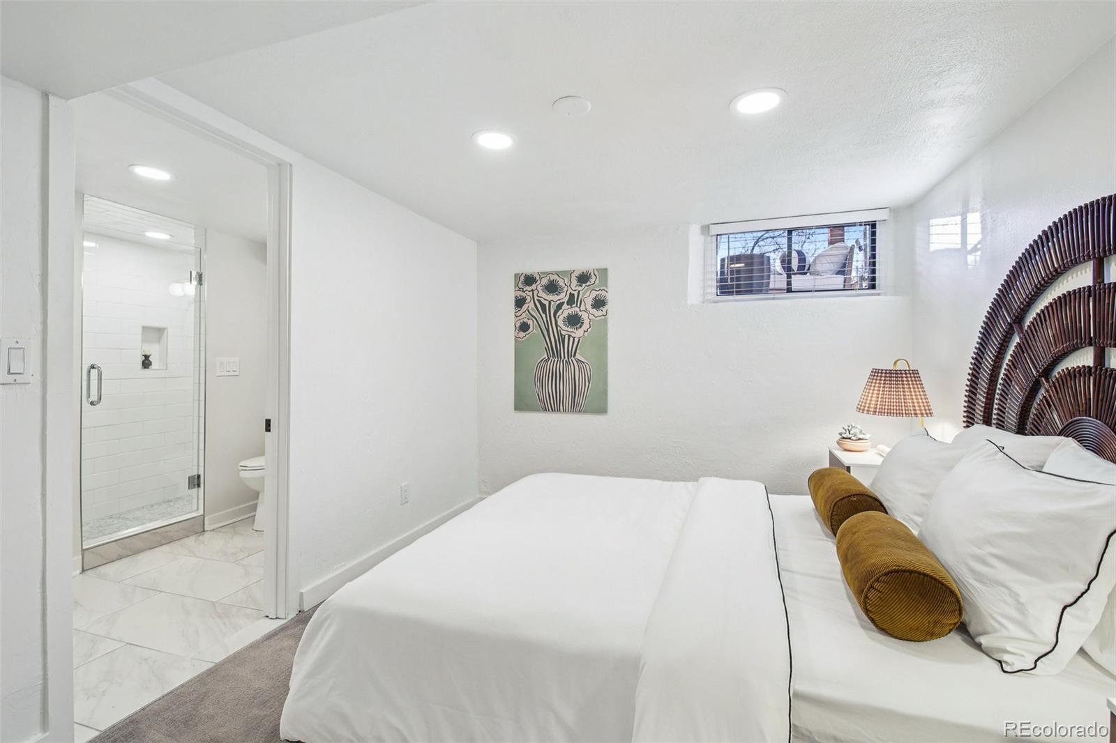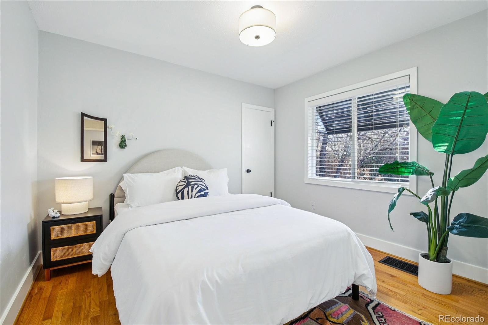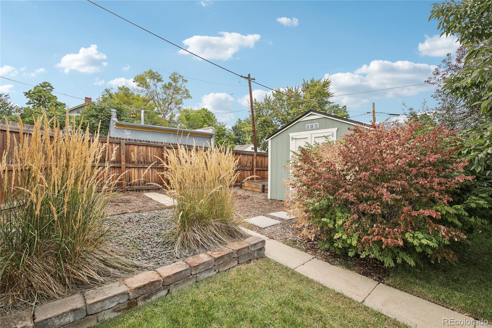 Welcome to 4451 Vallejo St! This charming 3 bedroom, 2 bathroom brick bungalow sits on a corner lot and has been thoughtfully updated from top to bottom. It is ideally located in the sought-after Sunnyside neighborhood right in the heart of Denver's best. Just a few blocks away, you'll find local favorites like Chaffee Park, The Radiator Cafe, Monkey Barrel Bar, Aviano Coffee, The Wolf's Tailor, Pochitos Tortillas, Bacon Social House, Sunny's, Better Buzz Yoga...the list goes on. Step inside to discover an open layout with bright windows and beautifully preserved natural hardwood flooring. From the entrance, the entire living space flows into the updated kitchen featuring tuxedo cabinetry, quartz countertops, and stainless steel appliances. Both bathrooms have been totally remodeled, showcasing modern finishes mixed with timeless vintage fixtures. Enjoy many of the home's major systems being taken care of - new roof replaced in 2017, AC unit replaced in 2020, water heater replaced in 2020, new HE washer and dryer in 2020, new carpet in 2019, and hardwood floors refinished throughout in 2019. Both upstairs bedrooms are spacious with ample closet space. The finished basement offers a bonus living area, along with a third bedroom and 3/4 en suite bathroom, perfect as a private primary suite or luxurious guest space. Moving to the professionally-landscaped backyard (that re-blooms every year with zero maintenance required and a 12 zone sprinkler + drip system already installed!), you'll find a covered patio, designated dining area, custom garden boxes, and an oversized shed to cater to all your gardening needs. This property features a detached 1 car garage, along with ample off-street parking spaces always available - making it both accessible and convenient. Plus, this home is zoned for an ADU with alley access, offering even more possibilities for your lifestyle or investment. Don’t miss out on this beautiful home that balances modern amenities with a prime location!