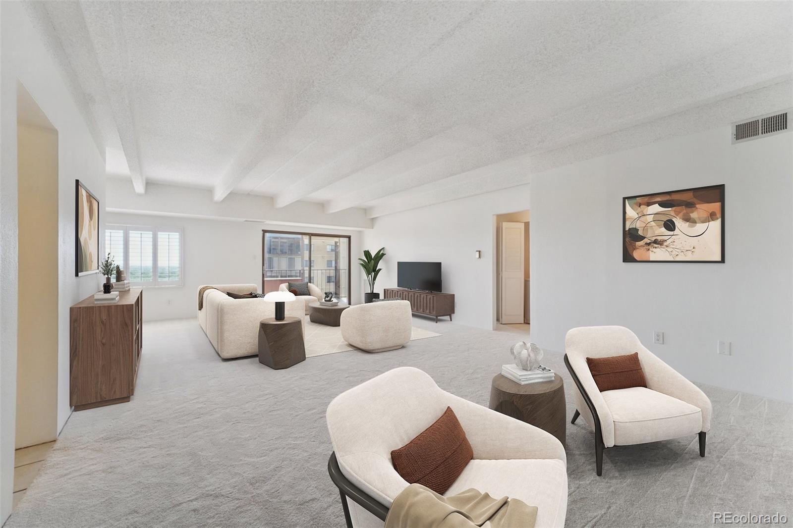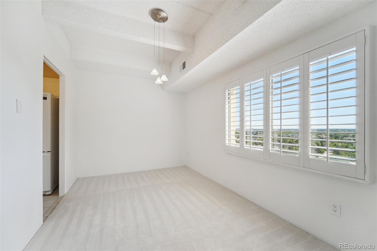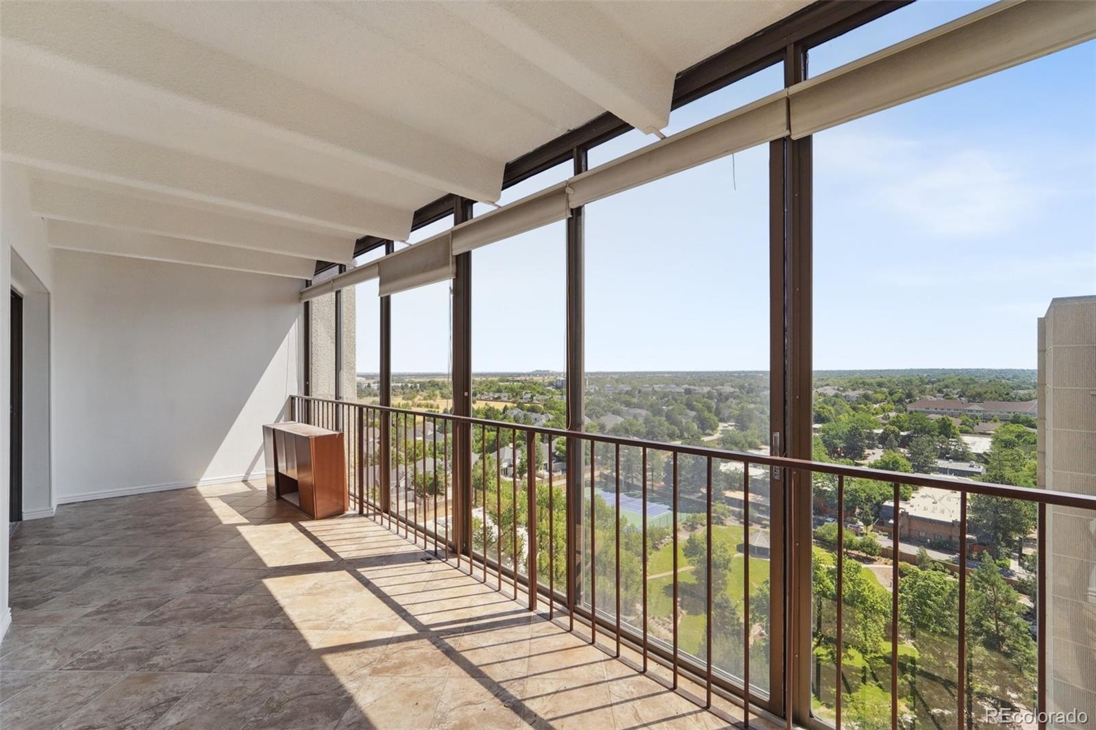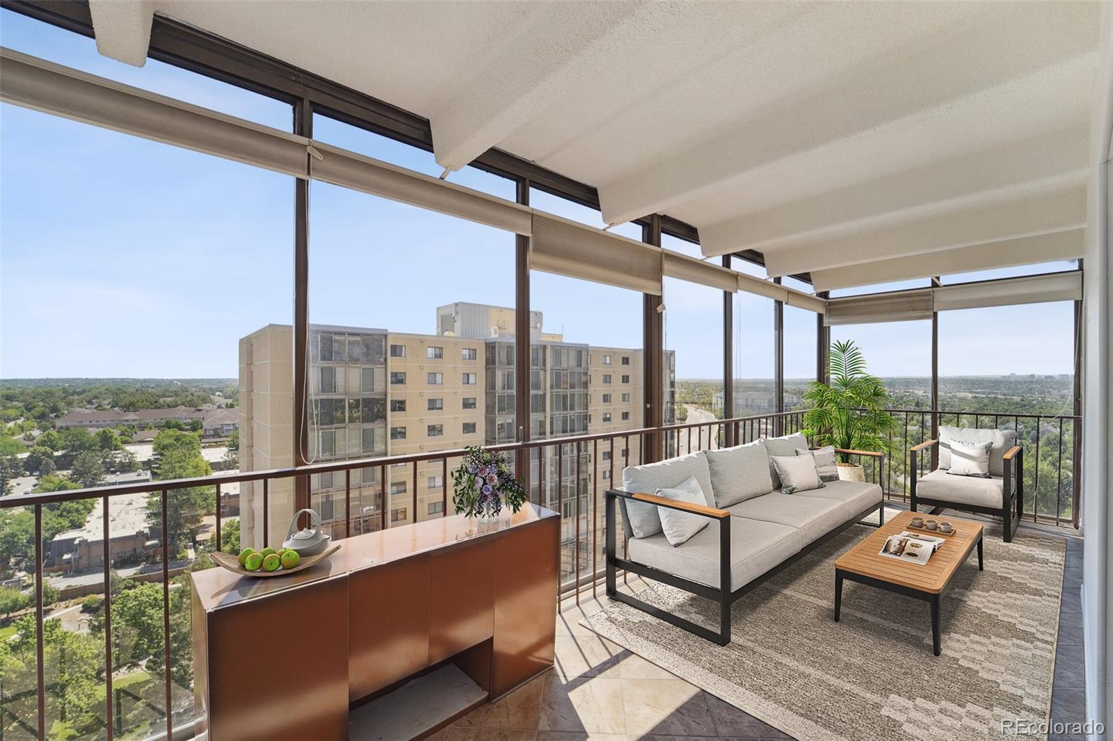 INCREDIBLE VIEWS: A light and bright condominium on the 15th floor in an ideal southeast Denver location. Check out the views from the covered/enclosed patio. Bonus room with a wet bar along with two large bedrooms. Primary bedroom has a master bathroom. This unit comes with 2 parking spaces, one in covered parking garage and one deeded reserved surface parking space. May amenities in this building including indoor pool, clubhouse, bike storage, fitness center, tennis courts, and storage unit. Move in ready and close to shopping and trails. County square footage does not include the finished square footage of the enclosed patio and total finished square footage is 1,628 as based upon other units in the building with same floorplan.