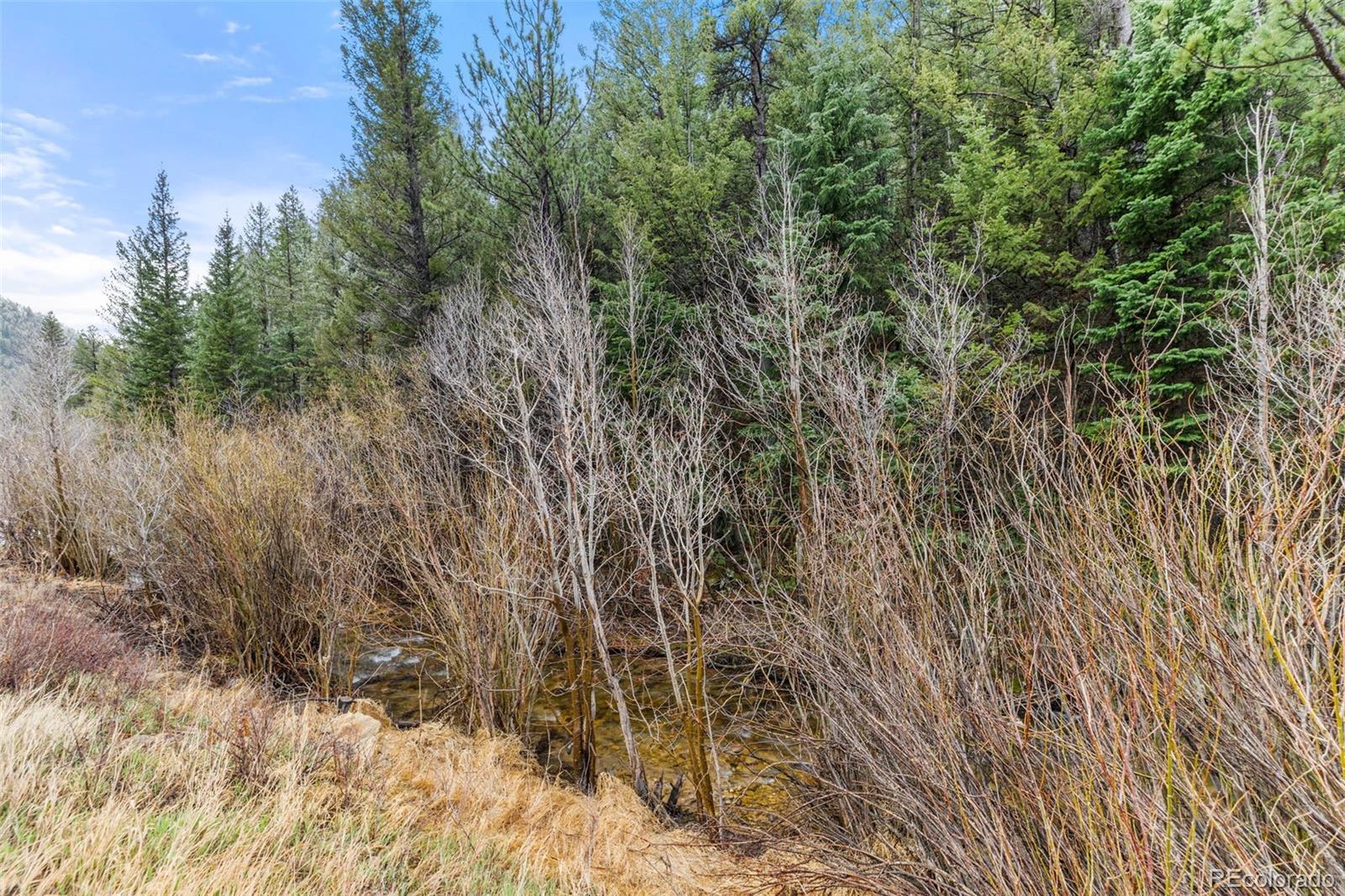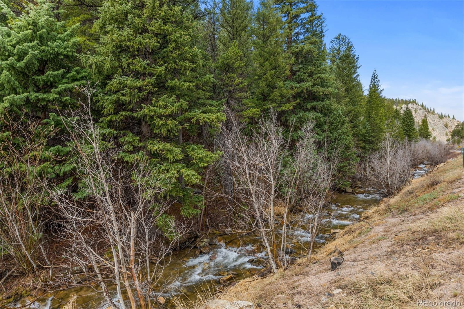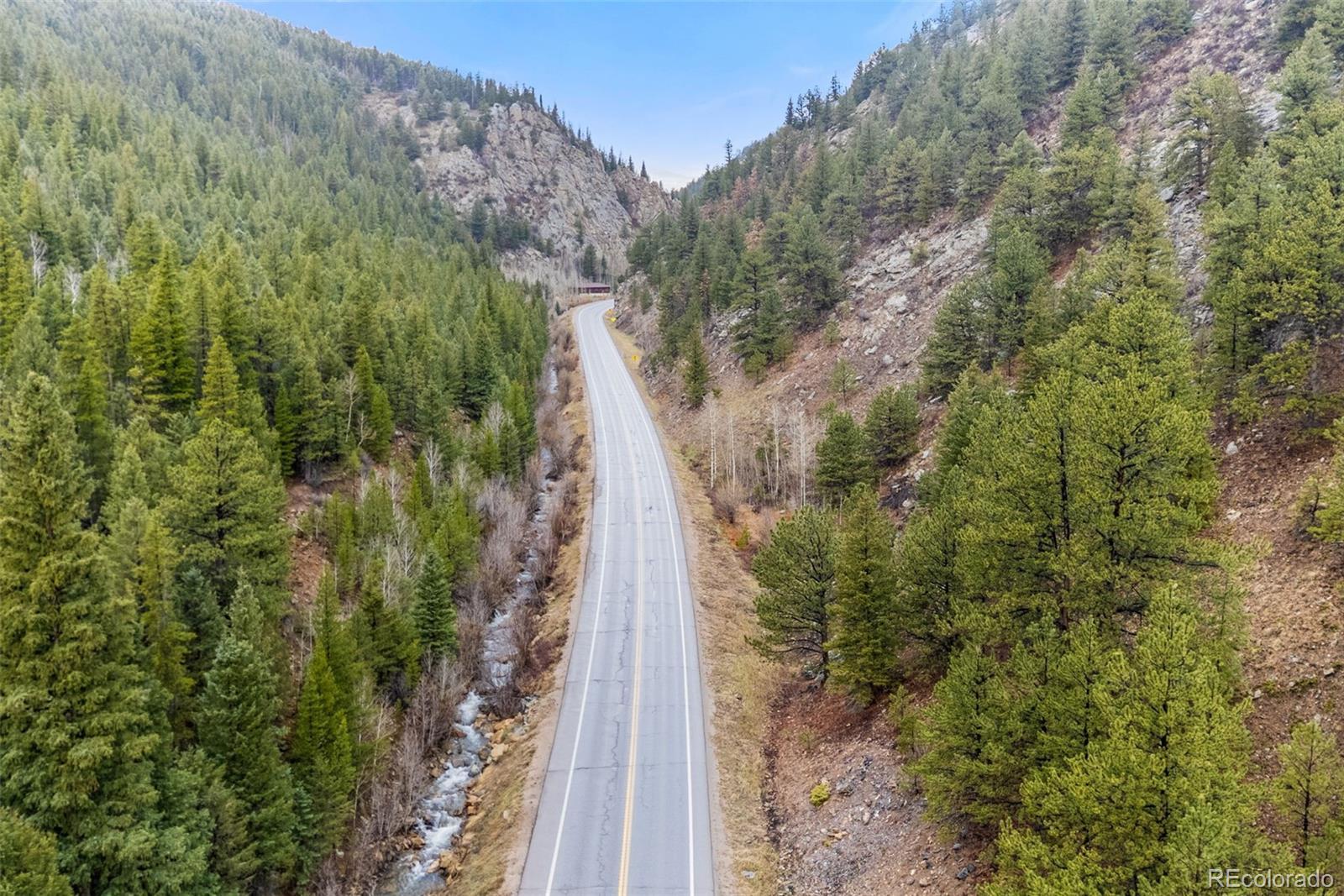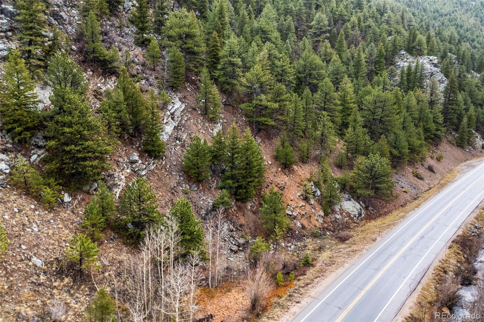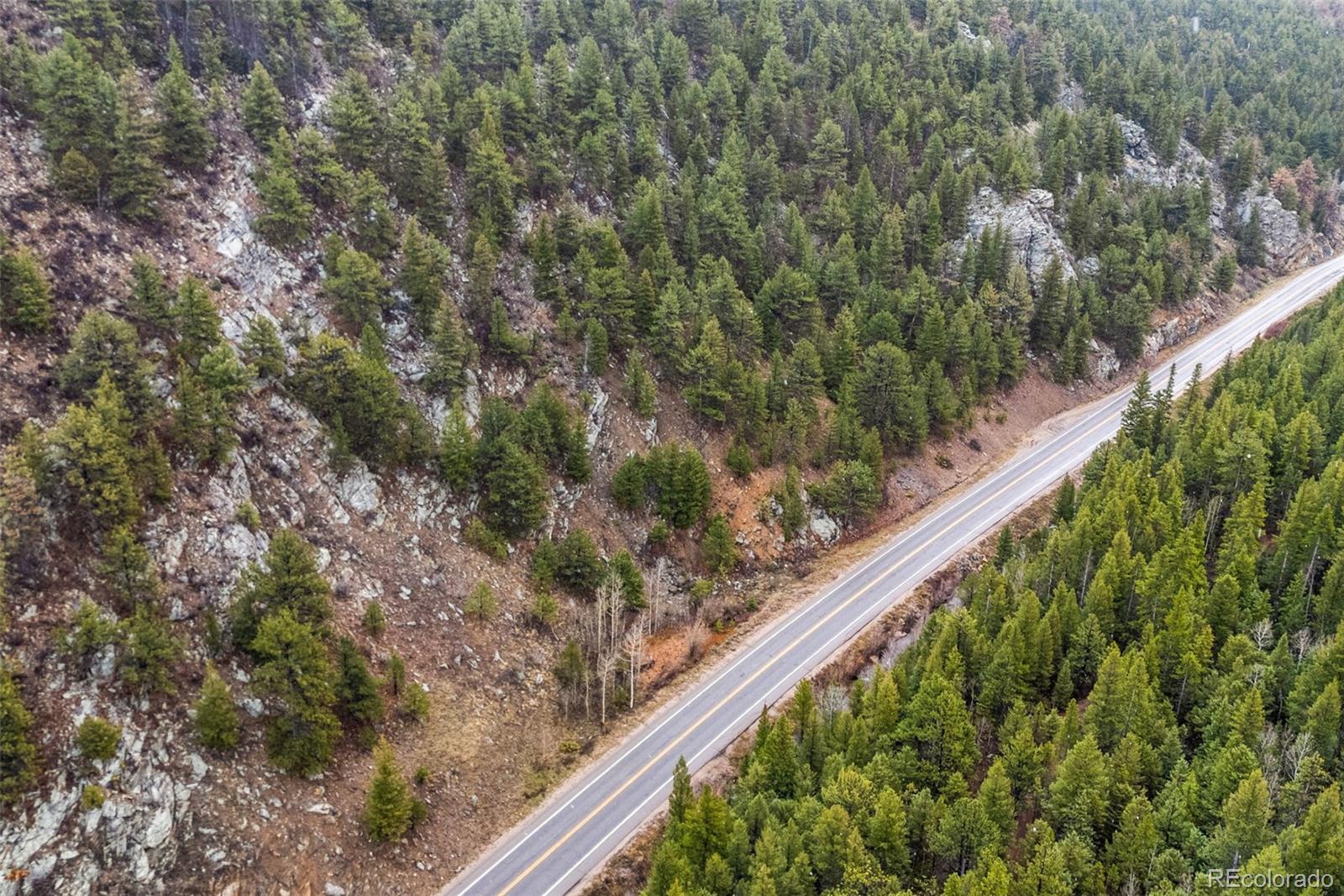 5.96 acres of mountain land located just 1 mile north of the City of Black Hawk. Two adjacent parcels intersect Colorado Highway 119 between mile markers 8.5 and 9, offering approximately 700 feet of road frontage on the north side and 275 feet on the south, a rare setup in Gilpin County. The front 2.9-acre section includes both 700 feet of frontage along the north side and 275 feet along the south, including 0.32 acres that borders local bike trails. This section has confirmed eligibility for driveway access through CDOT and now benefits from the recent completion of a public sewer line along Hwy 119, giving future owners the potential to tap into public sewer instead of installing a septic system, subject to county approval. The rear 2.875-acre floating section, positioned just beyond a narrow city-owned strip, does not currently have direct access. It offers excellent recreational value and could serve as a long-term land investment or natural extension of the front parcel. Wooded with steep-slope terrain, the land provides privacy, views, and rugged character, perfect for a private escape, off-grid possibilities, or a hold-and-develop approach. Parcels N007306 and N007307.