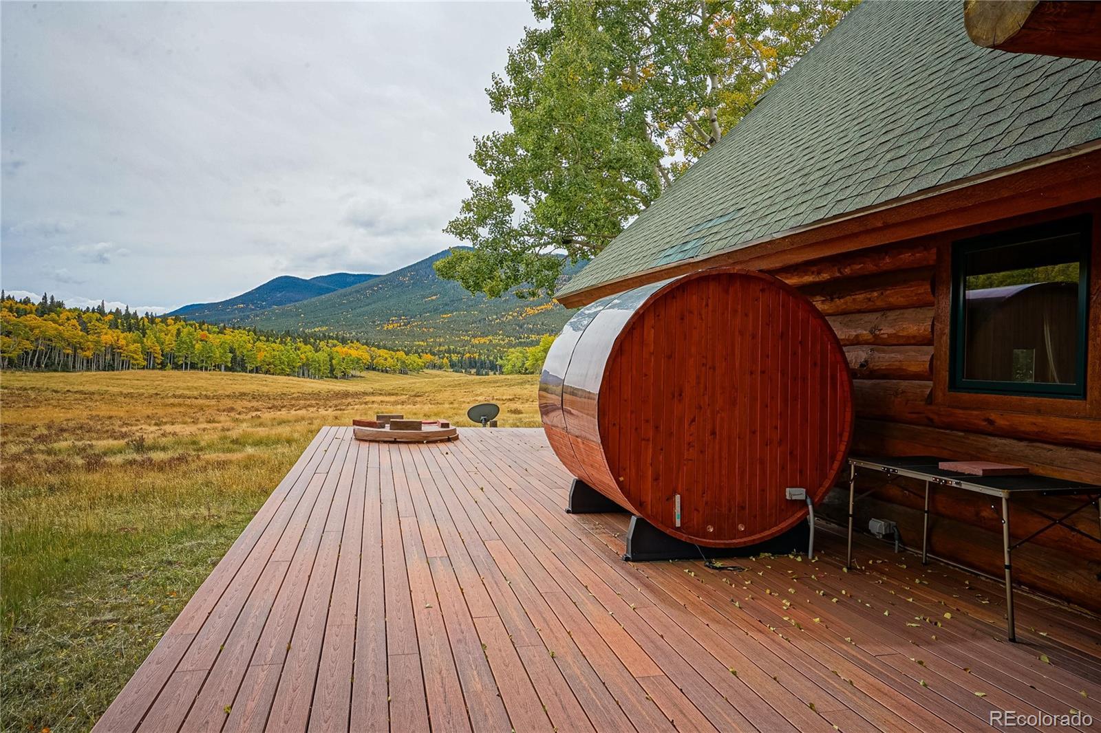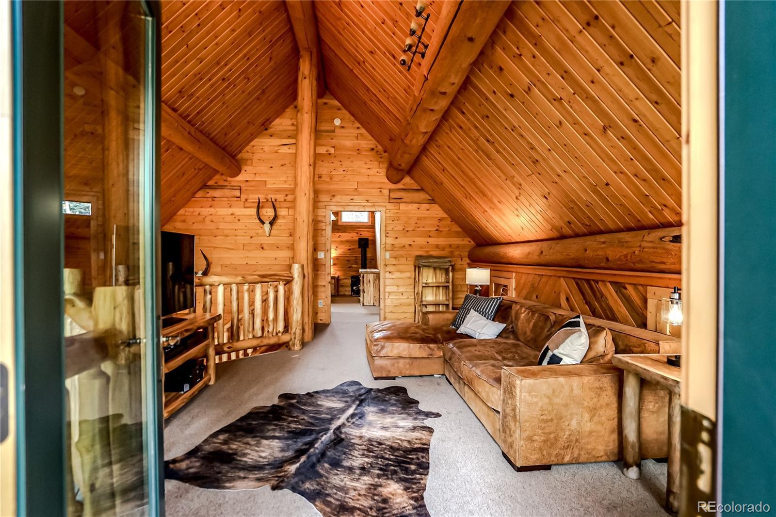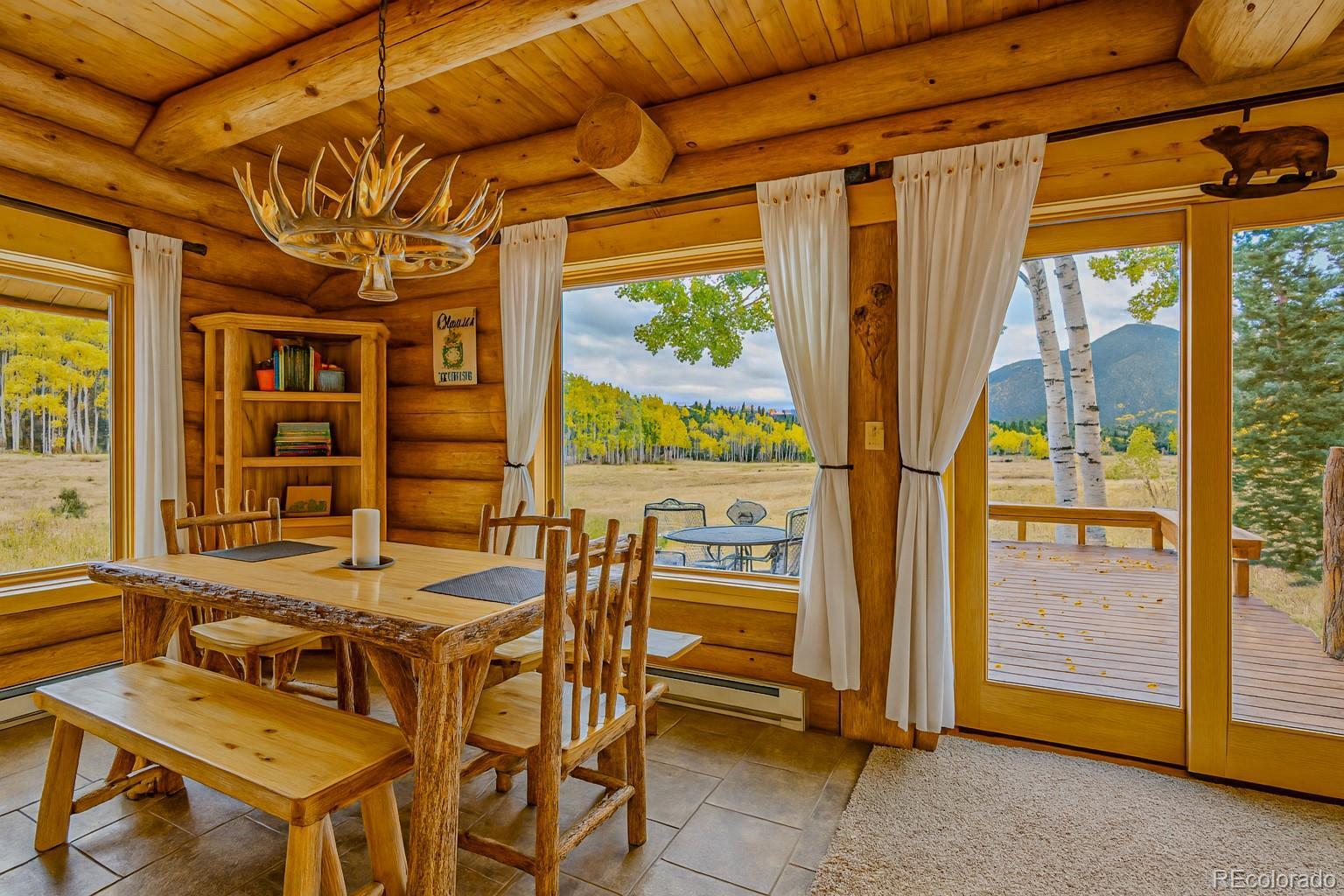 Discover the pinnacle of Colorado mountain living in this custom 2-bed, 2-bath log home offering over 2,000 sq ft of refined rustic elegance. Perfectly set among towering pines and shimmering groves of aspens, the property opens into a sweeping meadow that feels both private and grand — the kind of setting that takes your breath away each season of the year.Nestled on nearly 3 acres this home blends timeless craftsmanship with modern comfort, offering both tranquility and adventure right outside your door. Inside, you'll find soaring log-beamed ceilings, a cozy wood-burning stove, and walls of windows that flood the home with natural light while framing unforgettable views. Every window in this home captures the serene beauty of the outdoors, inviting natural light and showcasing the changing seasons.The open kitchen features stone accents, a center island, and custom cabinetry — ideal for gathering with friends and family after a day outdoors. Spacious living and dining areas flow seamlessly to an expansive deck where wildlife, starry skies, and mountain air become part of everyday living. The property features multiple outdoor spaces, including balconies, a wraparound deck with built-in seating, a tent platform and even a barrel sauna for relaxation after exploring the nearby national forest trails. With outbuildings, a greenhouse and a bonus bedroom above the garage you will have plenty of room for your mountain lifestyle, this retreat is both functional and picturesque. Here, nature is your neighbor watch wildlife roam across the meadows, breathe in the crisp mountain air, and enjoy the true meaning of Colorado living.Whether you dream of a year-round residence, a seasonal retreat, opportunity for VRBO or a mountain getaway to share with others, this home captures the essence of rustic Colorado living.