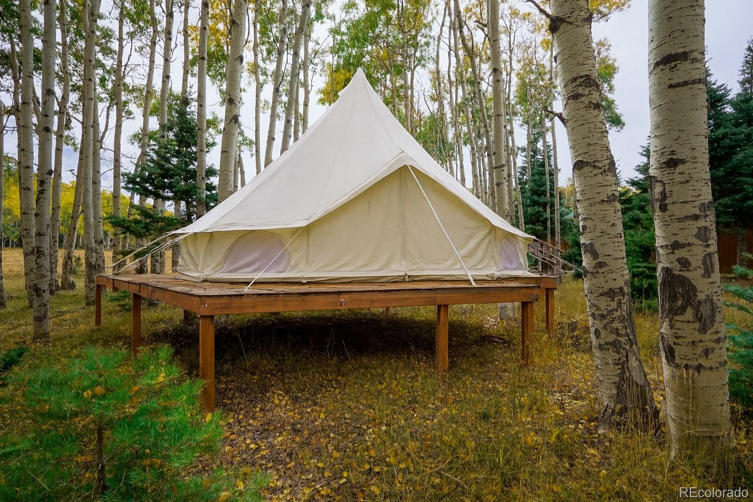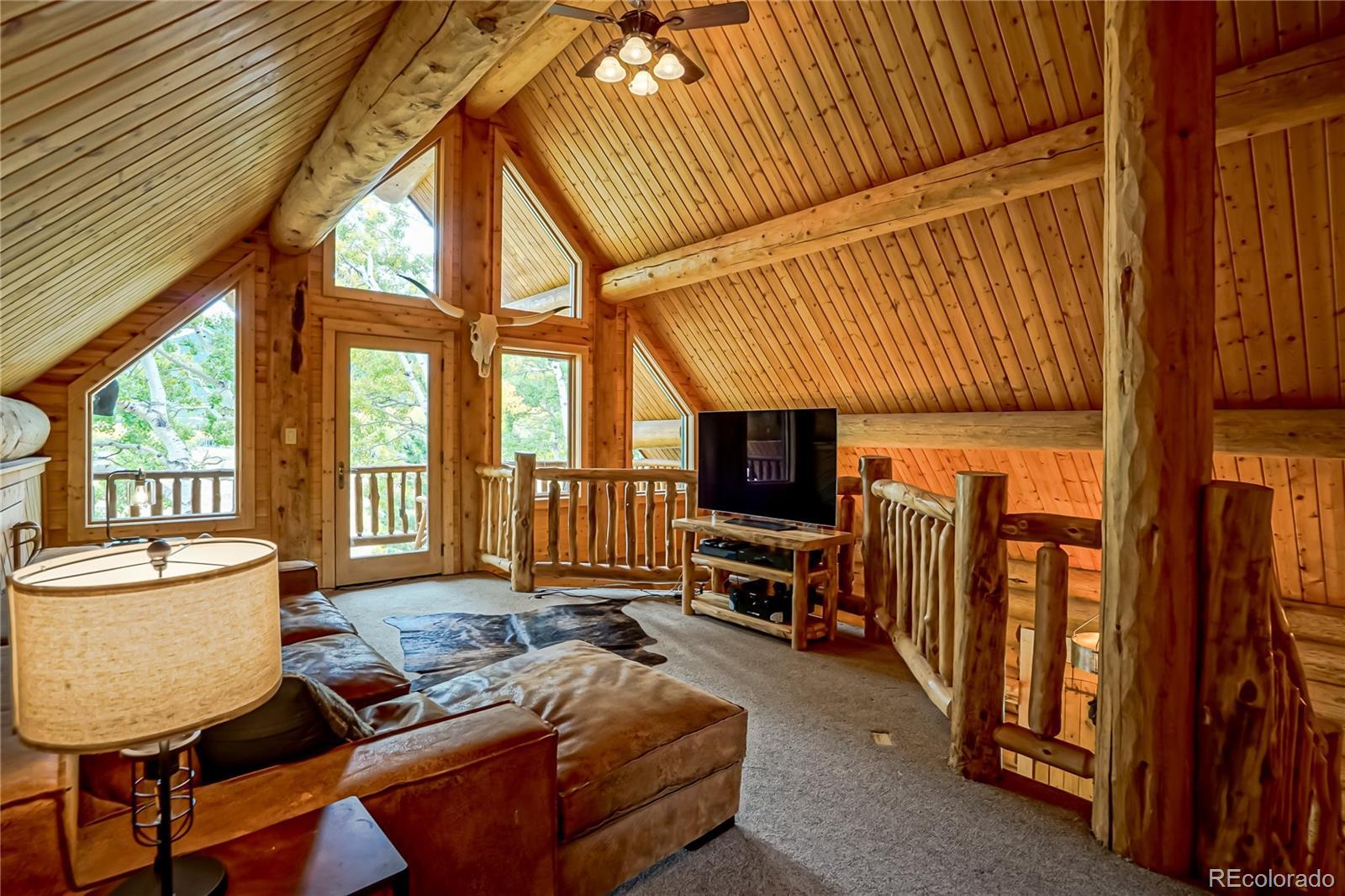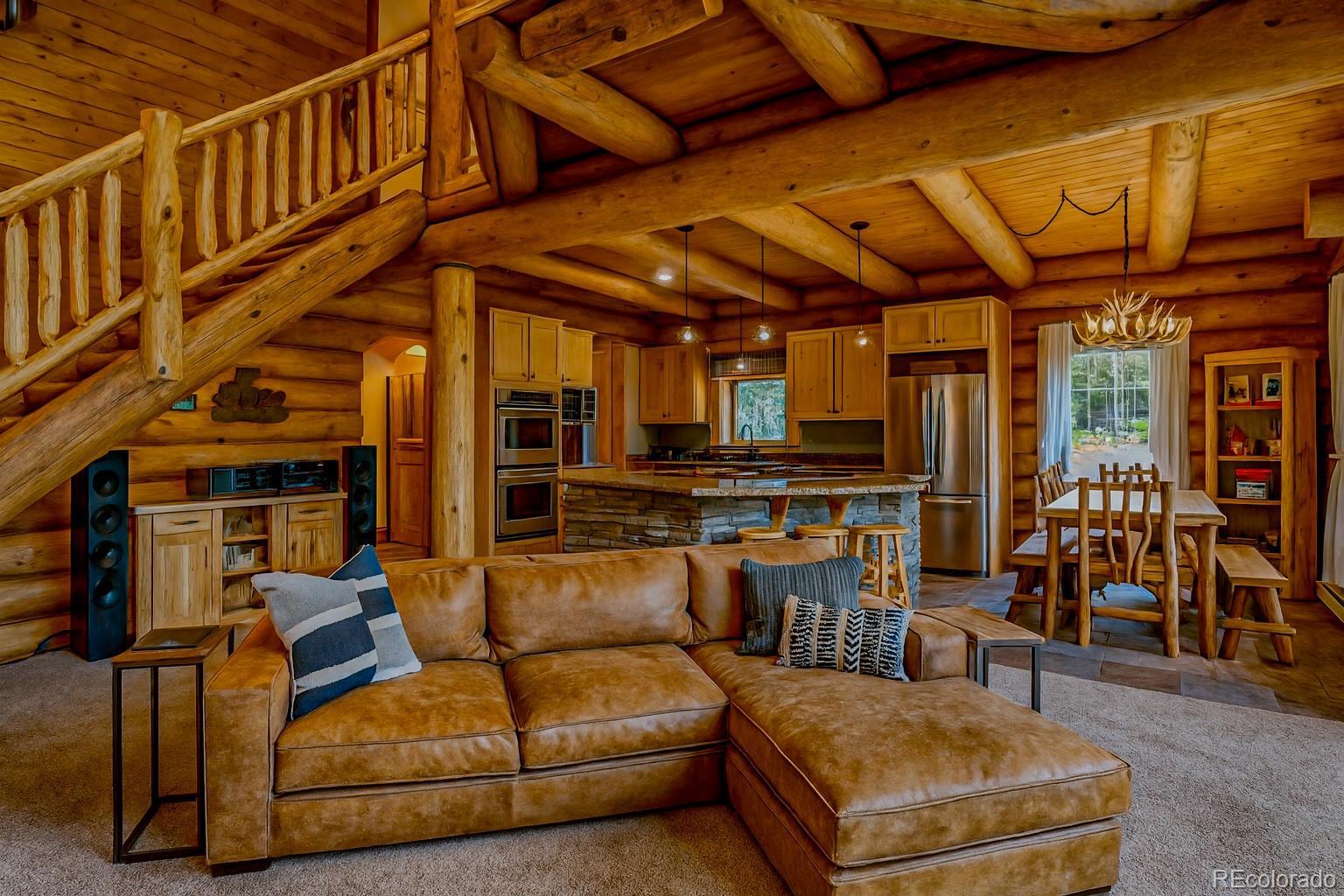Discover the pinnacle of Colorado mountain living in this custom 2-bed, 2-bath log home offering over 2,000 sq ft of refined rustic elegance. Perfectly set among towering pines and shimmering groves of aspens, the property opens into a sweeping meadow that feels both private and grand — the kind of setting that takes your breath away each season of the year.Nestled on nearly 3 acres this home blends timeless craftsmanship with modern comfort, offering both tranquility and adventure right outside your door. Inside, you'll find soaring log-beamed ceilings, a cozy wood-burning stove, and walls of windows that flood the home with natural light while framing unforgettable views. Every window in this home captures the serene beauty of the outdoors, inviting natural light and showcasing the changing seasons.The open kitchen features stone accents, a center island, and custom cabinetry — ideal for gathering with friends and family after a day outdoors. Spacious living and dining areas flow seamlessly to an expansive deck where wildlife, starry skies, and mountain air become part of everyday living. The property features multiple outdoor spaces, including balconies, a wraparound deck with built-in seating, a tent platform and even a barrel sauna for relaxation after exploring the nearby national forest trails. With outbuildings, a greenhouse and a bonus bedroom above the garage you will have plenty of room for your mountain lifestyle, this retreat is both functional and picturesque. Here, nature is your neighbor watch wildlife roam across the meadows, breathe in the crisp mountain air, and enjoy the true meaning of Colorado living.Whether you dream of a year-round residence, a seasonal retreat, opportunity for VRBO or a mountain getaway to share with others, this home captures the essence of rustic Colorado living.