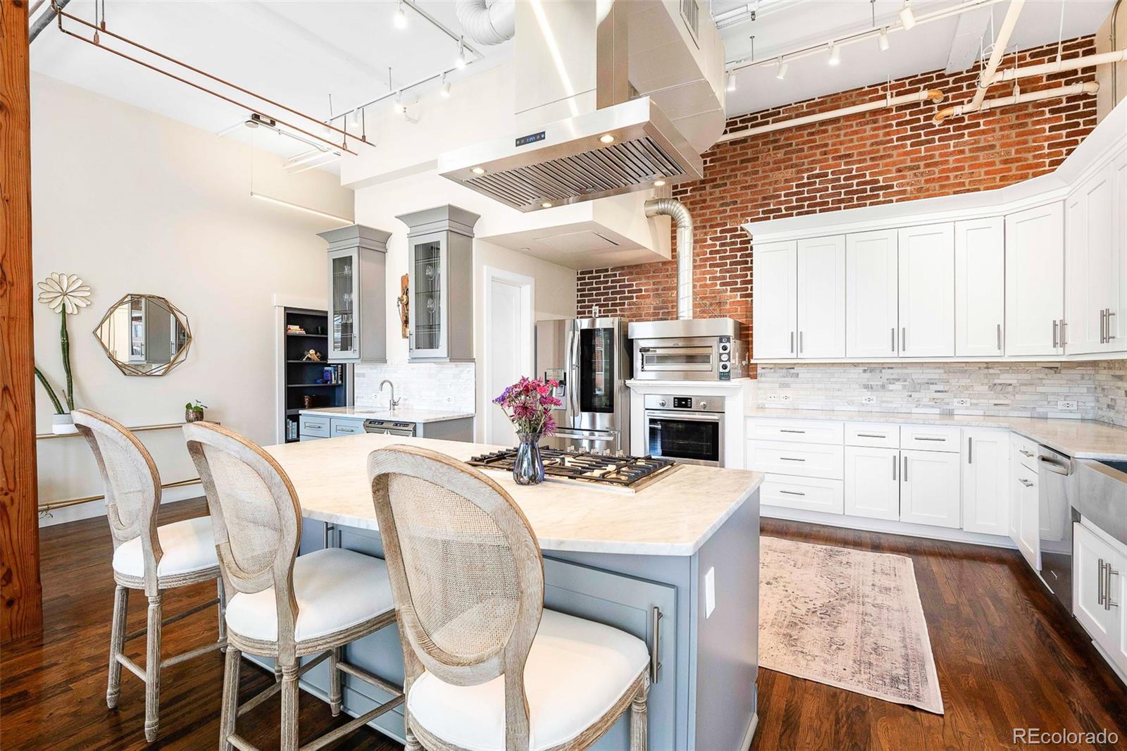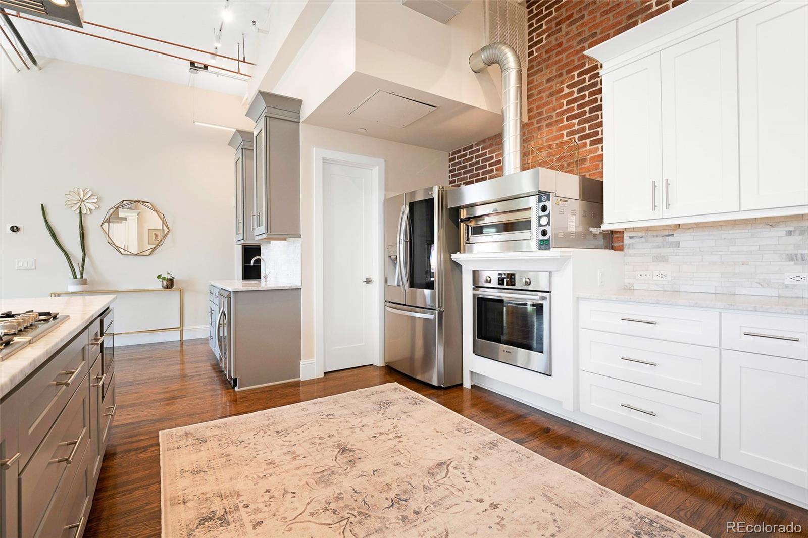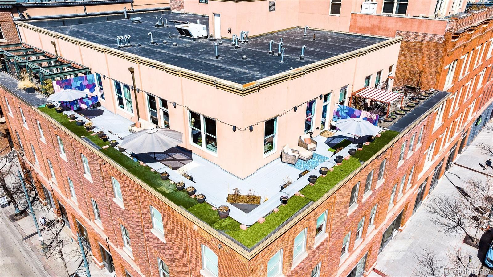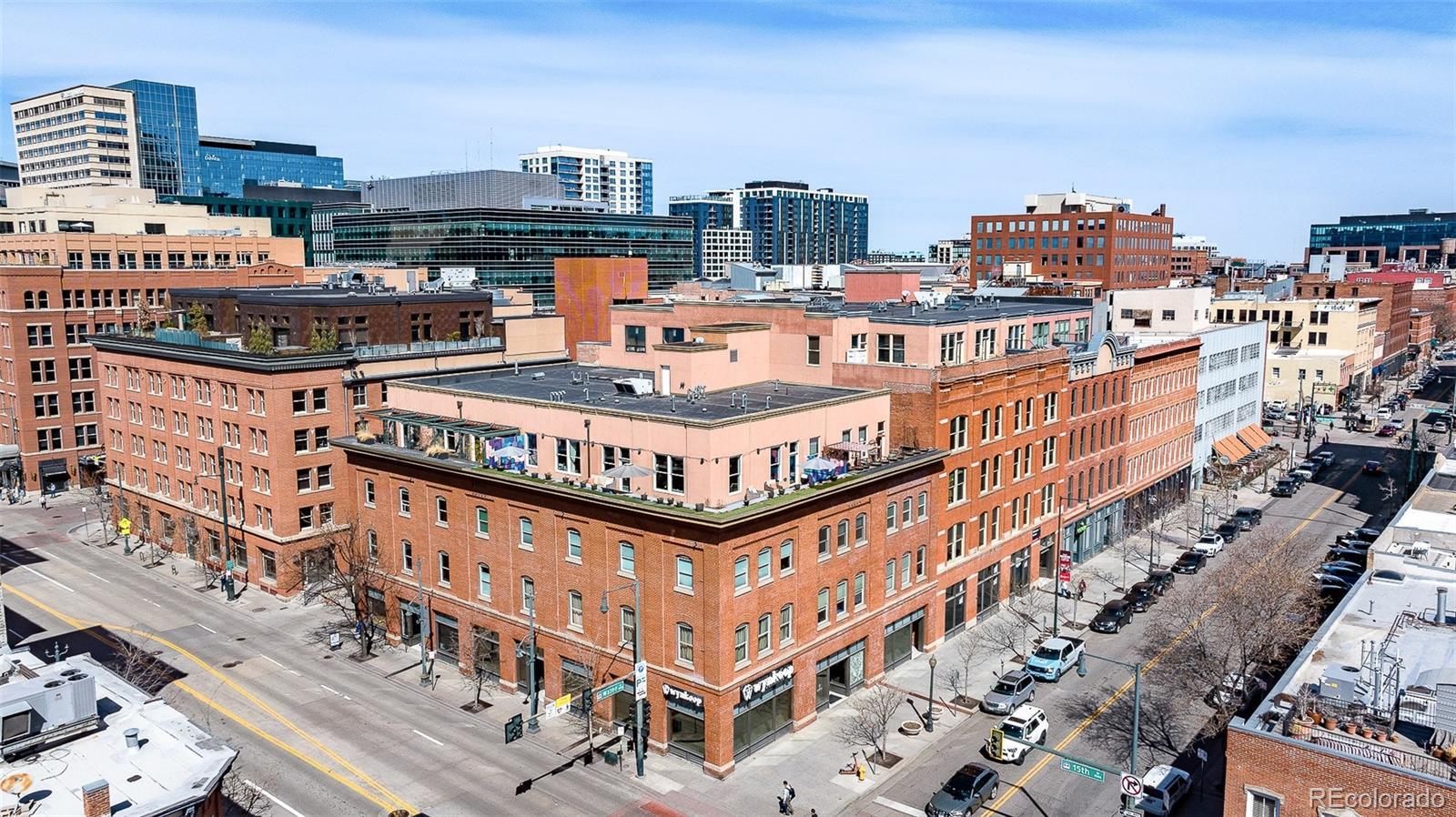 Home is recently remodeled for city oasis & entertainment hub. This top floor 2 BR / 2 BA loft is located in Lodo’s historic Hardware Block Lofts! The home was completely remodeled (2020) to provide modern amenities, while simultaneously protecting the original character of the building. Upon entry, one is greeted by the hardwood floors, exposed brick, 12 ft high ceilings, timber beams, large windows on all sides & an open floor plan that defines true loft living. This spectacular home has 2 primary highlights. First, the kitchen is made for gathering & entertaining. The kitchen has been outfitted with high-end Stainless Steel Appliances, Italian carrara marble slab counters & white high-end shaker cabinets. The jewel of the kitchen is the pizza oven, imported from Italy. The second, & best, feature is the 900 SF wrap- around rooftop deck/balcony. Enjoy morning coffee or hosting evening cocktails on this private spot overlooking downtown. And on a hot summer day you can turn on the misters to help cool things down. The huge primary bedroom easily accommodates a king bed & features en-suite bathroom with a large walk-in closet, which is also accessed by a secret door. Both bathrooms feature luxurious Italian carrara marble. The home is plumbed for: (1) a gas fireplace & (2) an ice machine at the wet bar. (Above the entrance of the bedroom & office there are 22-gauge steel beams that were designed to handle steel doors) The Loft has 2 deeded garage parking spaces; a rarity for this price. Just steps out the door to: Union Station 5 min; Coors Field 10 min; Ball Arena 10 min: & I-25, 5 min drive. Located on a tranquil block of LoDo, so not much disturbance. The unit’s original owner was the architect of the remodeled building & chose this loft because it was “the best unit in the building.” With the price & location, you won't find a better opportunity in Lodo!