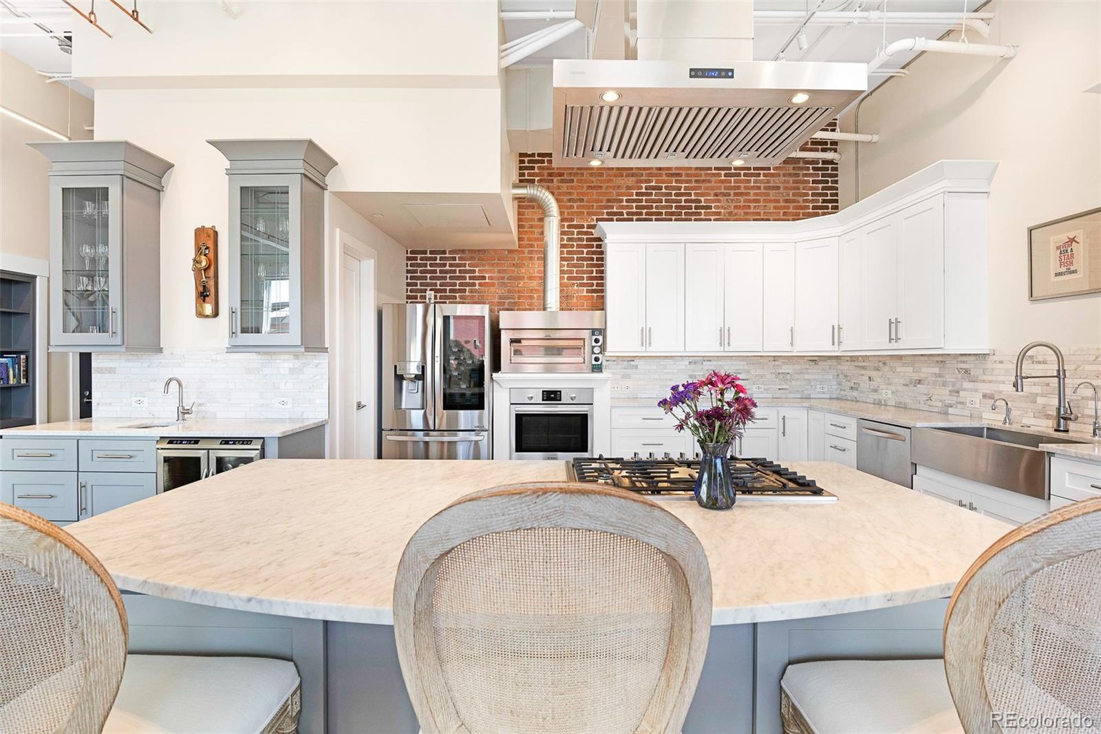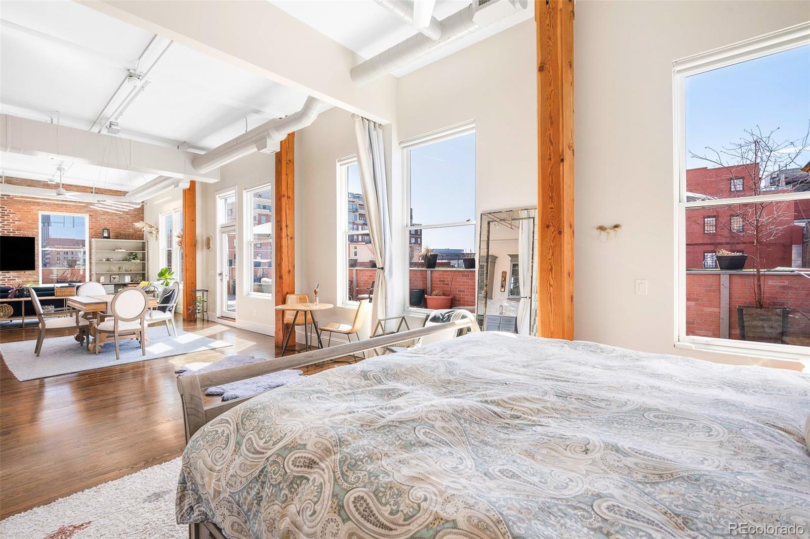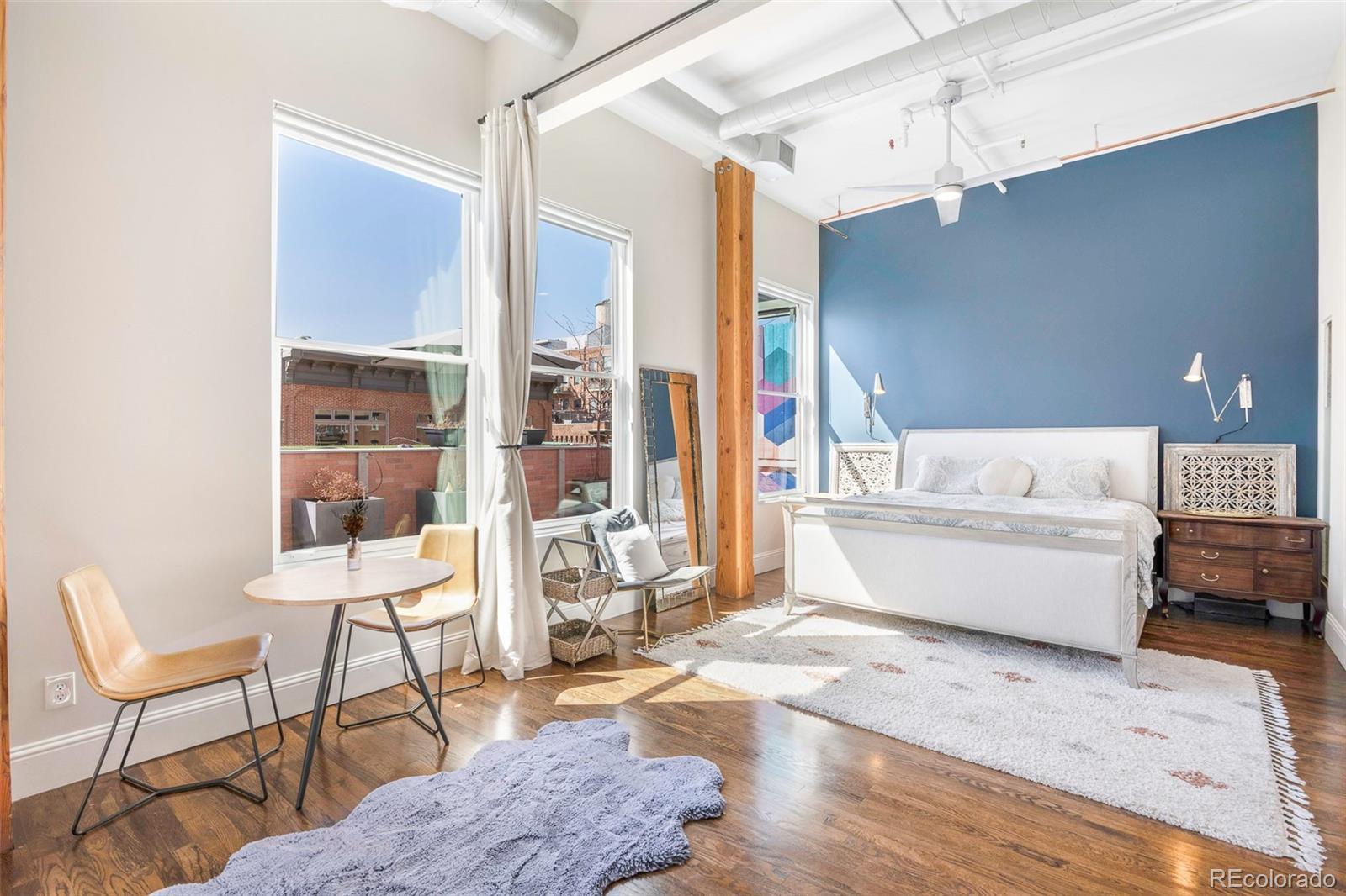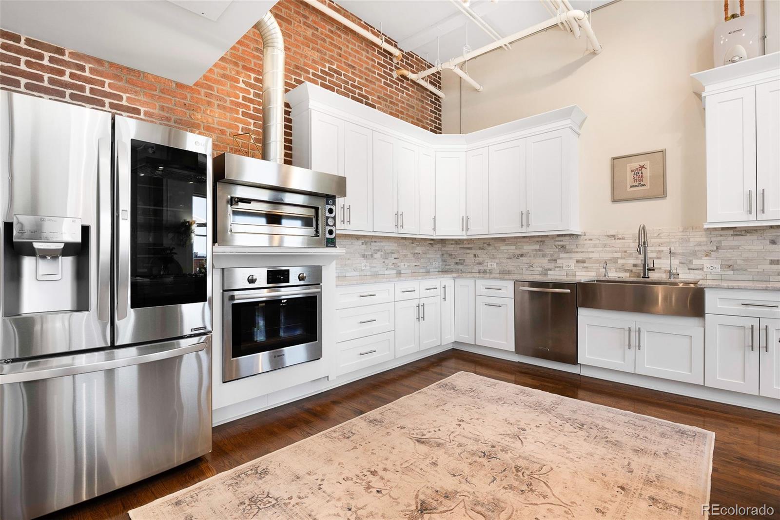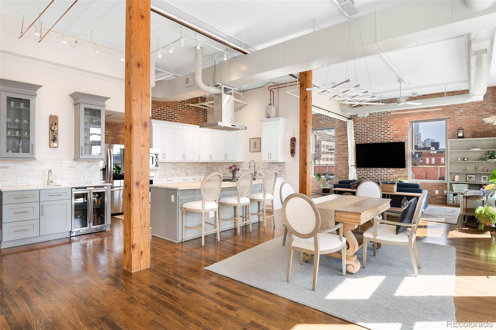 Home is recently remodeled for city oasis & entertainment hub. This top floor 2 BR / 2 BA loft is located in Lodo’s historic Hardware Block Lofts! The home was completely remodeled (2020) to provide modern amenities, while simultaneously protecting the original character of the building. Upon entry, one is greeted by the hardwood floors, exposed brick, 12 ft high ceilings, timber beams, large windows on all sides & an open floor plan that defines true loft living. This spectacular home has 2 primary highlights. First, the kitchen is made for gathering & entertaining. The kitchen has been outfitted with high-end Stainless Steel Appliances, Italian carrara marble slab counters & white high-end shaker cabinets. The jewel of the kitchen is the pizza oven, imported from Italy. The second, & best, feature is the 900 SF wrap- around rooftop deck/balcony. Enjoy morning coffee or hosting evening cocktails on this private spot overlooking downtown. And on a hot summer day you can turn on the misters to help cool things down. The huge primary bedroom easily accommodates a king bed & features en-suite bathroom with a large walk-in closet, which is also accessed by a secret door. Both bathrooms feature luxurious Italian carrara marble. The home is plumbed for: (1) a gas fireplace & (2) an ice machine at the wet bar. (Above the entrance of the bedroom & office there are 22-gauge steel beams that were designed to handle steel doors) The Loft has 2 deeded garage parking spaces; a rarity for this price. Just steps out the door to: Union Station 5 min; Coors Field 10 min; Ball Arena 10 min: & I-25, 5 min drive. Located on a tranquil block of LoDo, so not much disturbance. The unit’s original owner was the architect of the remodeled building & chose this loft because it was “the best unit in the building.” With the price & location, you won't find a better opportunity in Lodo!