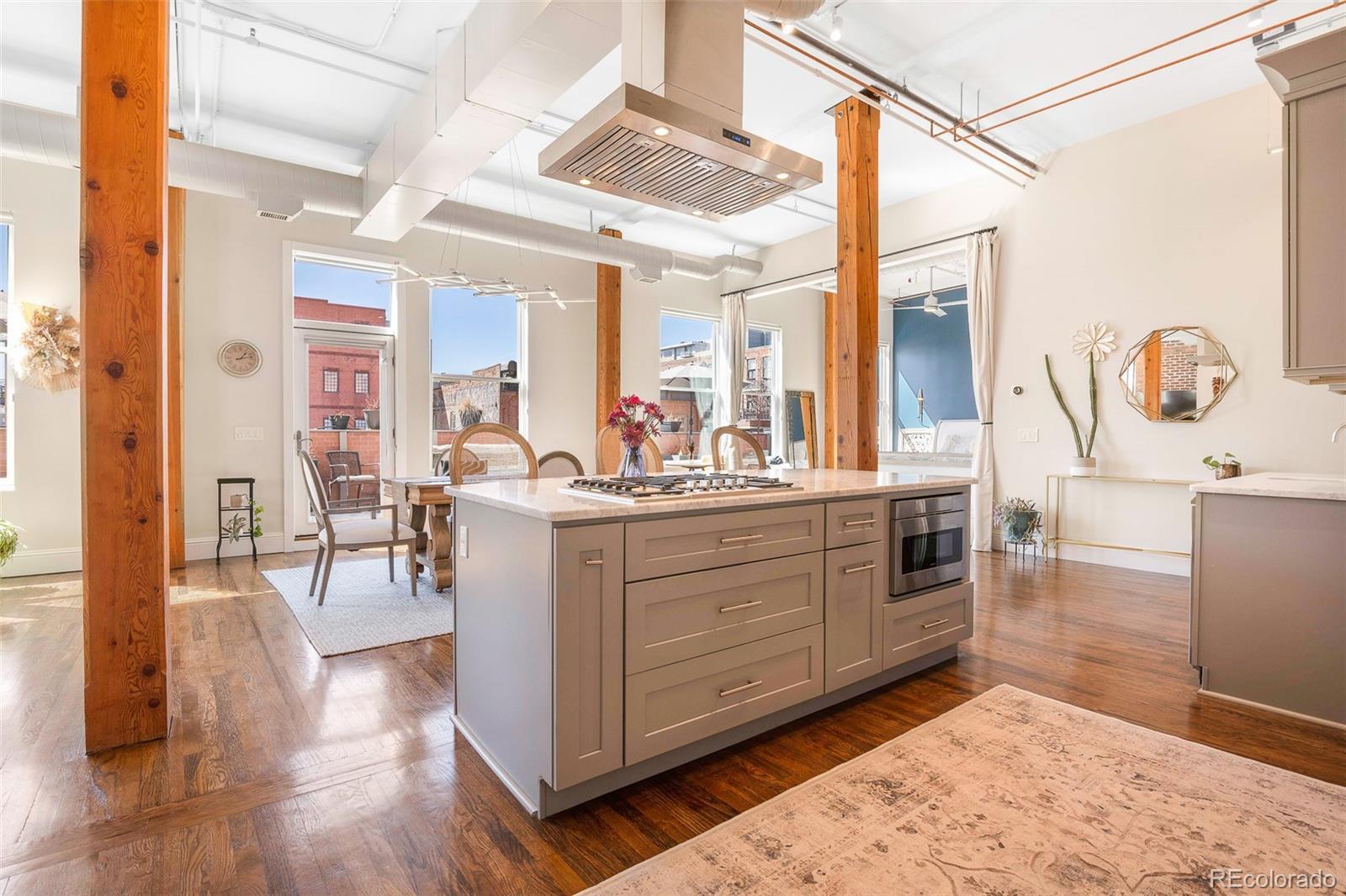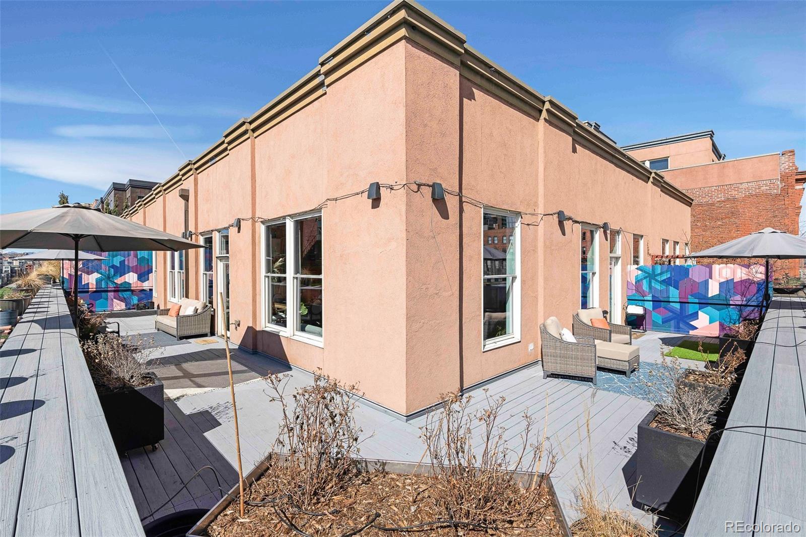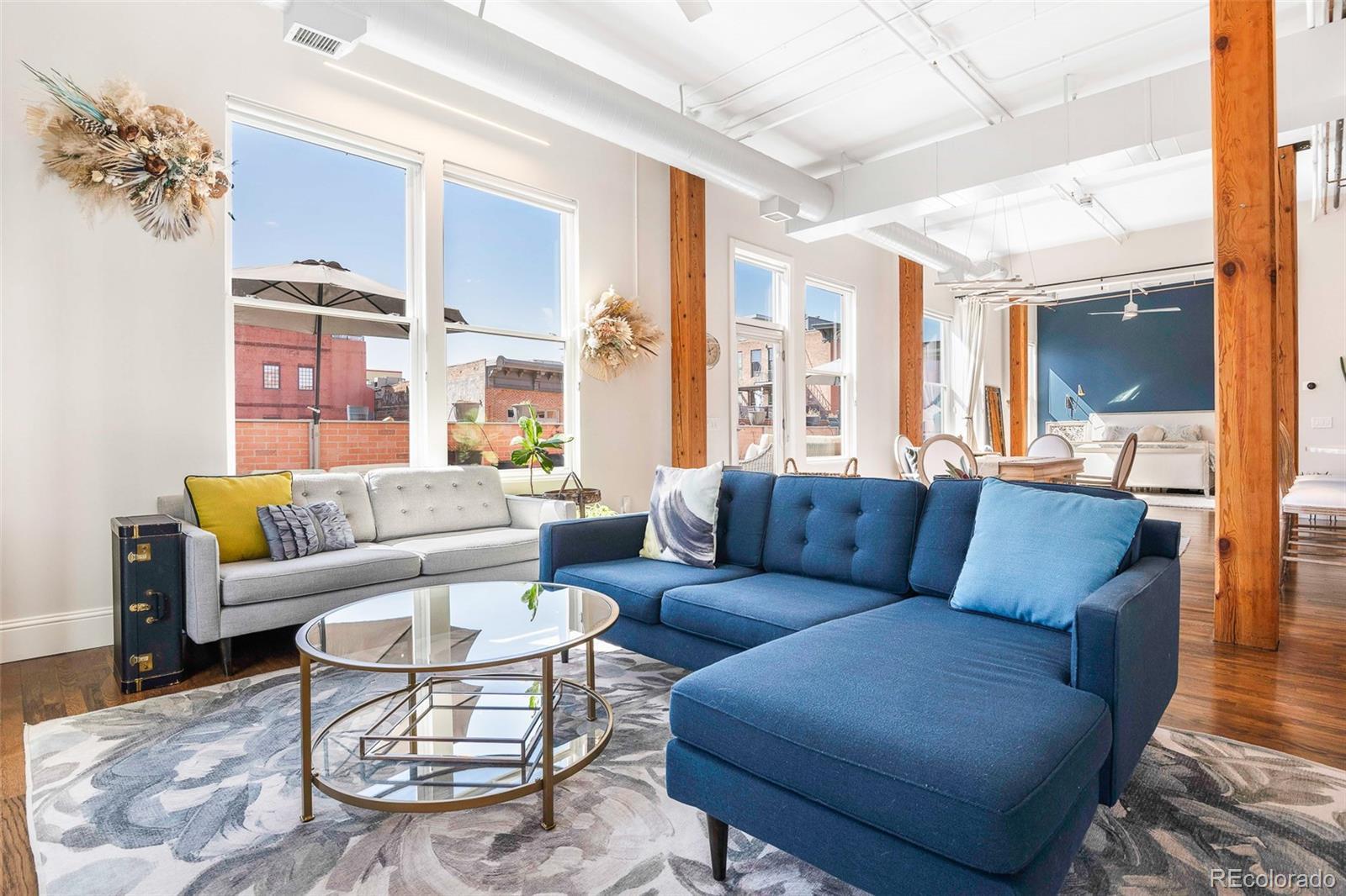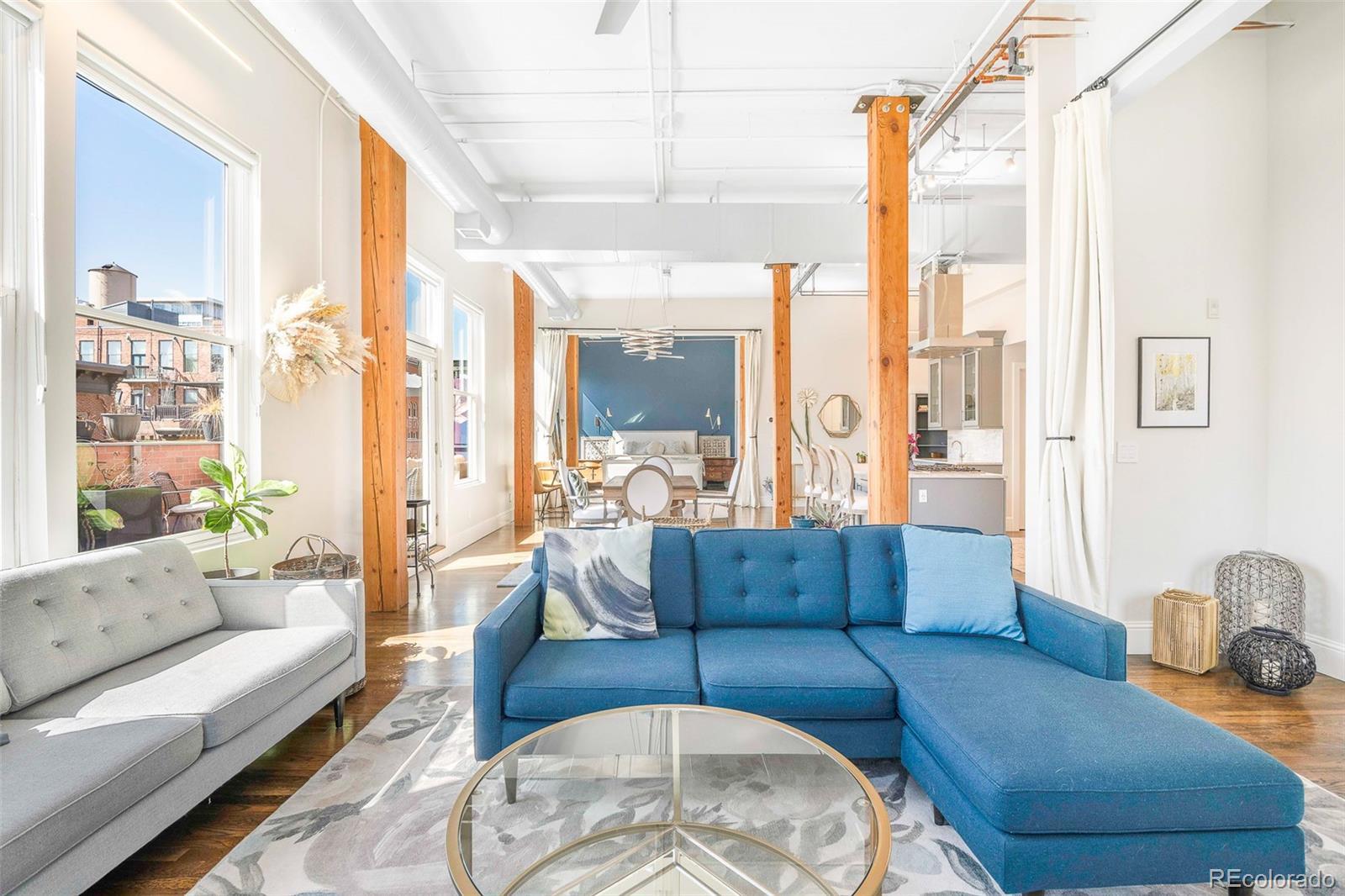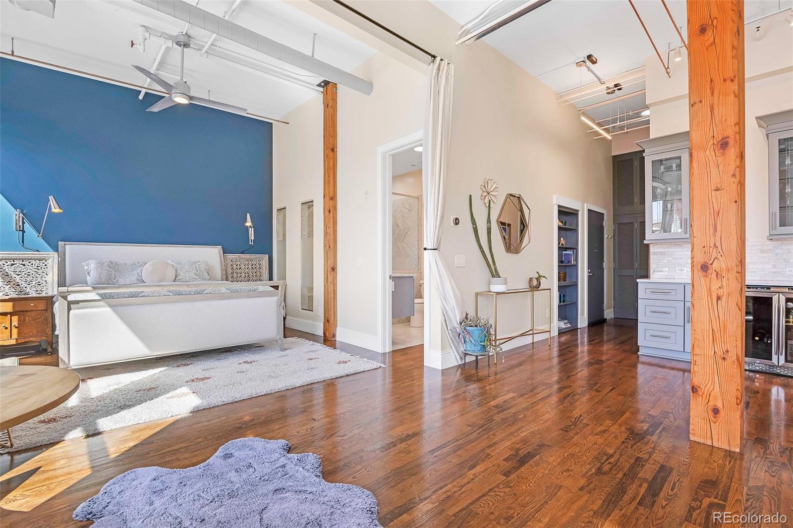 Home is recently remodeled for city oasis & entertainment hub. This top floor 2 BR / 2 BA loft is located in Lodo’s historic Hardware Block Lofts! The home was completely remodeled (2020) to provide modern amenities, while simultaneously protecting the original character of the building. Upon entry, one is greeted by the hardwood floors, exposed brick, 12 ft high ceilings, timber beams, large windows on all sides & an open floor plan that defines true loft living. This spectacular home has 2 primary highlights. First, the kitchen is made for gathering & entertaining. The kitchen has been outfitted with high-end Stainless Steel Appliances, Italian carrara marble slab counters & white high-end shaker cabinets. The jewel of the kitchen is the pizza oven, imported from Italy. The second, & best, feature is the 900 SF wrap- around rooftop deck/balcony. Enjoy morning coffee or hosting evening cocktails on this private spot overlooking downtown. And on a hot summer day you can turn on the misters to help cool things down. The huge primary bedroom easily accommodates a king bed & features en-suite bathroom with a large walk-in closet, which is also accessed by a secret door. Both bathrooms feature luxurious Italian carrara marble. The home is plumbed for: (1) a gas fireplace & (2) an ice machine at the wet bar. (Above the entrance of the bedroom & office there are 22-gauge steel beams that were designed to handle steel doors) The Loft has 2 deeded garage parking spaces; a rarity for this price. Just steps out the door to: Union Station 5 min; Coors Field 10 min; Ball Arena 10 min: & I-25, 5 min drive. Located on a tranquil block of LoDo, so not much disturbance. The unit’s original owner was the architect of the remodeled building & chose this loft because it was “the best unit in the building.” With the price & location, you won't find a better opportunity in Lodo!