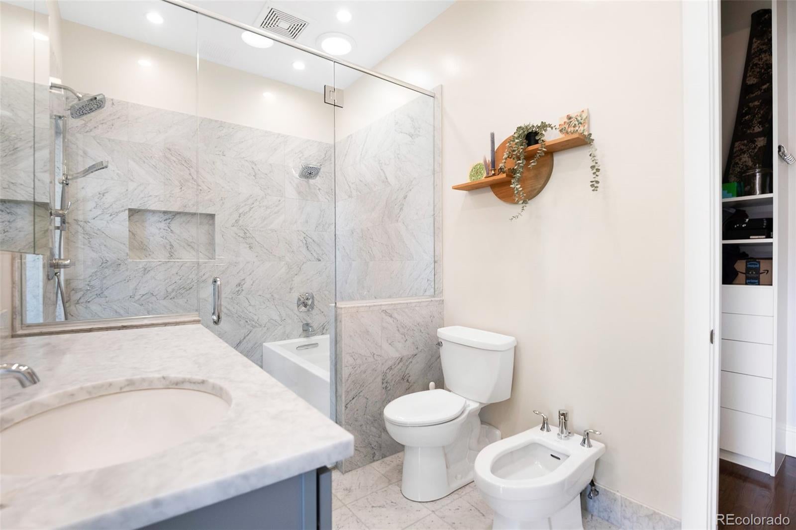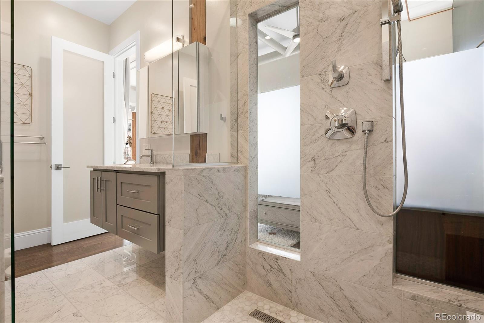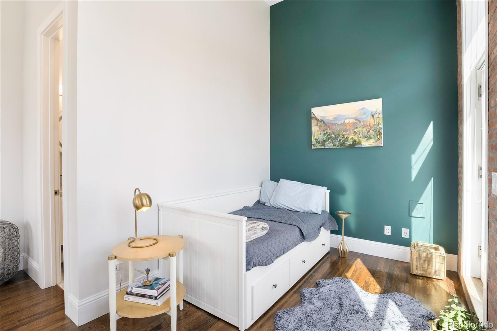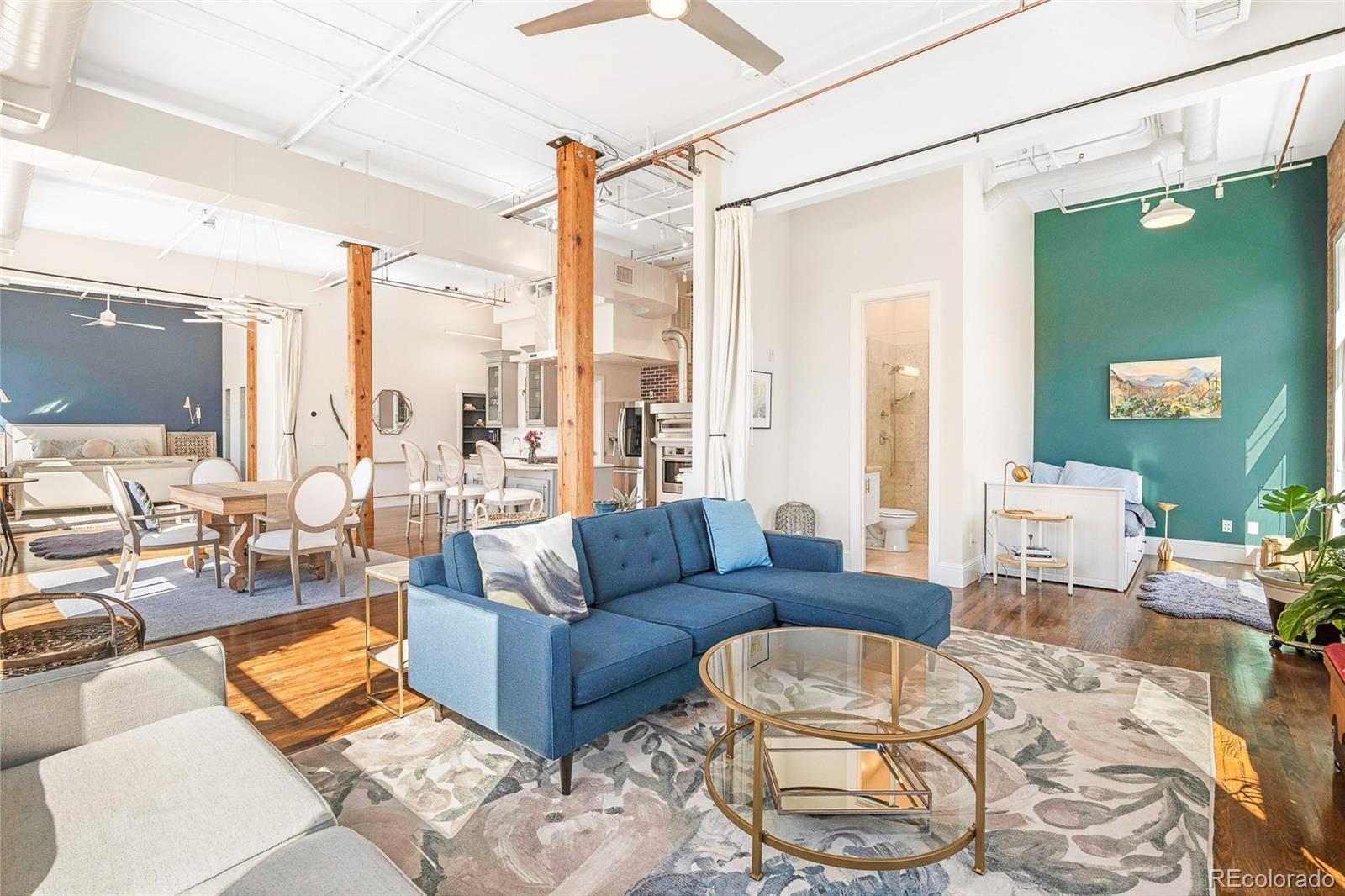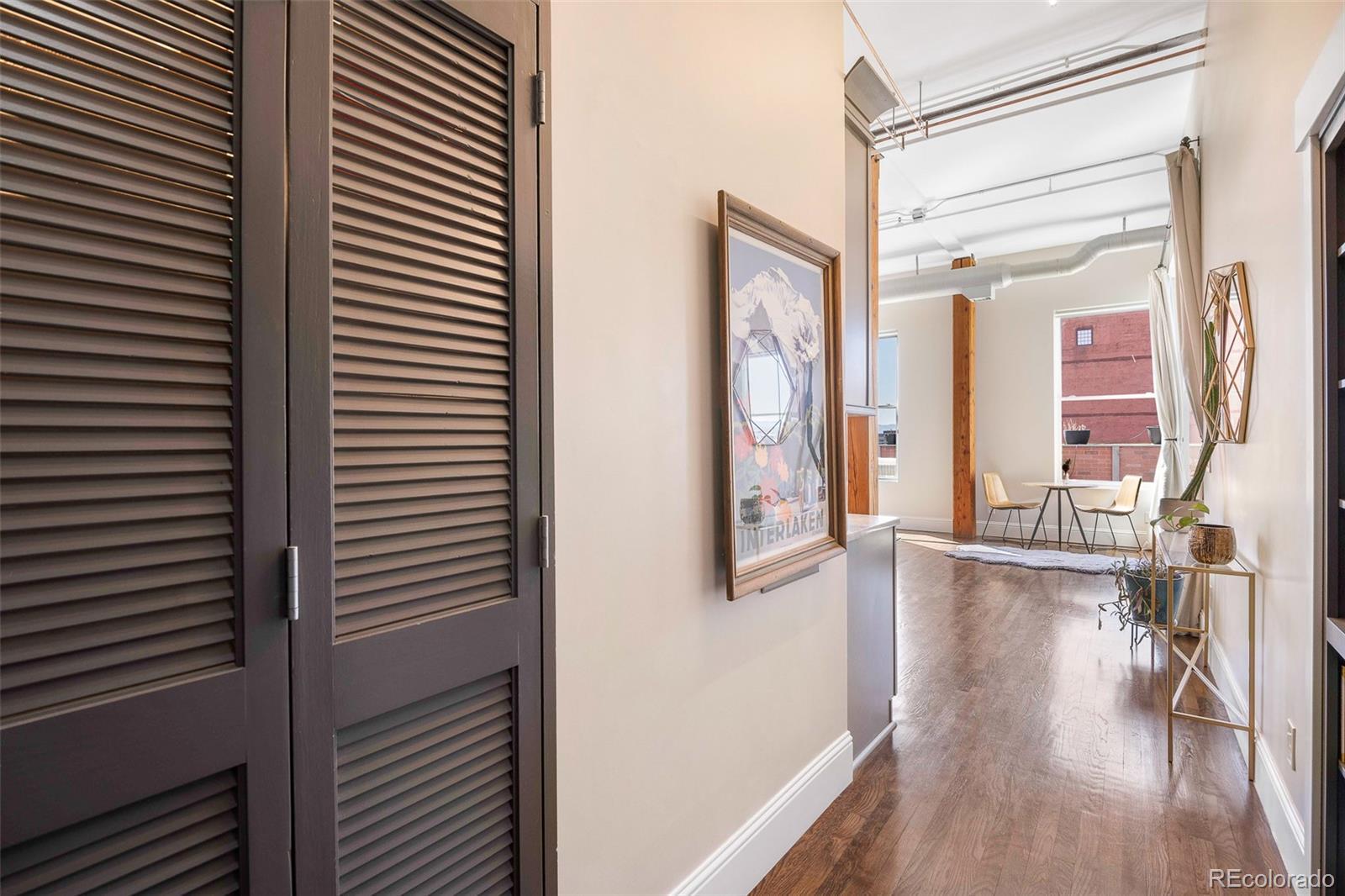 Home is recently remodeled for city oasis & entertainment hub. This top floor 2 BR / 2 BA loft is located in Lodo’s historic Hardware Block Lofts! The home was completely remodeled (2020) to provide modern amenities, while simultaneously protecting the original character of the building. Upon entry, one is greeted by the hardwood floors, exposed brick, 12 ft high ceilings, timber beams, large windows on all sides & an open floor plan that defines true loft living. This spectacular home has 2 primary highlights. First, the kitchen is made for gathering & entertaining. The kitchen has been outfitted with high-end Stainless Steel Appliances, Italian carrara marble slab counters & white high-end shaker cabinets. The jewel of the kitchen is the pizza oven, imported from Italy. The second, & best, feature is the 900 SF wrap- around rooftop deck/balcony. Enjoy morning coffee or hosting evening cocktails on this private spot overlooking downtown. And on a hot summer day you can turn on the misters to help cool things down. The huge primary bedroom easily accommodates a king bed & features en-suite bathroom with a large walk-in closet, which is also accessed by a secret door. Both bathrooms feature luxurious Italian carrara marble. The home is plumbed for: (1) a gas fireplace & (2) an ice machine at the wet bar. (Above the entrance of the bedroom & office there are 22-gauge steel beams that were designed to handle steel doors) The Loft has 2 deeded garage parking spaces; a rarity for this price. Just steps out the door to: Union Station 5 min; Coors Field 10 min; Ball Arena 10 min: & I-25, 5 min drive. Located on a tranquil block of LoDo, so not much disturbance. The unit’s original owner was the architect of the remodeled building & chose this loft because it was “the best unit in the building.” With the price & location, you won't find a better opportunity in Lodo!