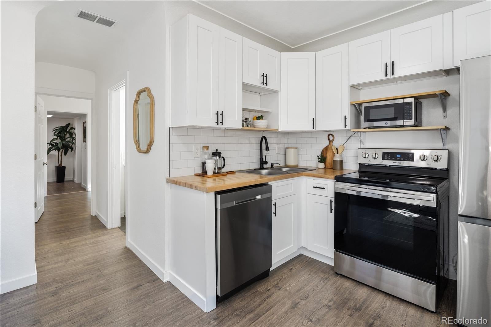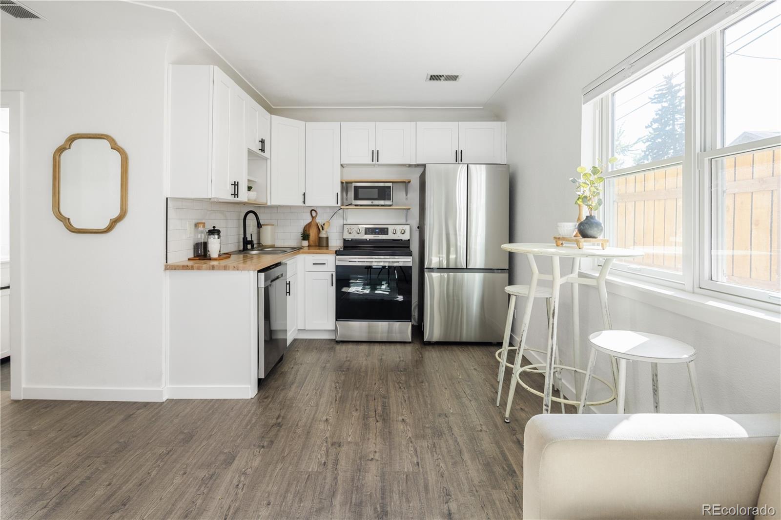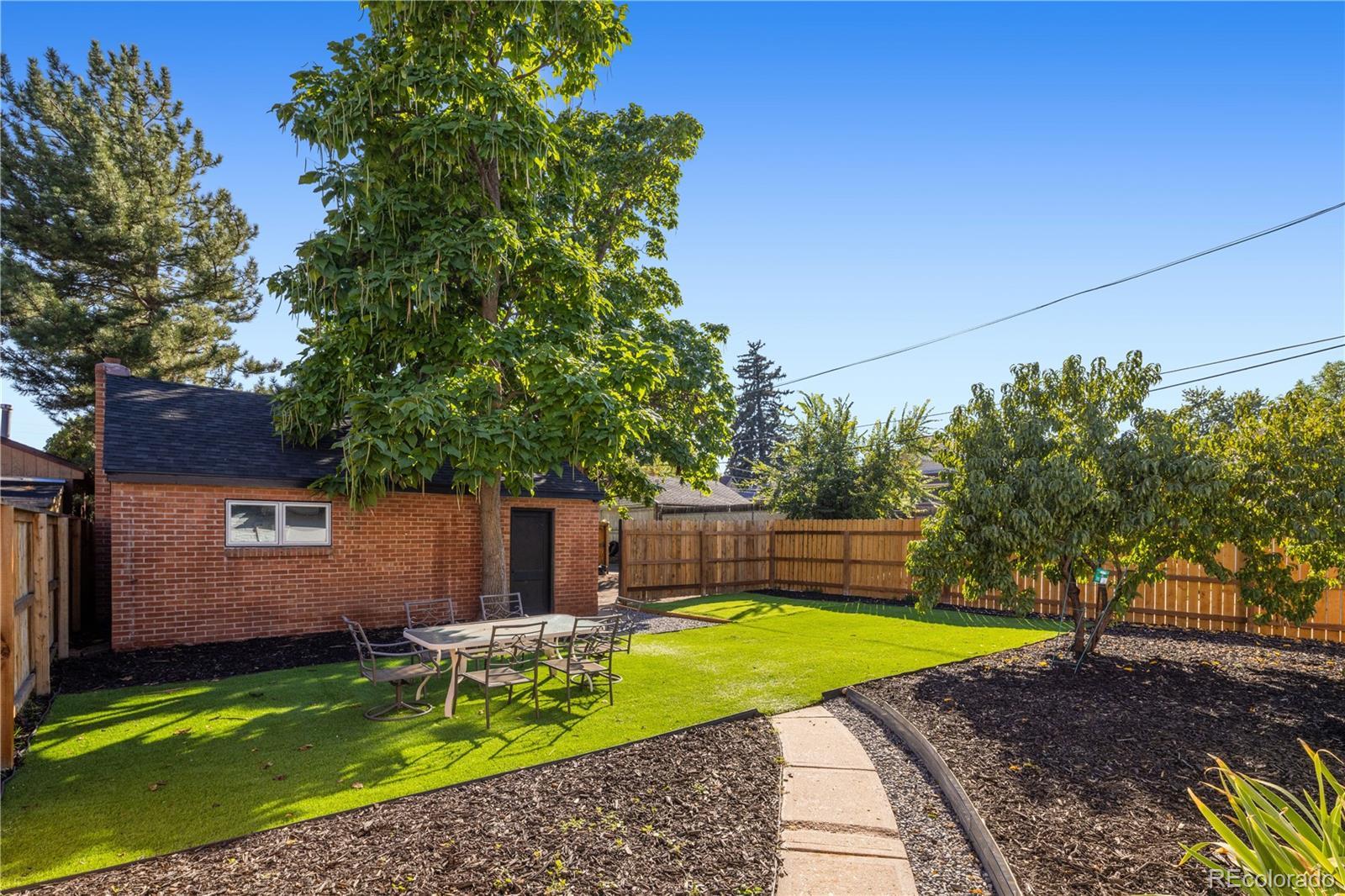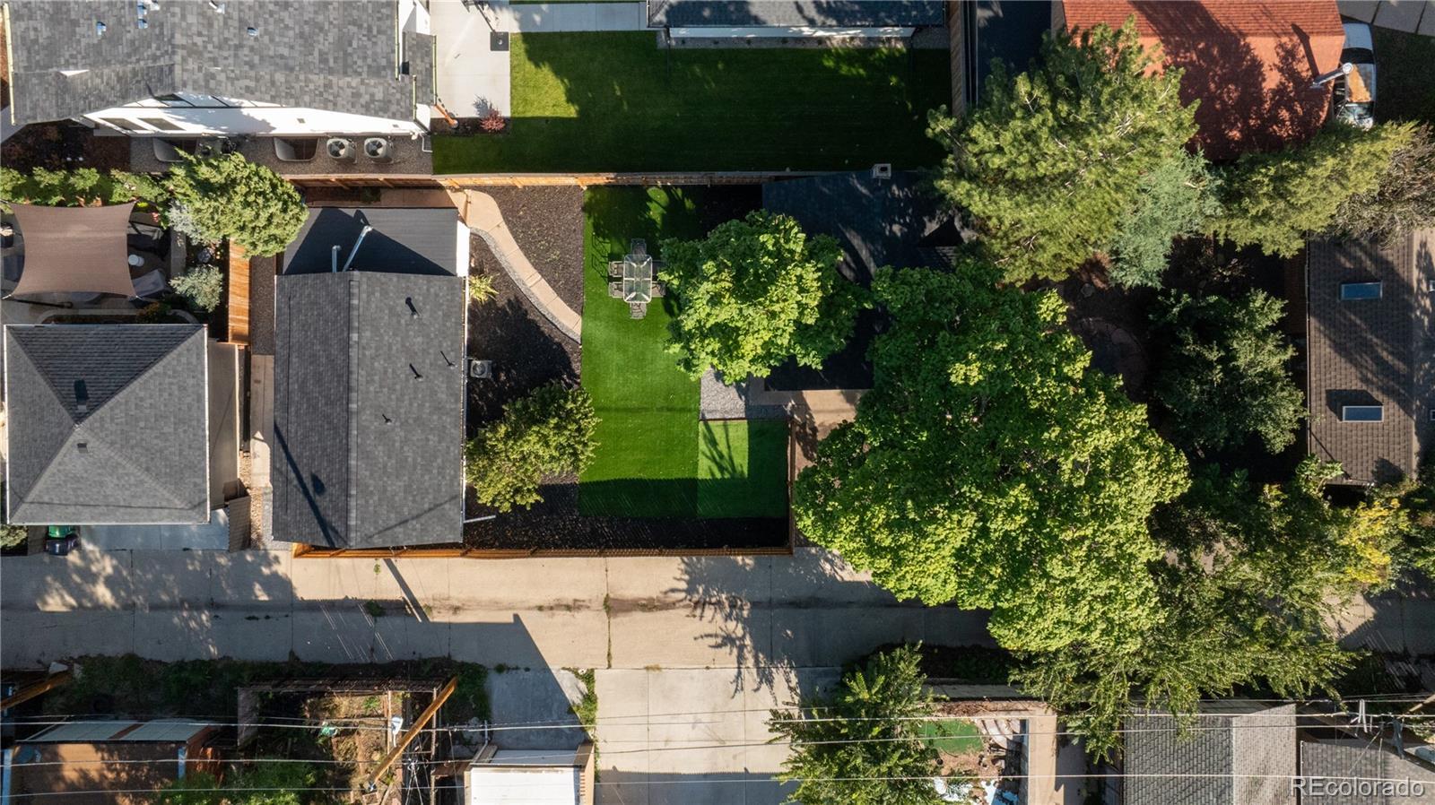 Updated single-family home set back from the street in Denver’s Potter Highlands. Comprehensive 2020 remodel plus extensive upgrades through 2025: new roofs on house and garage, full exterior paint, Pella wood-clad windows, new front and storm doors, new fence, fresh landscaping, and a revived peach tree producing hundreds of peaches each year. Interior updates include full paint, custom Bali top-down shades, new dimmable lighting and fixtures, enlarged primary closet with new sliding doors, counter-depth refrigerator, new kitchen faucet and disposal, and added new wall and ceiling insulation. Oversized two-car garage with storage loft. Large private yard provides rare private outdoor sanquary in this sought-after neighborhood. Located just one block from Leevers Locavore, featuring full grocery, butcher, coffee shop with full bar and 3 additional food concepts inside and live music on weekends. Dozens of addition food concepts just over a half mile walk away on 32nd ave include Spuntino, Park Burger, Fox and the Hen, Bar Taco and much more.