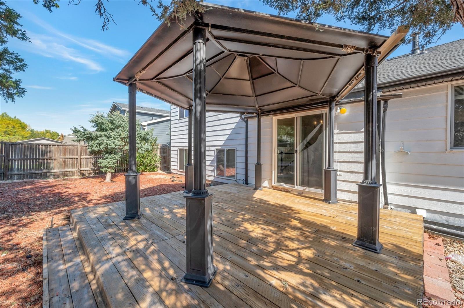 Adorable single family in Parker with NO HOA! Totally remodel- new paint, new flooring and carpet! The home has nice layout with the kitchen, dining and living room on the main level, two bedrooms with a guest bathroom and one master suite on the upper level, and flex one bedroom or home office on the lower level. It has a good size family room, living room and dining room. Warm and inviting upgraded kitchen opens to a large and fabulous deck covered by a pergola in the large back yard.