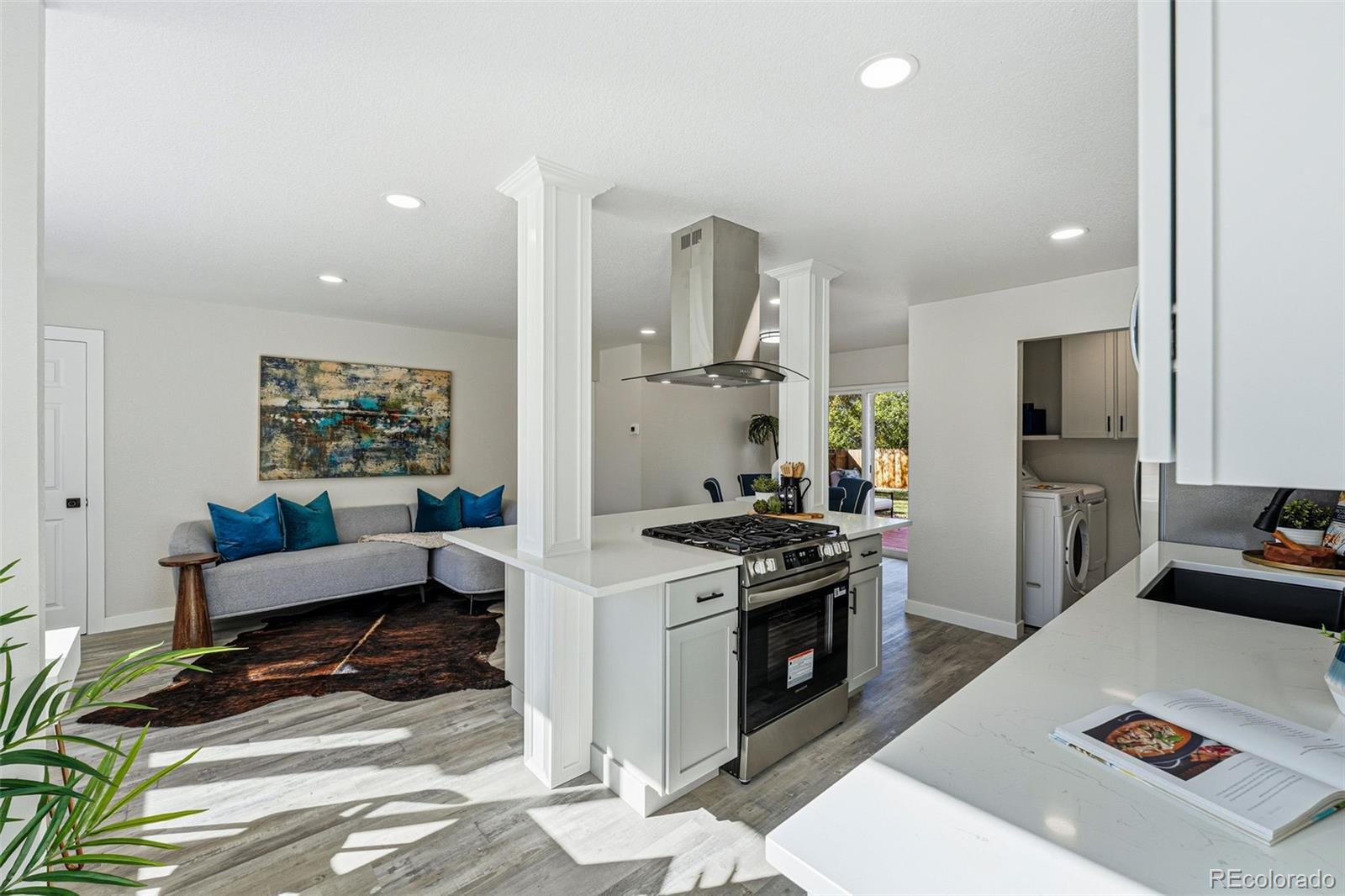 Welcome to this beautifully reimagined home in the highly sought-after University Hills neighborhood. Thoughtfully remodeled from top to bottom, this turnkey residence features a stunning new kitchen with quartz countertops, brand new stainless steel appliances, and an open-concept layout perfect for modern living and entertaining. Brand new flooring runs throughout the home, complemented by new doors, stylish hardware, and fully renovated bathrooms. The spacious laundry room is equipped with a brand new washer and dryer for added convenience. The private ensuite bedroom offers a tranquil retreat, complete with a beautifully appointed four-piece bath and custom fireplace. Step outside to enjoy your serene backyard oasis, featuring mature landscaping and a back yard deck—ideal for relaxing or entertaining all year round. Additional upgrades include a brand new roof, all-new siding, new electrical panel, new concrete flatwork, and a newly installed sewer line, offering peace of mind for years to come. If you're looking for a truly move-in ready home with every detail already taken care of, this is the one you've been waiting for!