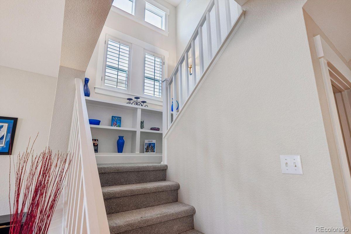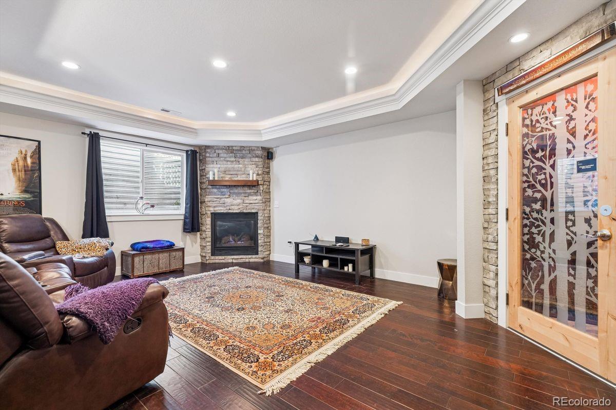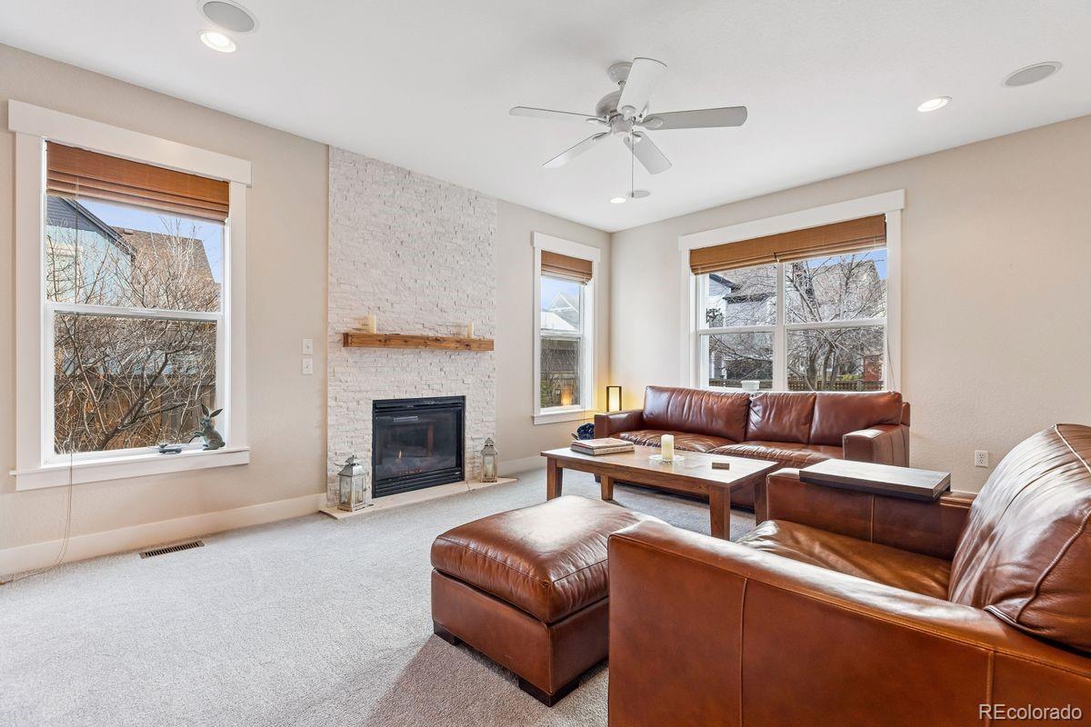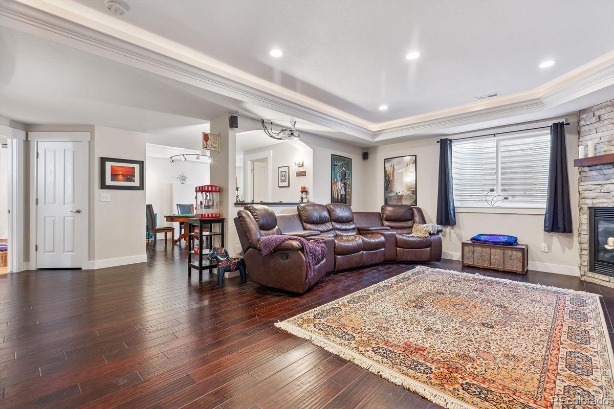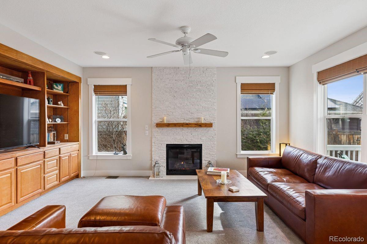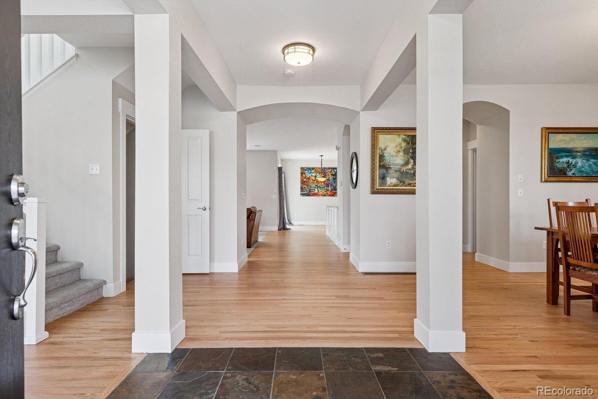 Introducing this charming move-in-ready home, thoughtfully renovated and perfectly located across from Westerly Creek Greenway, with 5 schools, Puddle Jumper Pool, Stanley Marketplace, and local shops just a short walk away—ideal for those seeking an active community. This beautifully designed McStain residence features a spacious open floor plan, highlighted by a warm foyer, a large dining room, and a flexible workspace that’s perfect for work or study. The gourmet kitchen boasts a quartz island, shaker cabinetry wrapped island, luxury countertops, and brand-new KitchenAid appliances, seamlessly connecting to a cozy great room with a fireplace and a sunlit breakfast nook. Enjoy natural light flooding in from large windows overlooking a lovely urban backyard retreat. On the upper level, the expansive primary suite features vaulted ceilings, a spa-like en-suite bathroom, dual walk-in closets, custom built-ins, and a private balcony, while rounding off the upstairs are three additional bedrooms, two bathrooms, and a convenient laundry room. The professionally finished basement includes a gas fireplace, movie room with a bar, game room, adaptable flex room, and climate-controlled wine room. Significant upgrades completed in 2026 include refinished hardwood floors, a brand-New roof with a transferable warranty, fresh interior and exterior paint, a New Furnace, New Water Heater and A/C condenser. The kitchen and bathrooms have been thoughtfully renovated with premium quartz countertops, modern fixtures, and tasteful finishes, creating an inviting environment to forge lasting memories.