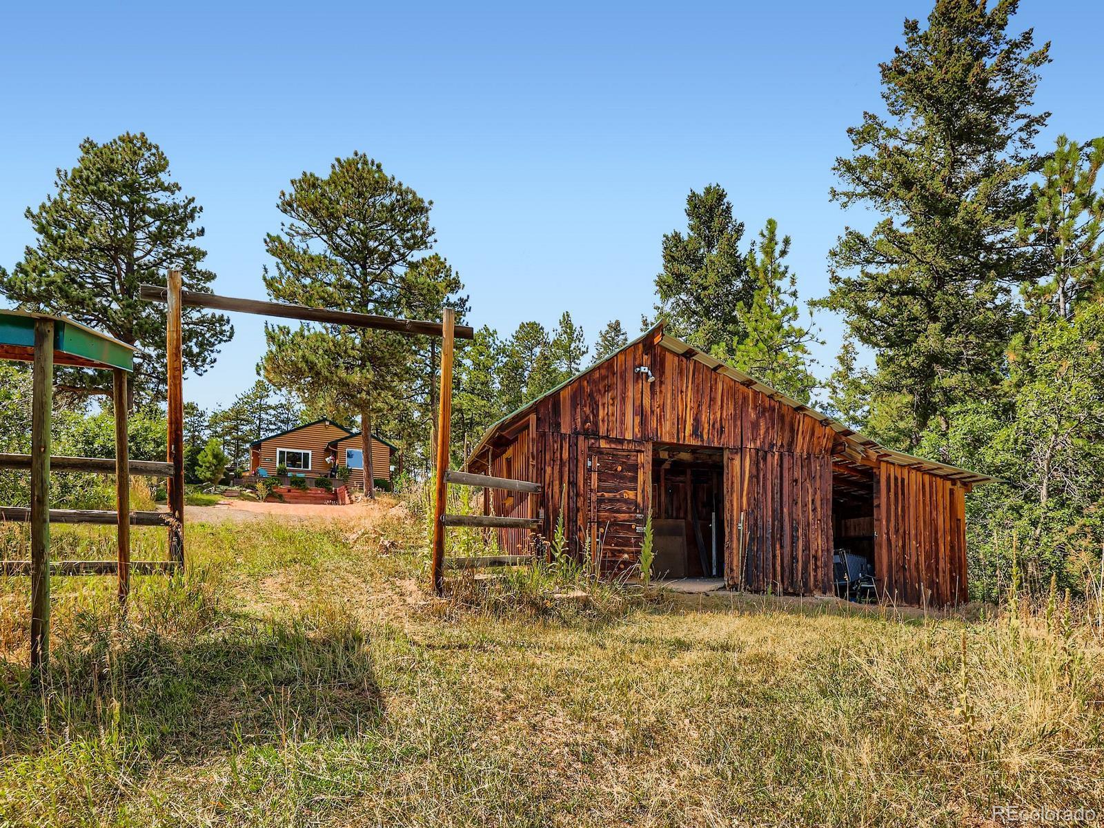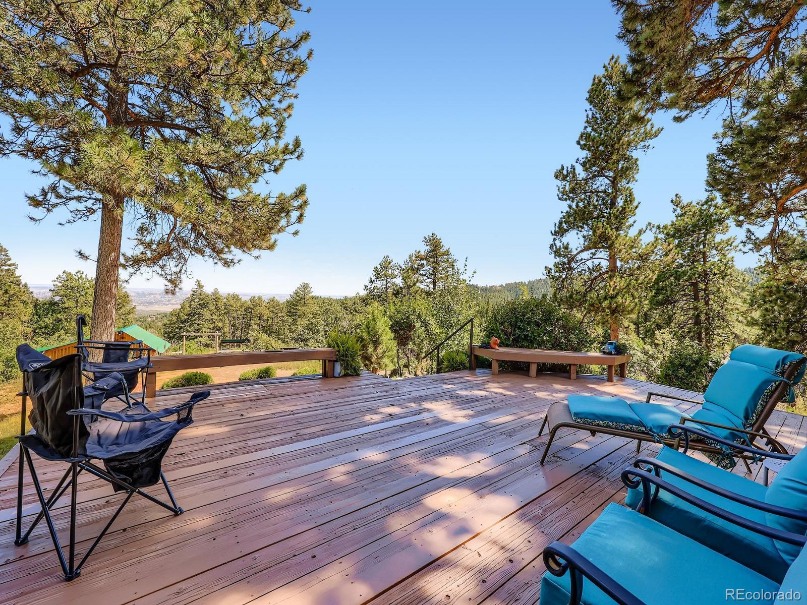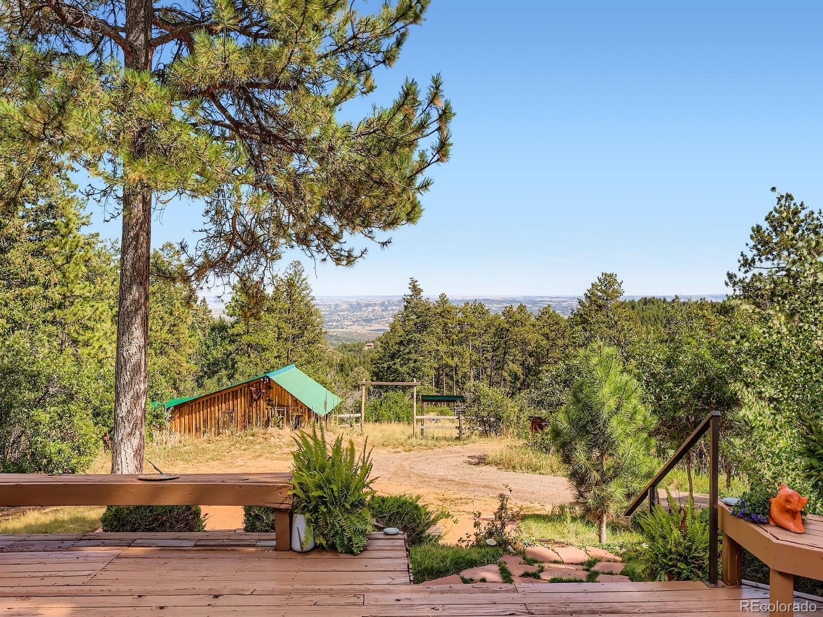 Views, Views, Views!! This 5-acre ranch-style horse property is a short 7-minute drive west of the town of Sedalia. Live in the foothills with incredible views, and at the same time, enjoy the quiet and privacy of mountain living. On the main level, you have an open-concept kitchen, family room, dining area, three bedrooms, two bathrooms, and a main floor laundry (with a second washer and dryer located in the basement). The kitchen has been updated with new countertops, sink, flooring, and stainless steel appliances. Large eating area and family room with wood floors and a fireplace insert complement the kitchen with views and tons of natural light. Master bedroom with updated ensuite bathroom, secondary bedroom with fireplace, third bedroom, remodeled bathroom with jetted tub, and office nook complete the main level. In the basement, you have an additional family room and a second laundry with a deep sink and extra storage. The home has an attached, oversized, and heated three-car garage with openers. A short walk from the patio, you have a barn with two stalls, a tack room, and two adjacent areas available for an arena (one next to the barn, then a second flat area south of the home and barn). Home also features new paint on the exterior (including the deck), ceiling fans, four ceiling tube lights, updated double-pane windows (upgraded to slide on both ends), a good-producing water well drilled by current owners, and an updated and certified hot water boiler for baseboard heating. Additionally, there is no HOA or special taxing district.