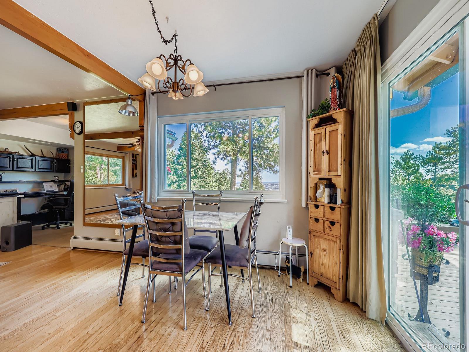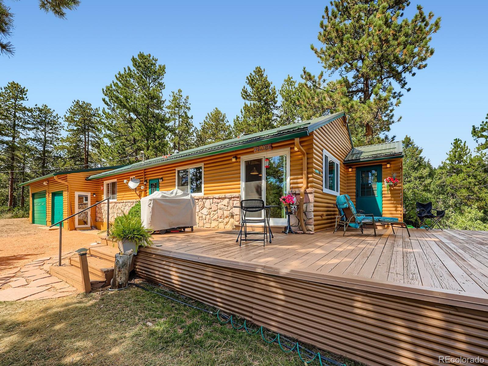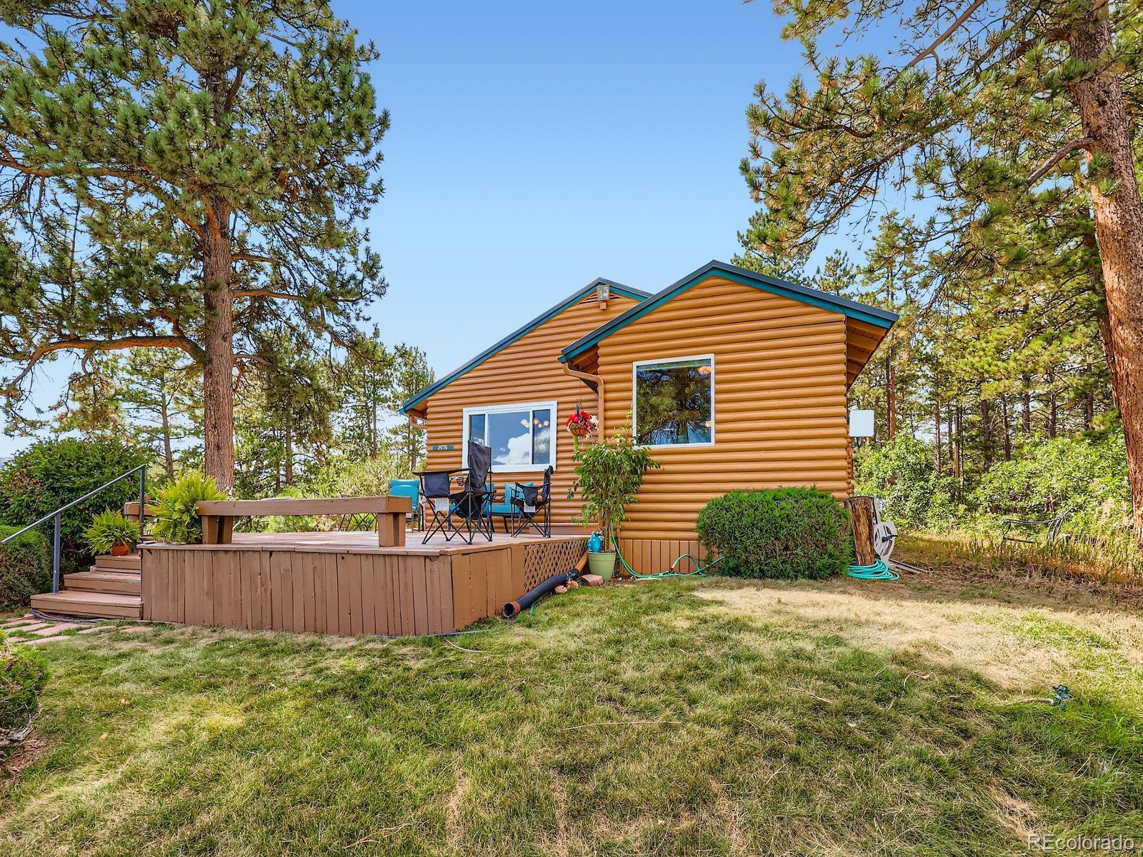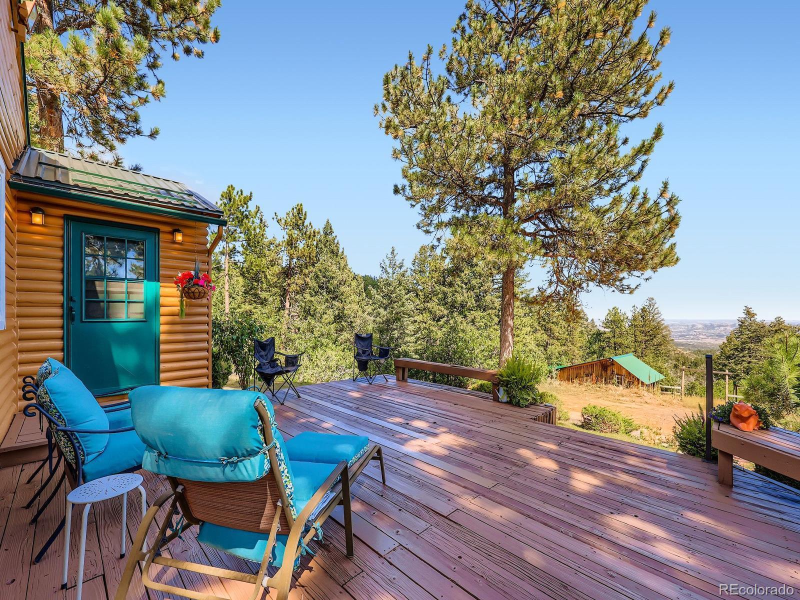 Views, Views, Views!! This 5-acre ranch-style horse property is a short 7-minute drive west of the town of Sedalia. Live in the foothills with incredible views, and at the same time, enjoy the quiet and privacy of mountain living. On the main level, you have an open-concept kitchen, family room, dining area, three bedrooms, two bathrooms, and a main floor laundry (with a second washer and dryer located in the basement). The kitchen has been updated with new countertops, sink, flooring, and stainless steel appliances. Large eating area and family room with wood floors and a fireplace insert complement the kitchen with views and tons of natural light. Master bedroom with updated ensuite bathroom, secondary bedroom with fireplace, third bedroom, remodeled bathroom with jetted tub, and office nook complete the main level. In the basement, you have an additional family room and a second laundry with a deep sink and extra storage. The home has an attached, oversized, and heated three-car garage with openers. A short walk from the patio, you have a barn with two stalls, a tack room, and two adjacent areas available for an arena (one next to the barn, then a second flat area south of the home and barn). Home also features new paint on the exterior (including the deck), ceiling fans, four ceiling tube lights, updated double-pane windows (upgraded to slide on both ends), a good-producing water well drilled by current owners, and an updated and certified hot water boiler for baseboard heating. Additionally, there is no HOA or special taxing district.