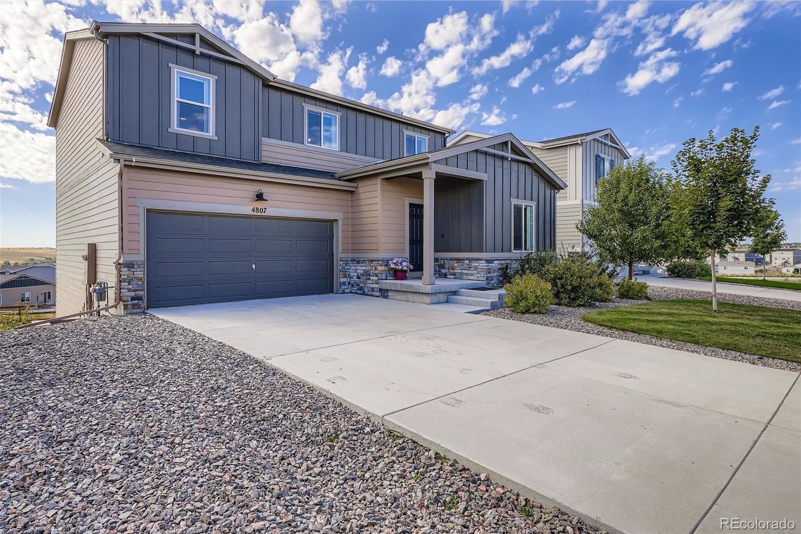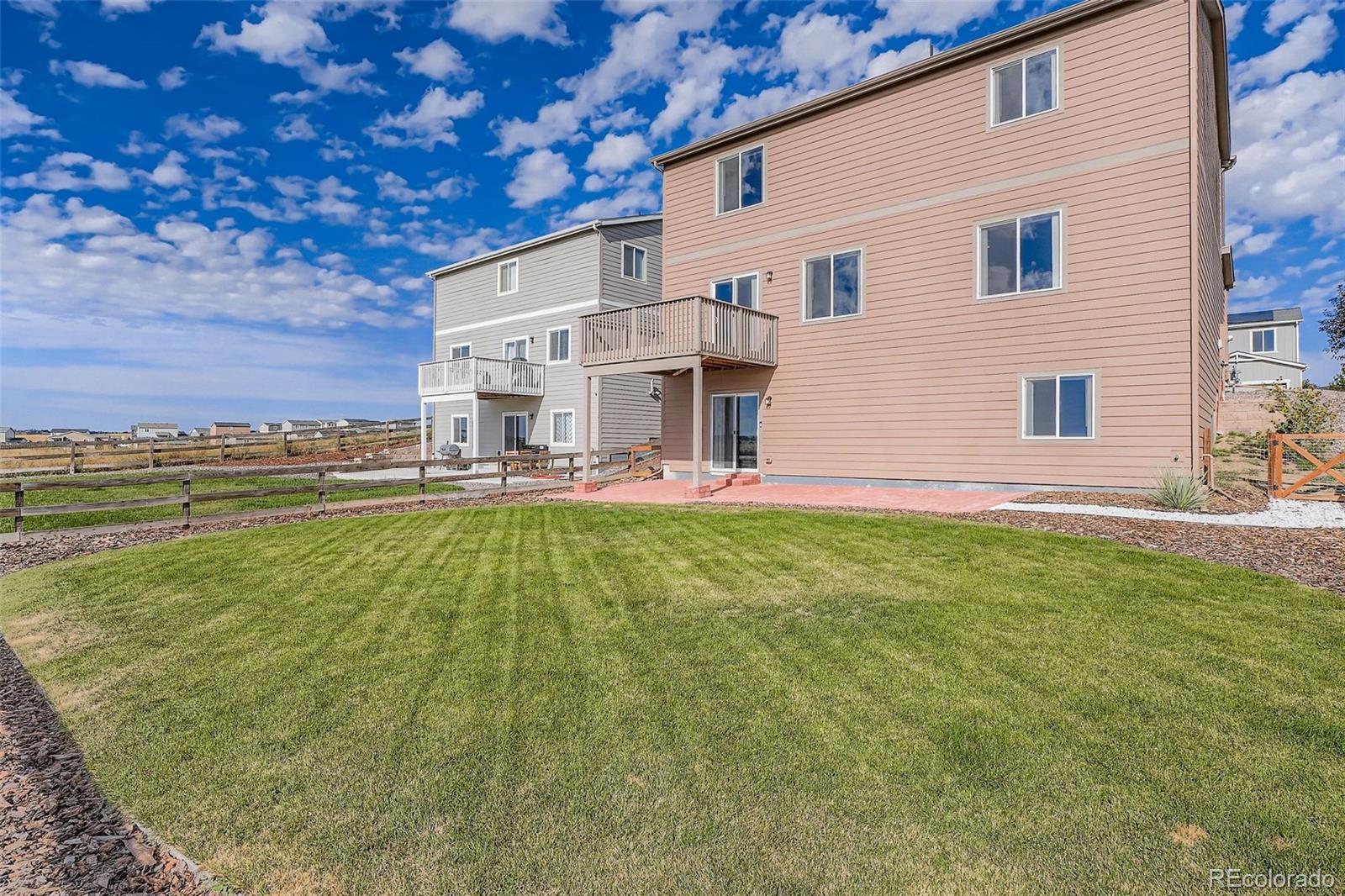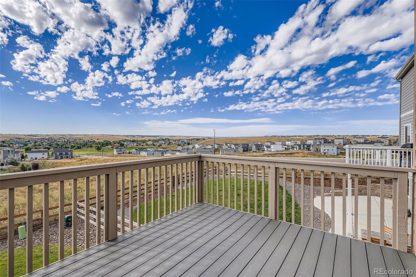 Great VALUE on a spectacular lot with tons of MOUNTAIN VIEWS and BACKING TO OPEN SPACE! This beautiful home features 4 bedrooms (3 upper / 1 main), 3 baths, living / dining / kitchen, loft (could be converted to another bedroom), unfinished WALKOUT basement and 2 car garage. Quick possession and easy to show. Relax and enjoy the views from the deck off the dining area or chill and grill on the covered patio below. Move in ready. The many windows showcase the different views and allows the natural light to cascade in – bright and cheerful. Turn the loft into a family room, office, craft space, play area or convert to another bedroom. Finish the basement for even more living space. A main floor bedroom with direct access to a full bathroom makes this an ideal space for guests. This beautiful home is a quiet oasis with easy access to Spring Valley Golf Course and just a short drive to the town of Parker or Elizabeth. Don’t miss your opportunity. Welcome Home!