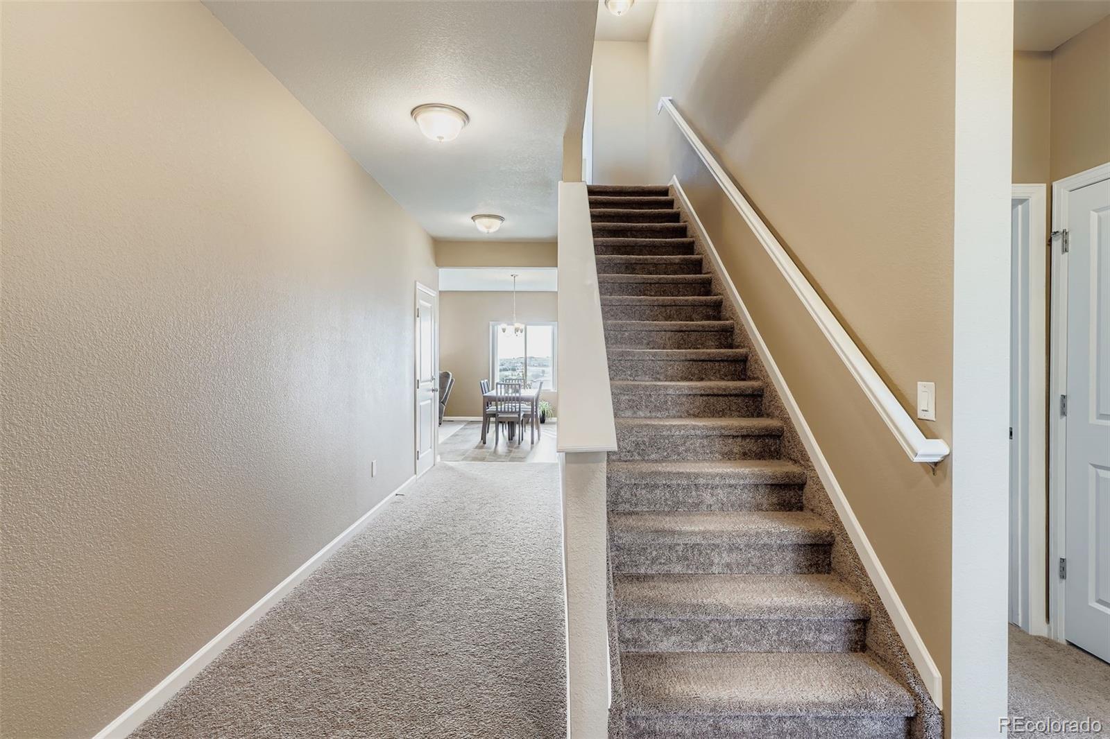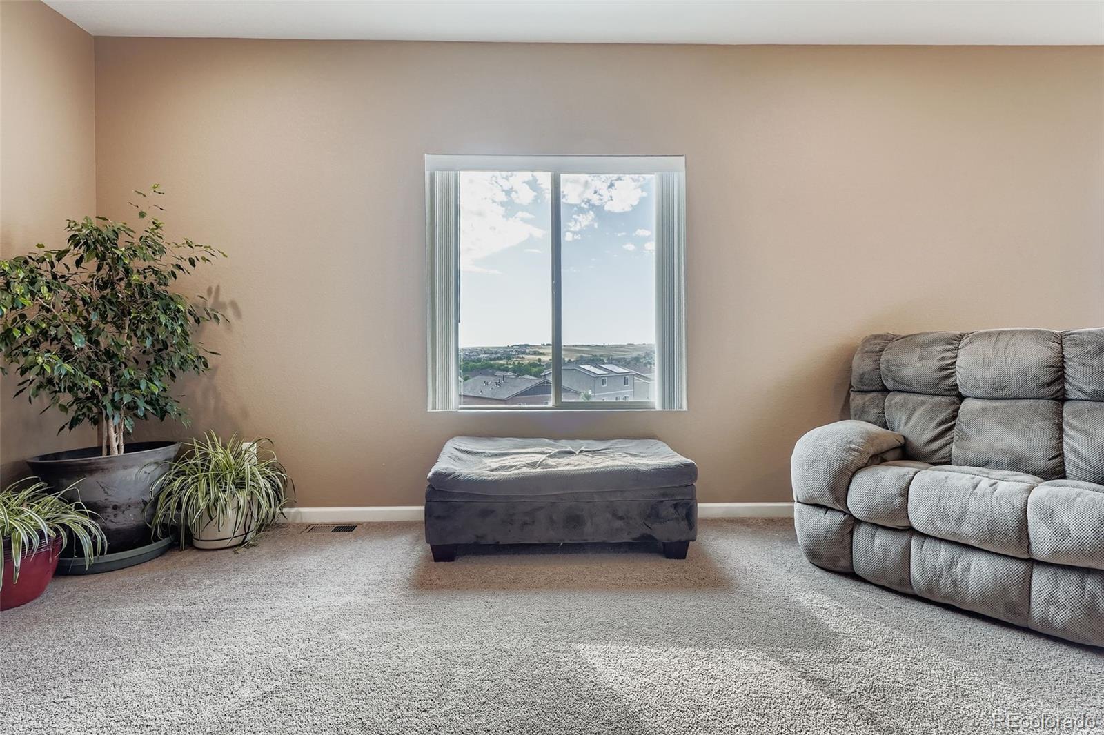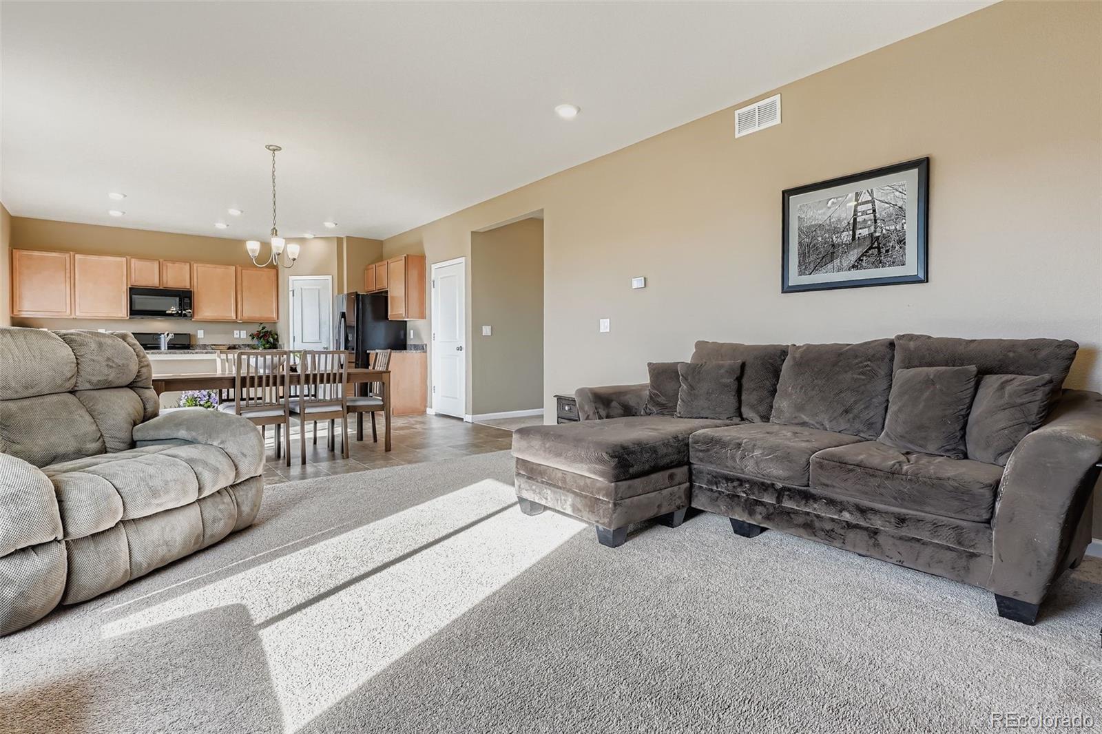 Great VALUE on a spectacular lot with tons of MOUNTAIN VIEWS and BACKING TO OPEN SPACE! This beautiful home features 4 bedrooms (3 upper / 1 main), 3 baths, living / dining / kitchen, loft (could be converted to another bedroom), unfinished WALKOUT basement and 2 car garage. Quick possession and easy to show. Relax and enjoy the views from the deck off the dining area or chill and grill on the covered patio below. Move in ready. The many windows showcase the different views and allows the natural light to cascade in – bright and cheerful. Turn the loft into a family room, office, craft space, play area or convert to another bedroom. Finish the basement for even more living space. A main floor bedroom with direct access to a full bathroom makes this an ideal space for guests. This beautiful home is a quiet oasis with easy access to Spring Valley Golf Course and just a short drive to the town of Parker or Elizabeth. Don’t miss your opportunity. Welcome Home!