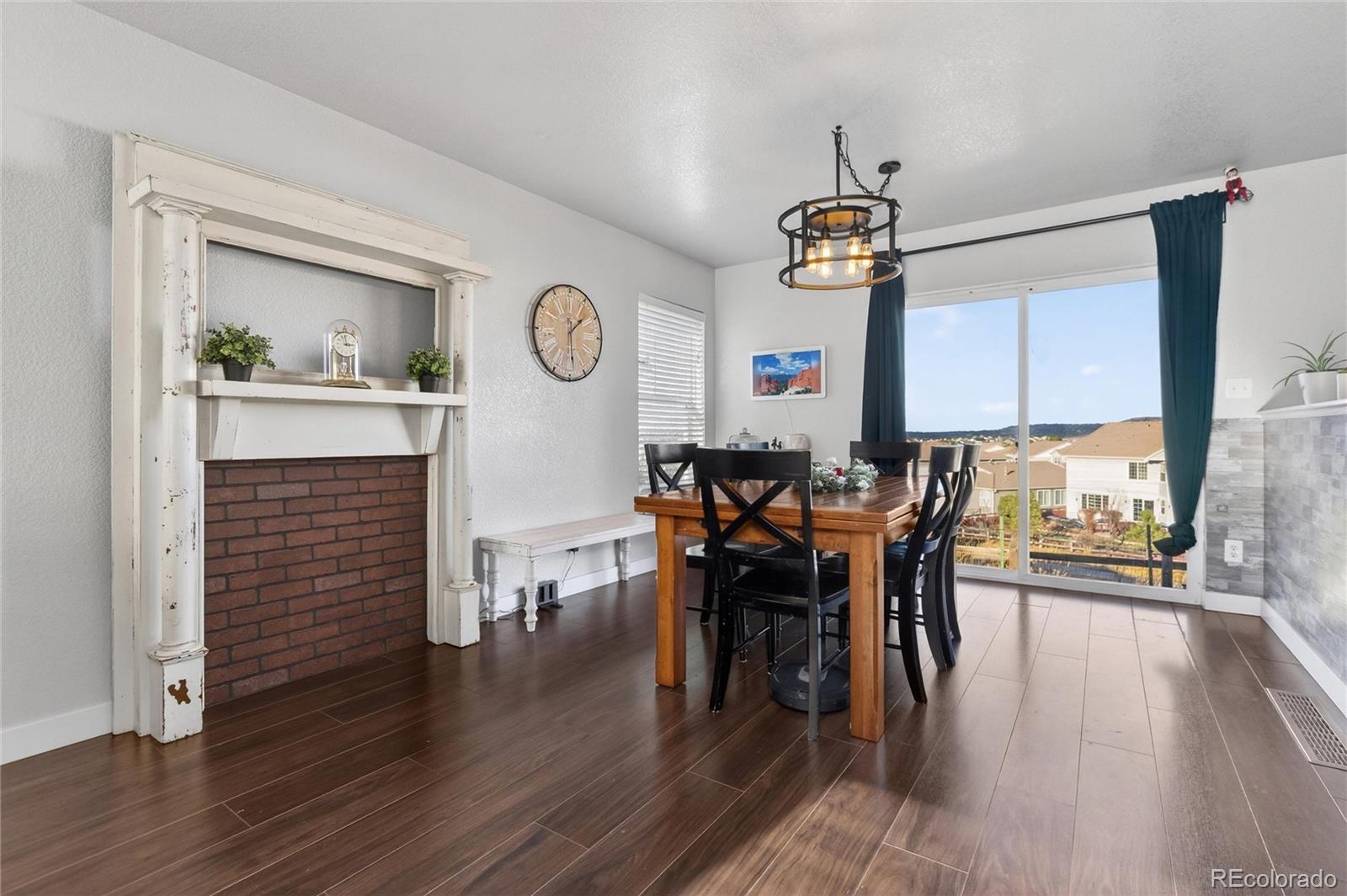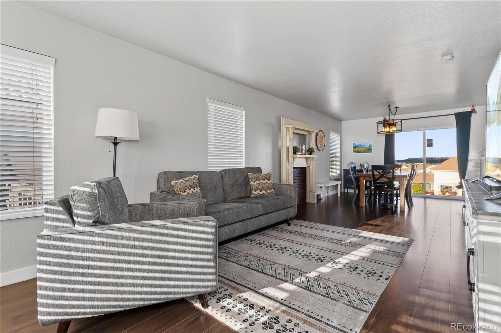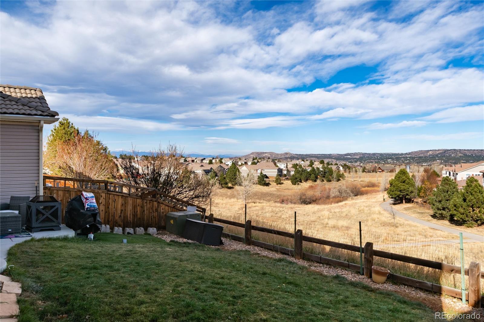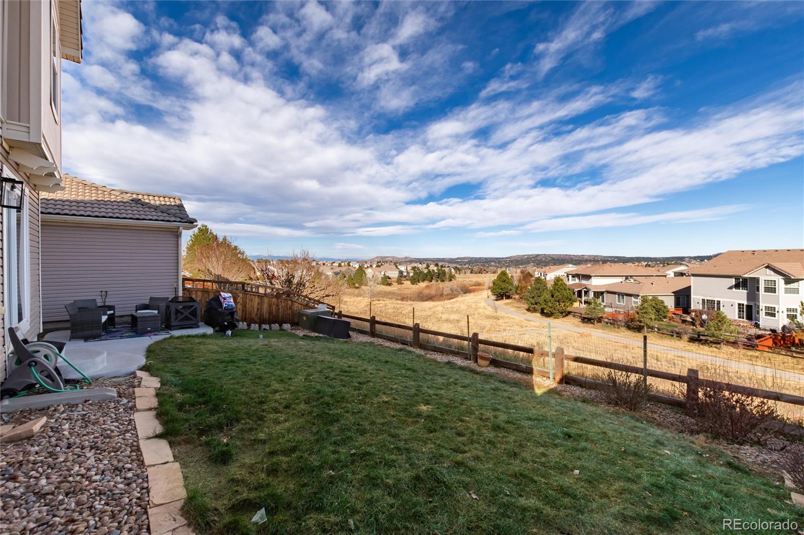This well maintained property is tucked into The Meadows on a greenbelt. With thoughtful updates, functional living spaces, & scenic views of Castle Rock & the Front Range, this home perfectly blends comfort, function, & CO lifestyle. The main floor features a welcoming living room filled with natural light & a dining area accented by a stylish modern light fixture. The open layout flows effortlessly onto the back patio, creating an ideal setup for everyday living or entertaining. The kitchen impresses with stainless steel appliances—including a gas stove—quartz countertops, & a walk-in pantry for extra storage. Just off the kitchen & garage, a combined laundry, mudroom, & secondary pantry keeps daily routines organized, while a convenient powder bath completes the main level. Upstairs, the spacious primary suite offers a relaxing retreat with an attached full bathroom featuring dual sinks & a tub/shower combo. Three additional bedrooms, each with its own walk-in closet, share a full hall bath. The finished basement adds valuable living space with a cozy family room, newer carpet, & a convenient wet bar for game or movie nights. There’s also a half bath & a large storage room for all your extras. Outside, you’ll love the peaceful backyard that backs directly to open space & trails—offering views of Castle Rock & visits from local wildlife. The outdoor upgrades include a newer fence, new concrete patio & side walkway, & a durable cement tile roof. The heated garage is another special touch for comfort during the winter months. Living in The Meadows means you’ll enjoy access to Grange & The Taft House—with a pool, clubhouse, & year-round events. From yoga classes & book clubs to festive gatherings like cookie decorating & pumpkin patches, there’s always something to enjoy. Walking distance to the local elementary school, neighborhood pools, & miles of scenic trails, this home offers the best of small-town charm & modern living.