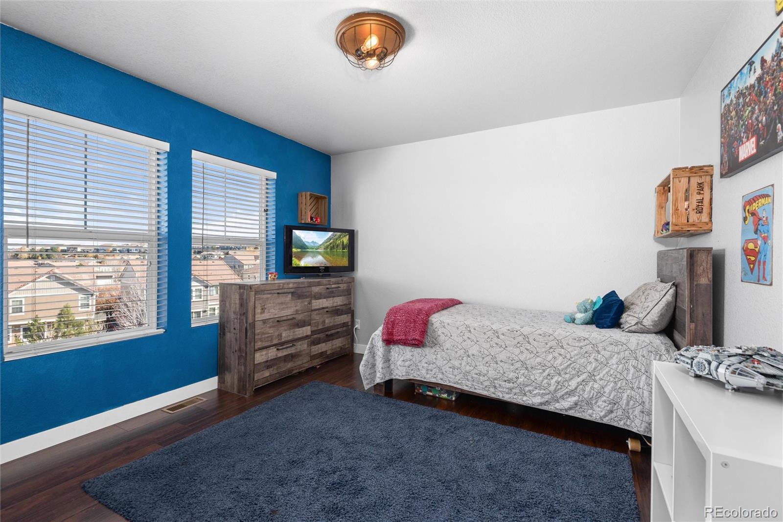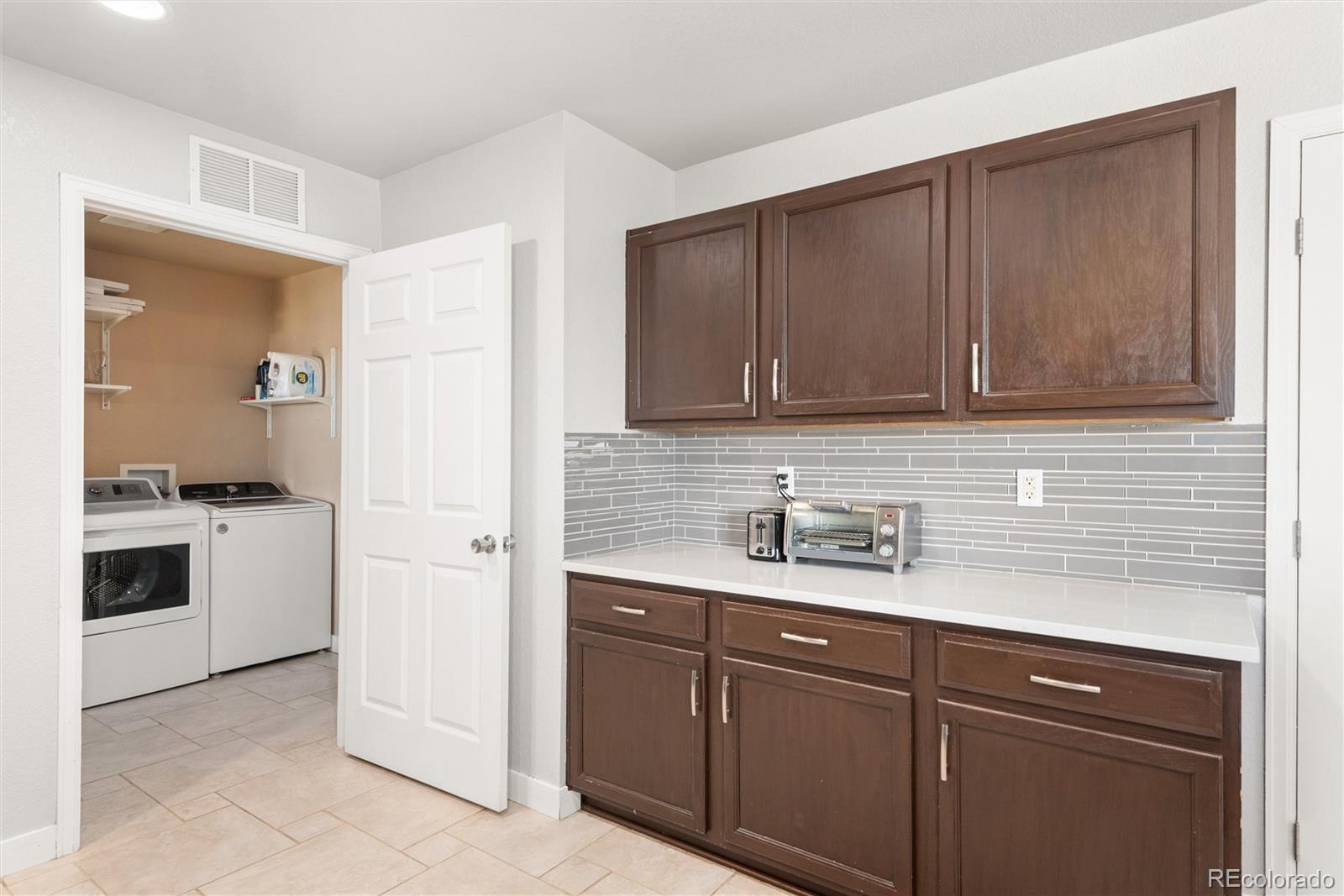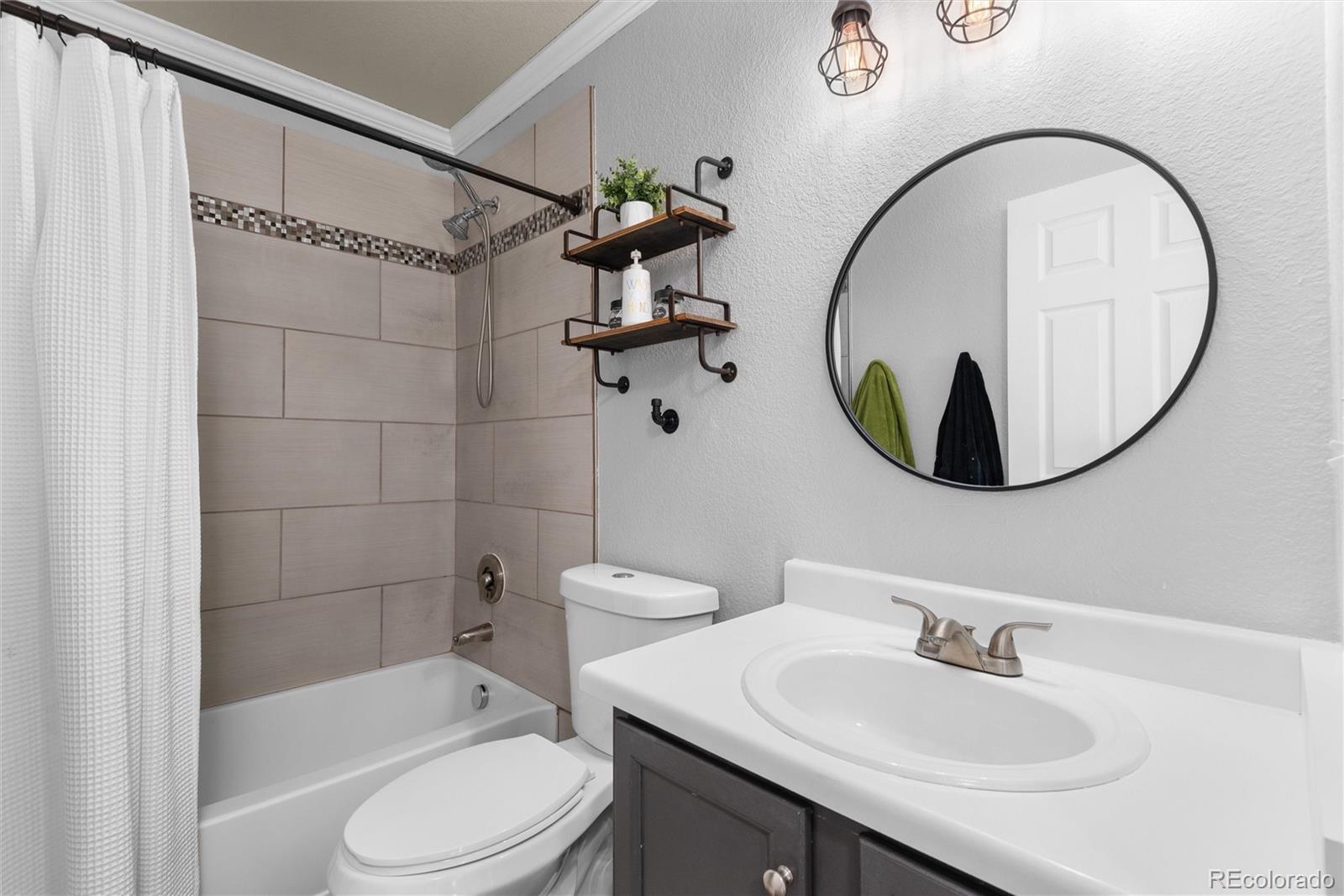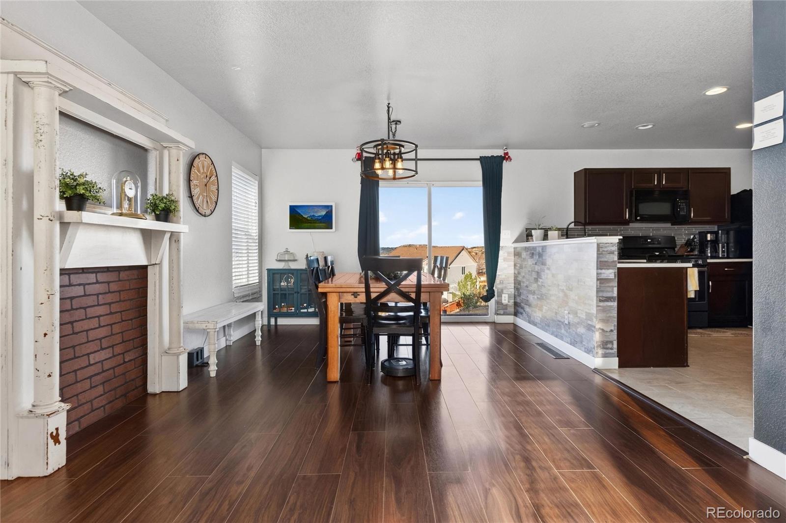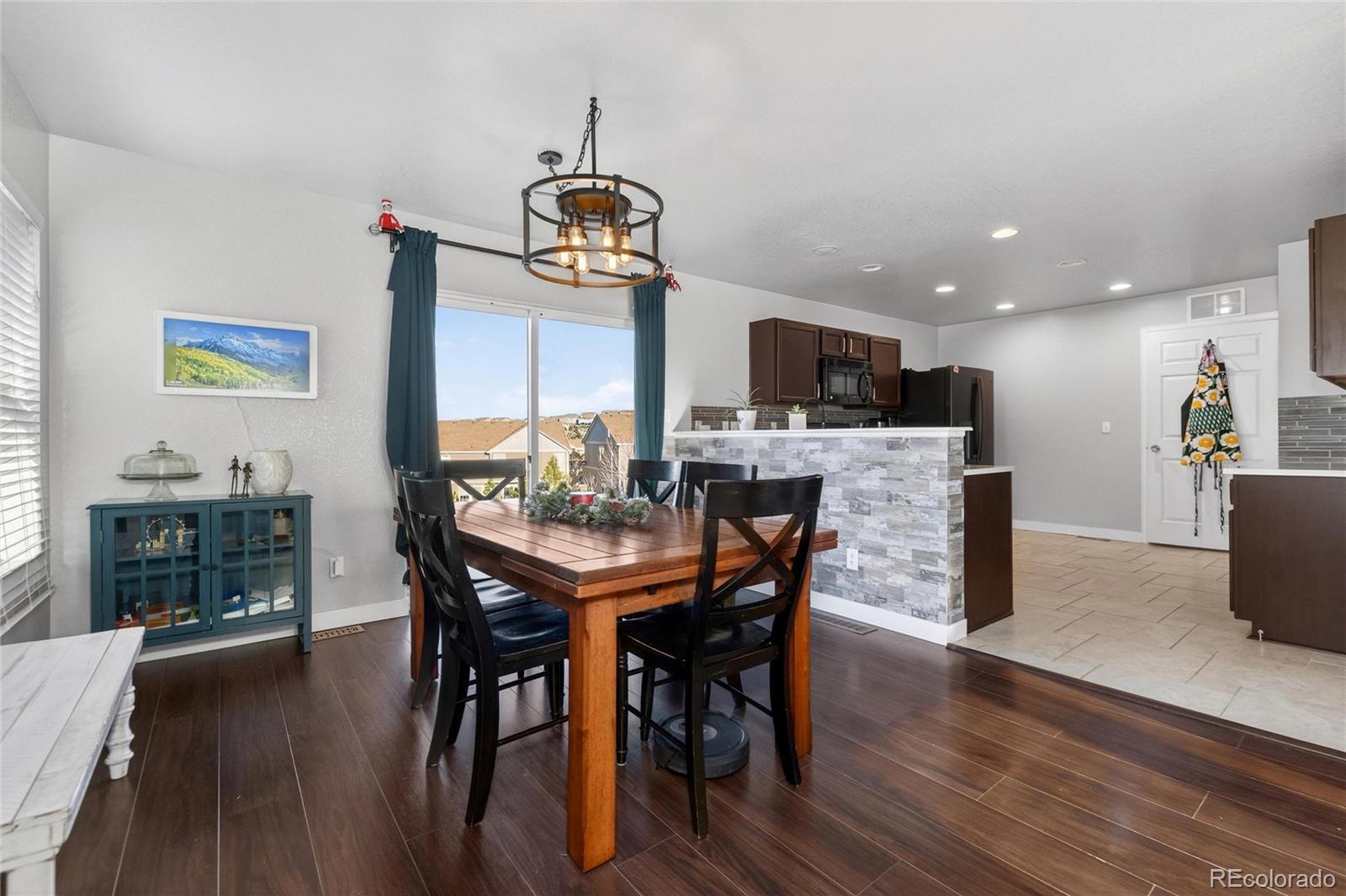 This well maintained property is tucked into The Meadows on a greenbelt. With thoughtful updates, functional living spaces, & scenic views of Castle Rock & the Front Range, this home perfectly blends comfort, function, & CO lifestyle. The main floor features a welcoming living room filled with natural light & a dining area accented by a stylish modern light fixture. The open layout flows effortlessly onto the back patio, creating an ideal setup for everyday living or entertaining. The kitchen impresses with stainless steel appliances—including a gas stove—quartz countertops, & a walk-in pantry for extra storage. Just off the kitchen & garage, a combined laundry, mudroom, & secondary pantry keeps daily routines organized, while a convenient powder bath completes the main level. Upstairs, the spacious primary suite offers a relaxing retreat with an attached full bathroom featuring dual sinks & a tub/shower combo. Three additional bedrooms, each with its own walk-in closet, share a full hall bath. The finished basement adds valuable living space with a cozy family room, newer carpet, & a convenient wet bar for game or movie nights. There’s also a half bath & a large storage room for all your extras. Outside, you’ll love the peaceful backyard that backs directly to open space & trails—offering views of Castle Rock & visits from local wildlife. The outdoor upgrades include a newer fence, new concrete patio & side walkway, & a durable cement tile roof. The heated garage is another special touch for comfort during the winter months. Living in The Meadows means you’ll enjoy access to Grange & The Taft House—with a pool, clubhouse, & year-round events. From yoga classes & book clubs to festive gatherings like cookie decorating & pumpkin patches, there’s always something to enjoy. Walking distance to the local elementary school, neighborhood pools, & miles of scenic trails, this home offers the best of small-town charm & modern living.