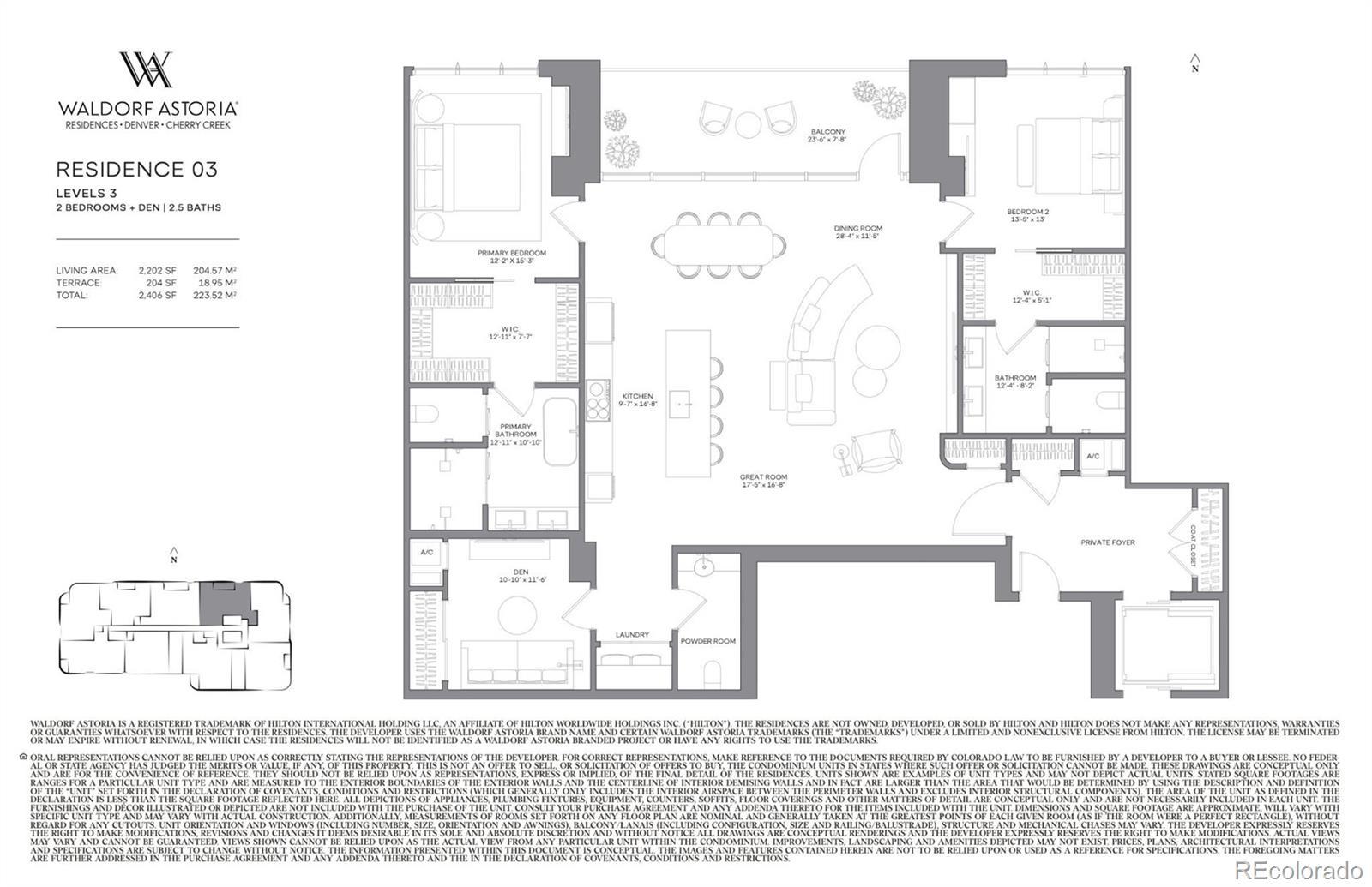 Our Waldorf Astoria Sales Gallery is now open by appointment only, offering a firsthand look at this remarkable new development. Waldorf Astoria Residences Cherry Creek will rise as Colorado’s first Waldorf Astoria-branded property, this boutique property’s 37 luxury residences will deliver a timeless landmark. All residential interiors are designed by award winning interior design firm BAMO, every residence will be fully finished offering private balconies, custom gourmet Boffi kitchens, with fully integrated Sub-Zero and Wolf appliance packages. As an iconic brand synonymous with timeless luxury Waldorf Astoria delivers a personalized living experience like no other to Cherry Creek. With your own personal concierge, 24-hour reception and security, bell services and valet parking promises an effortless lifestyle. The world-renowned true Waldorf Service is curated with a sense of care and authenticity. From the Legendary Waldorf Astoria Peacock Alley inspired lounge, the state-of-the-art wellness center with his/her sauna, steam room & cold plunge, fitness studio, resort-style rooftop pool deck with bar and lounge areas, curated lobby, and signature restaurant with inspired menu offering 24/7 room service, each space is designed for exceptional experiences. Setting a standard for world-class luxury in one of the most sought-after neighborhoods in Denver.