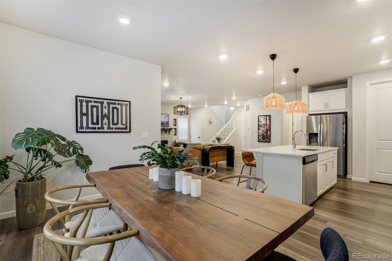 Step into this impeccably upgraded 4-bedroom, 4-bathroom home in The Canyons—better than new and truly move-in ready. With over $40,000 in enhancements, including full landscaping, custom outdoor living features, and window coverings throughout, this home offers more than what you'd expect. Landscaped and meticulously maintained, this home has a 2-car garage and an ideal location within walking distance to the neighborhood coffee shop, park, and pool. Inside, you'll find an open-concept layout with 9-foot ceilings and luxury vinyl plank flooring throughout the main level. The spacious living room is filled with natural light and features a sleek electric fireplace (no maintenance required), a modern light fixture, and access to an extended covered patio and generous backyard—already complete with lush grass, raised garden beds, and a concrete patio ready for summer gatherings. The kitchen is a chef’s dream with quartz countertops, a large center island with breakfast bar, a pantry, and stainless steel appliances including a gas range. A bright dining area sits just off the kitchen—perfect for everyday meals or hosting. A hallway off the main living space leads to a convenient half bath and access to the finished garage. Upstairs, a spacious loft provides flexible space for a playroom, office, or media area. The primary suite includes an ensuite bathroom with dual vanity, walk-in shower, and a huge walk-in closet. Two additional bedrooms and a full bathroom with dual vanity complete the upper level. The finished basement adds even more versatility with a large family room, a fourth bedroom, full bathroom, and extra storage space. Why wait and spend thousands more on landscaping and interior finishes when you can have it all, right now? This thoughtfully designed home combines space, style, and convenience in one of the area's most sought-after communities. Don’t miss your chance to own a truly turnkey home that outshines the competition—schedule your showing today!